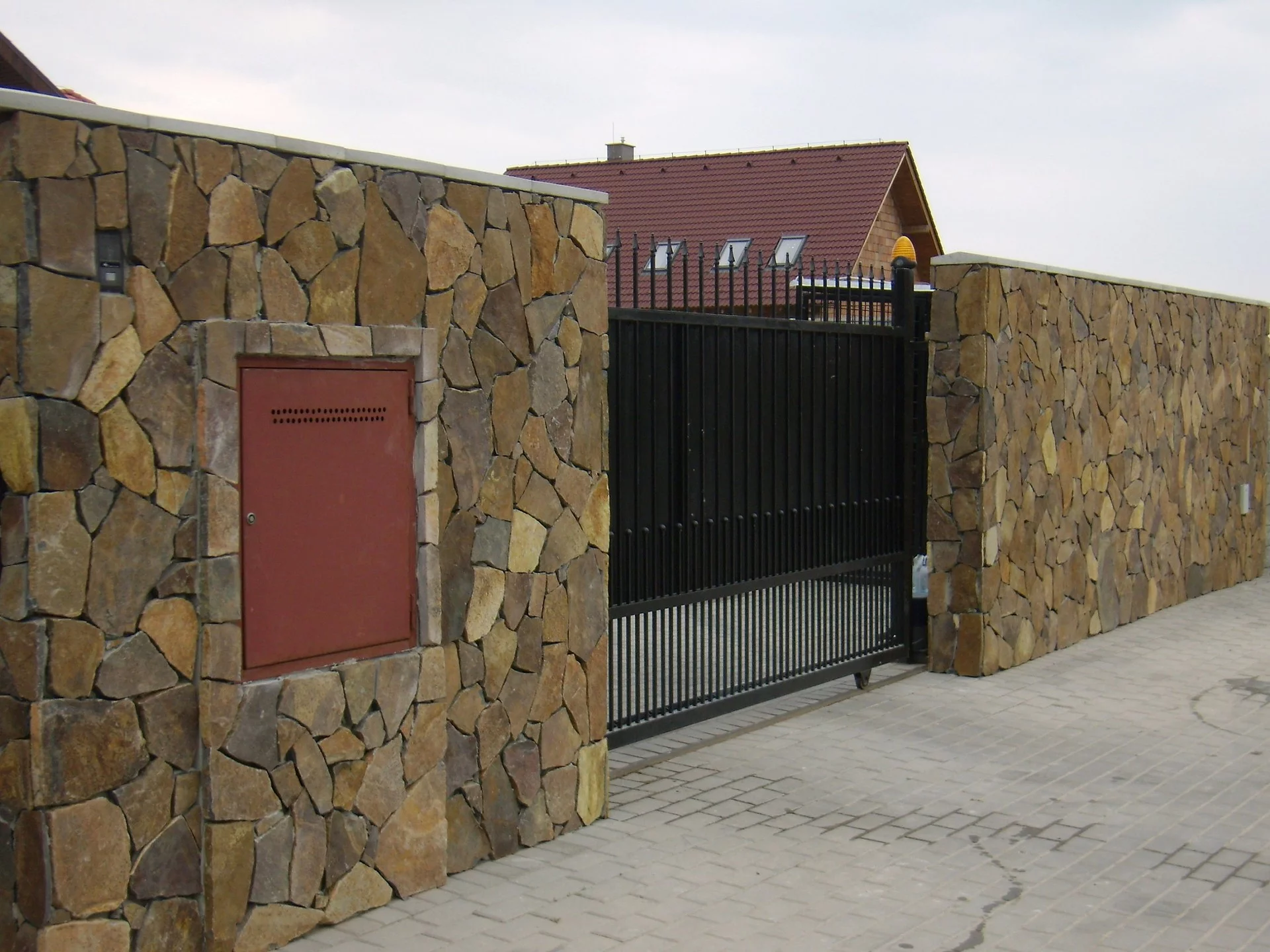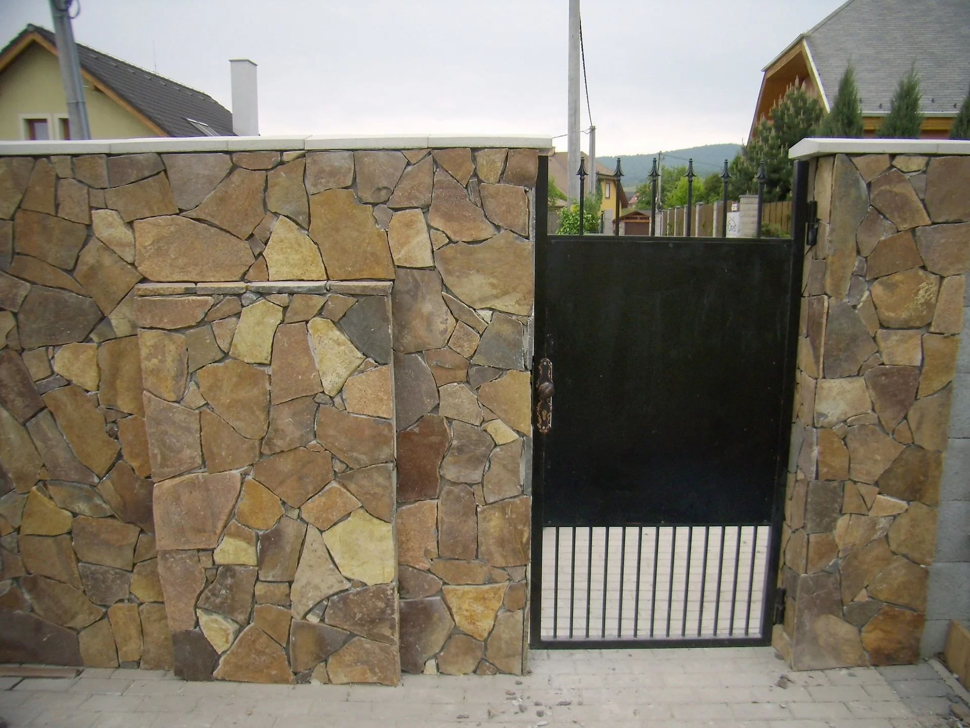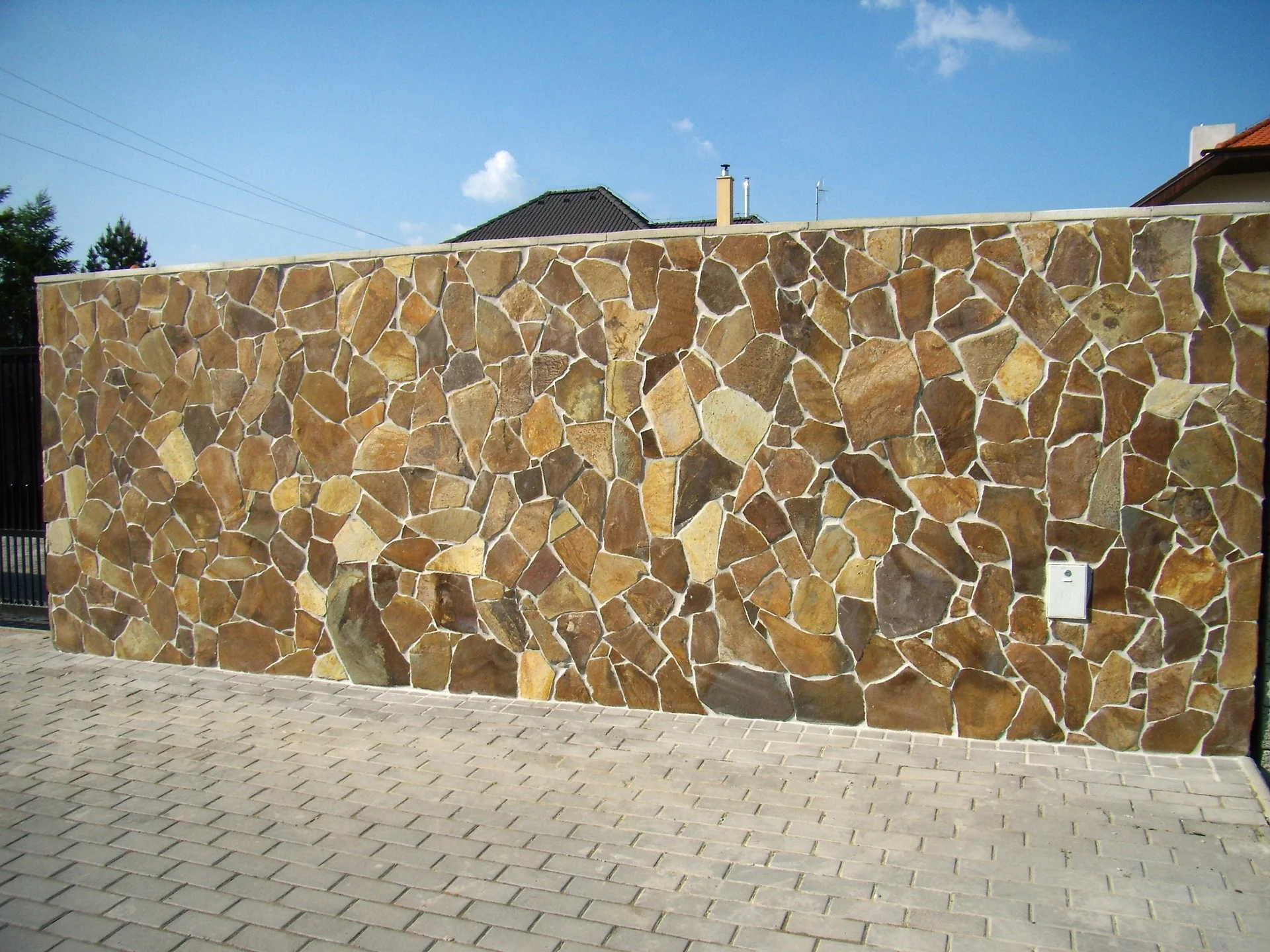 Nepravidelně štípaný přírodní kámen andezit rezavě hnědé barvy působí efektně a jednoduše zároveň. Náramně vyniká v harmonizujícím souzvuku živé zeleně. Je vhodný jak interiérový tak exteriérový obklad a také jako dlažba. Atmosféru přírody a historie vykouzlí i při obložení krbu, fasády či schodů.