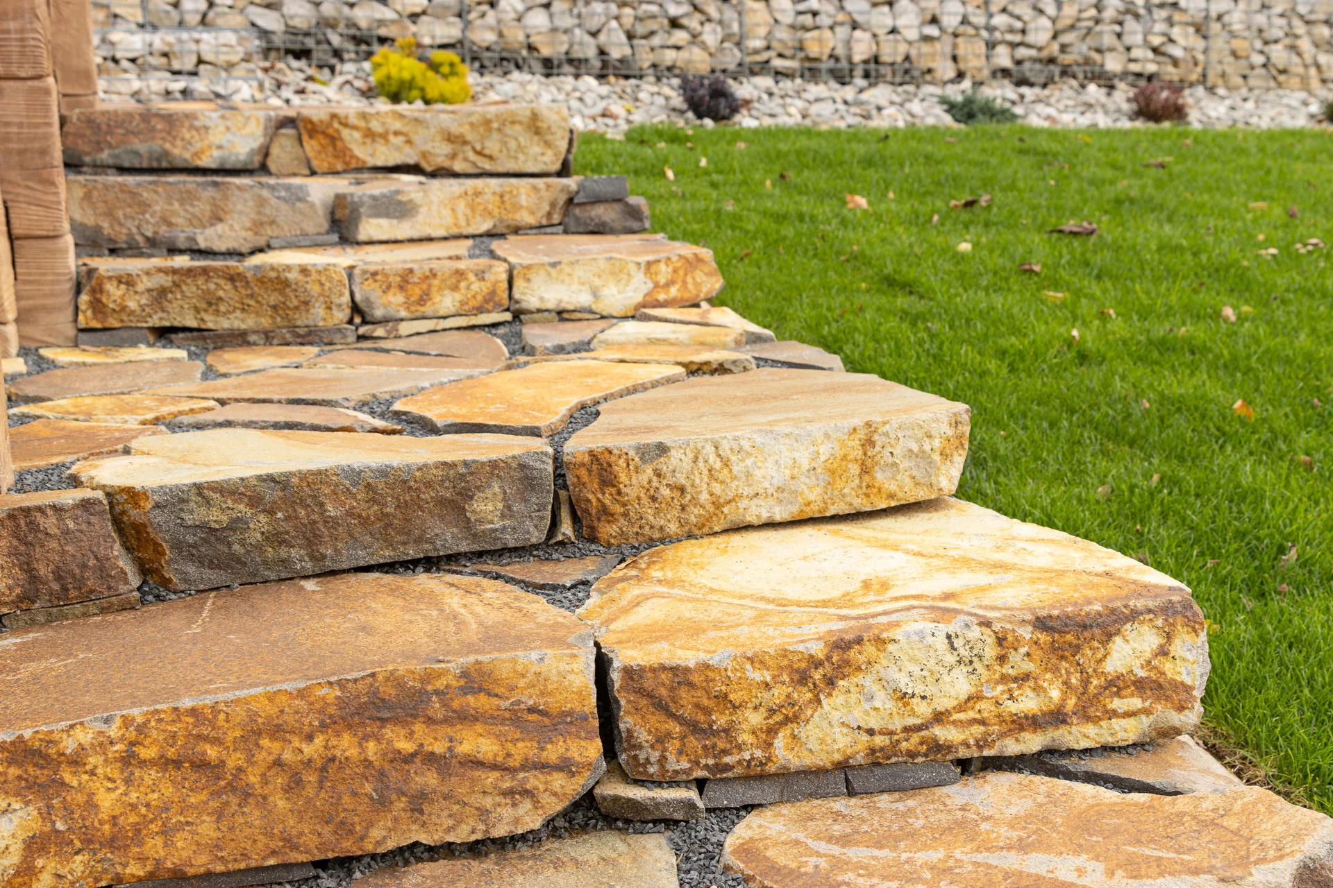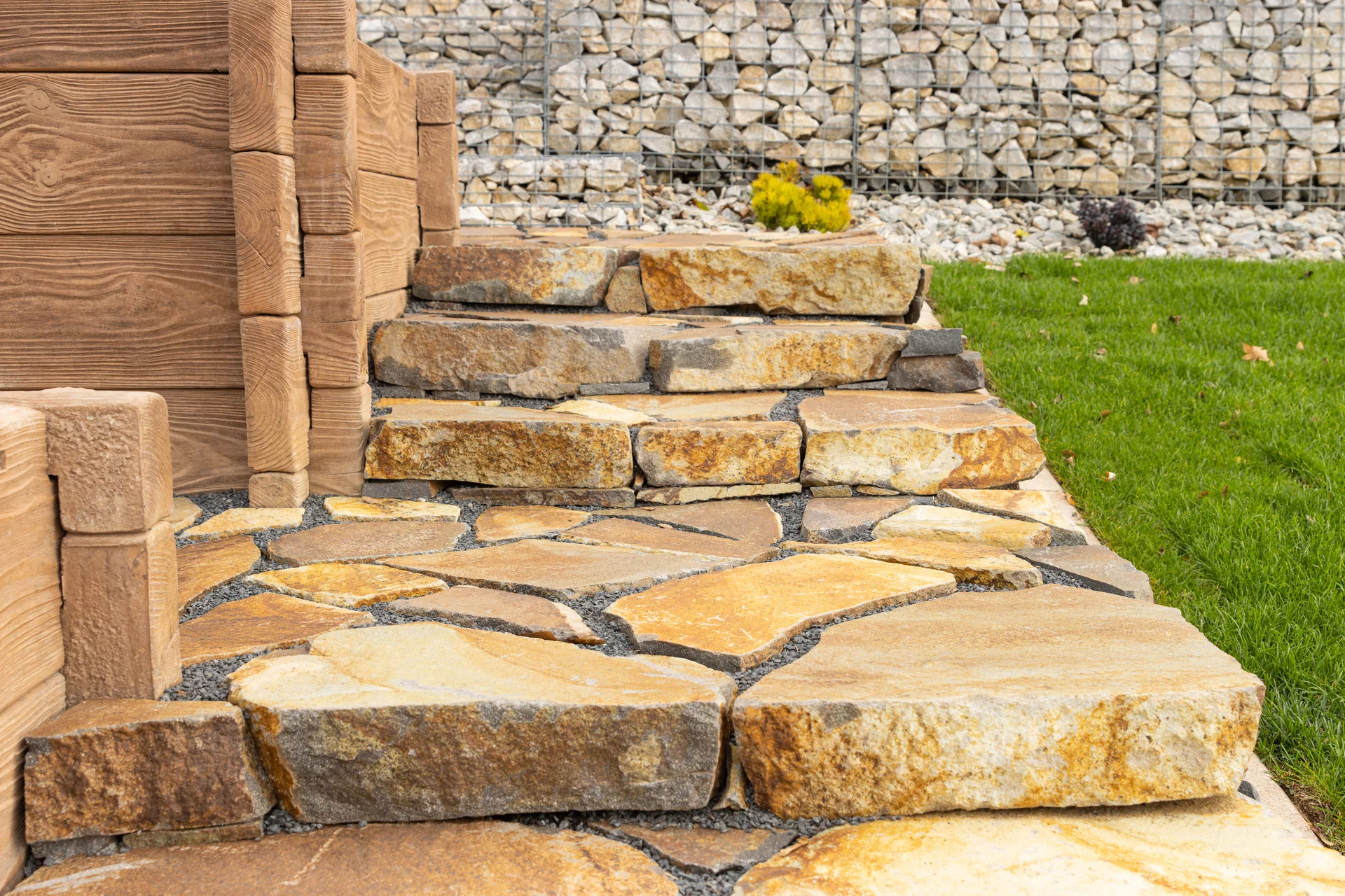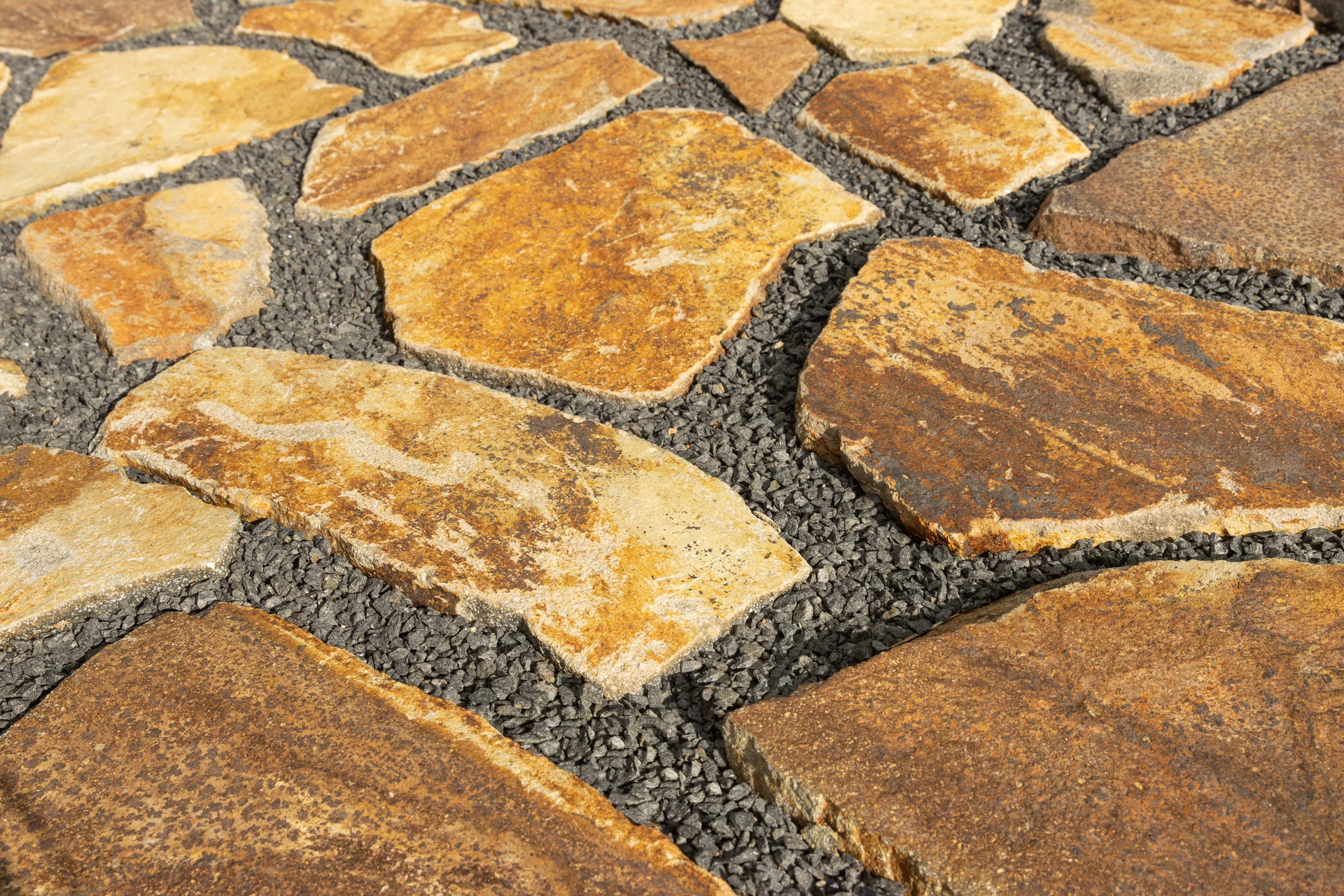 Nášlapné kameny andezit svojí drsnou strukturou vnášejí kus nespoutaných hor do každé zahrádky. Nepravidelný přírodní kámen rezavě hnědé barvy nejlépe vynikne v dokonalém souzvuku živé zeleně. Tento přírodní kámen se využívá k vyskládání okrasných, zahradních chodníčků, obrostlých zeleným trávníkem. No lze jednoduše položit kameny na vysypanou štěrkovou plochu a vytvořit tak funkční chodník kolem domu.