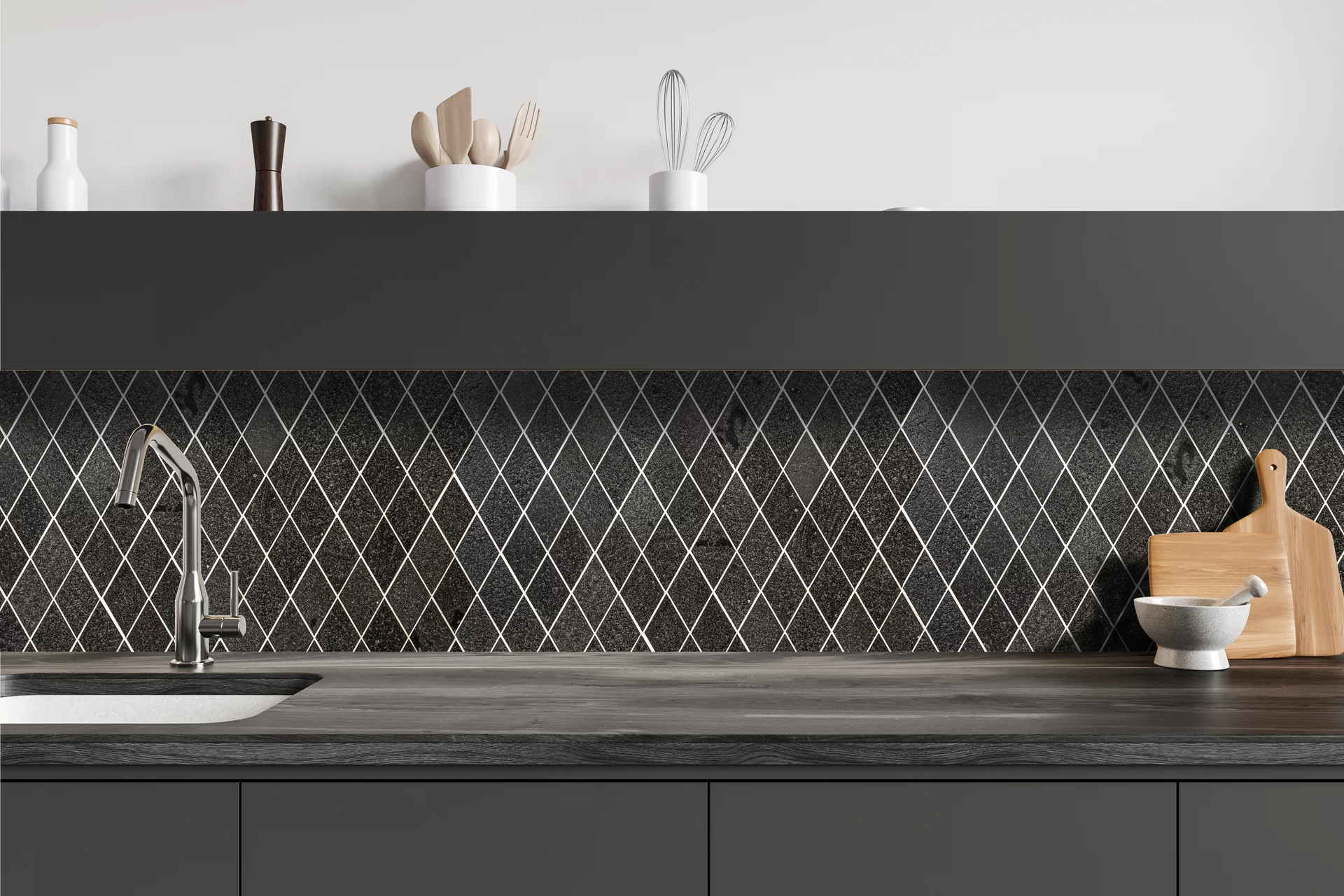 Dodejte svému prostoru stylový geometrický vzor s mozaikovým obkladem ve tvaru kosočtverce. Tento unikátní obklad je tvořen malými kosočtverci nalepenými na síťce, což umožňuje rychlou a přesnou instalaci. Díky síťce se mozaika snadno řeže, tvaruje a přizpůsobuje různým povrchům, čímž šetří čas při pokládce a zajišťuje dokonalé zarovnání vzoru s minimálními spárami. Tento moderní mozaikový obklad je skvělou volbou pro kuchyně, koupelny, fasády, designové stěny i komerční prostory. Vytvořte si luxusní a nadčasový interiér s minimální námahou!