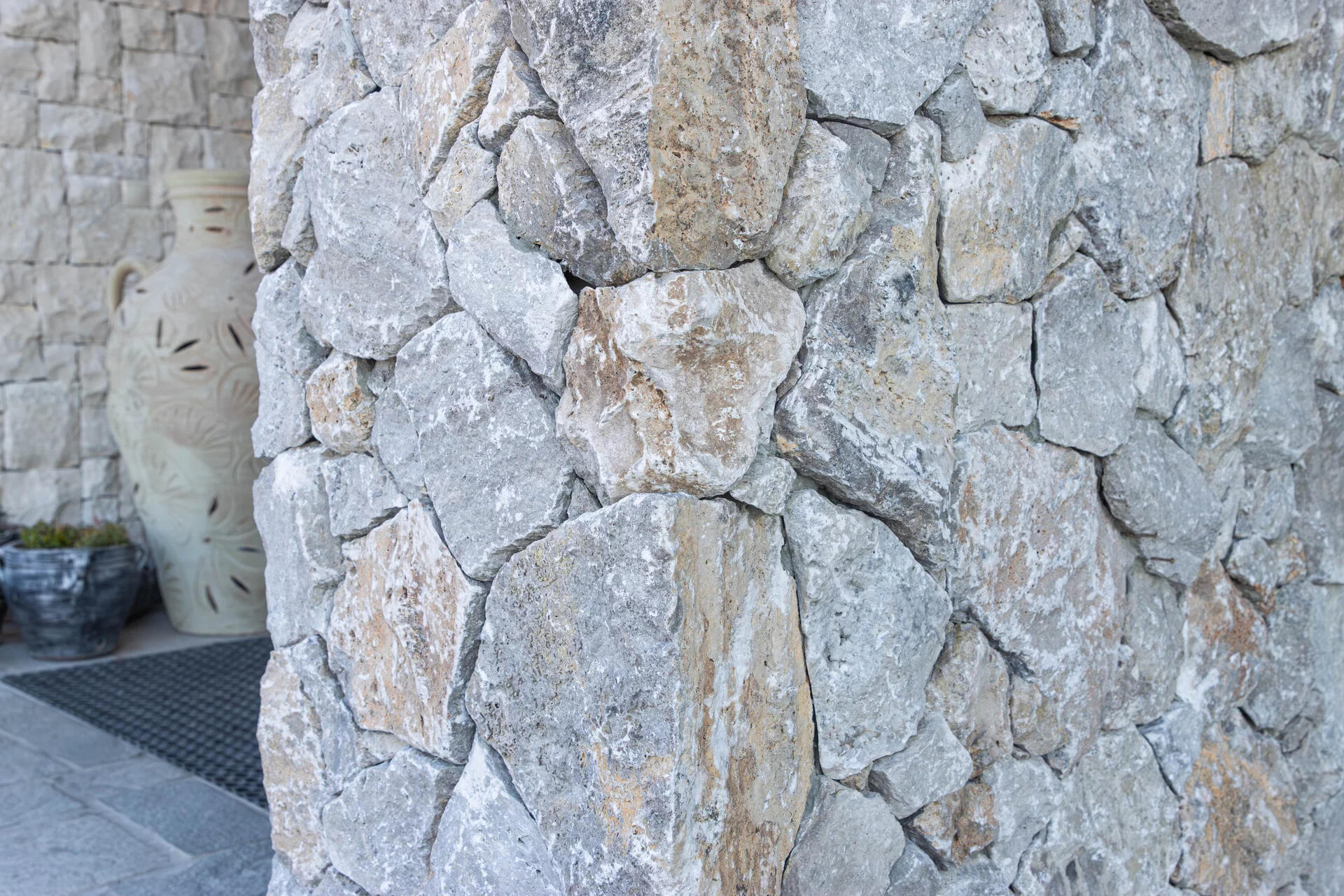 Rohový kus z přírodního kamene nepravidelných tvarů, který slouží na obklady rohů zdí. Rohový kus je vyroben z jednoho velkého kusu kamene.