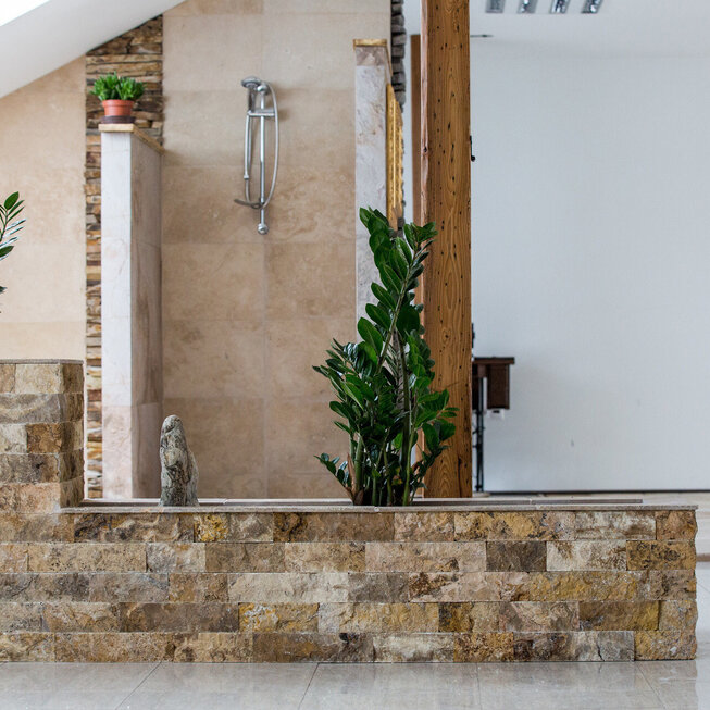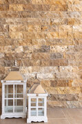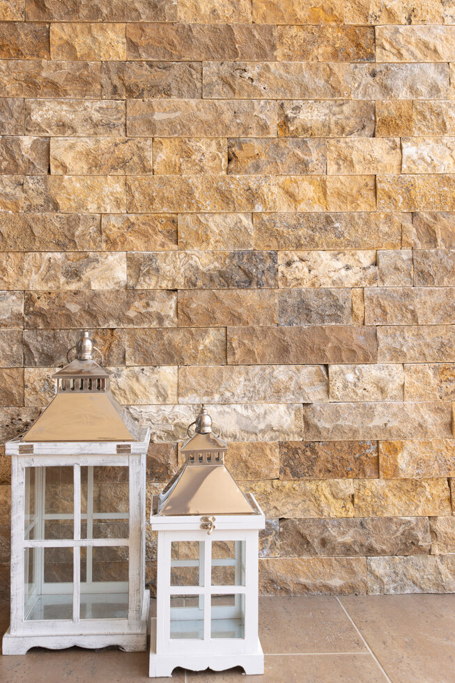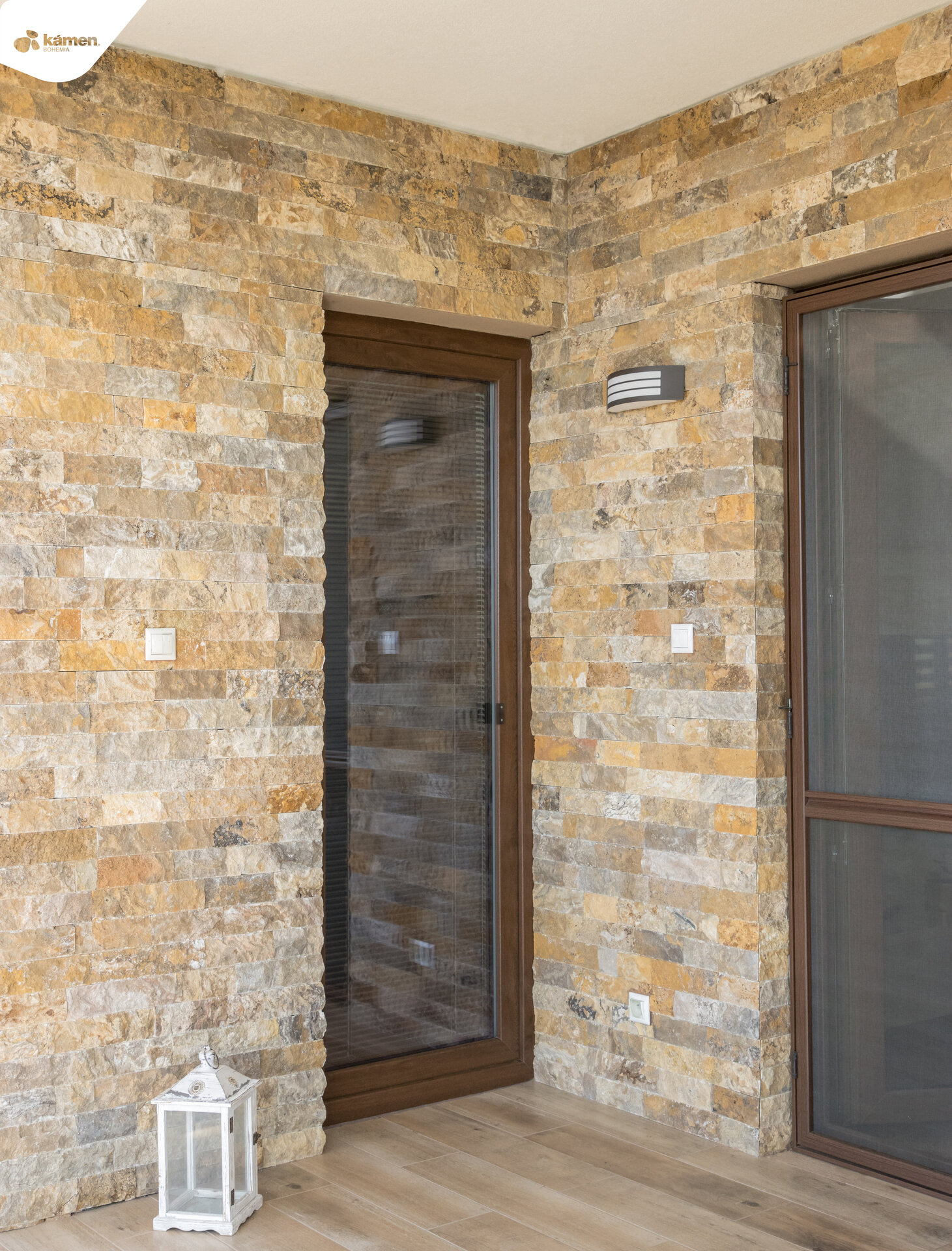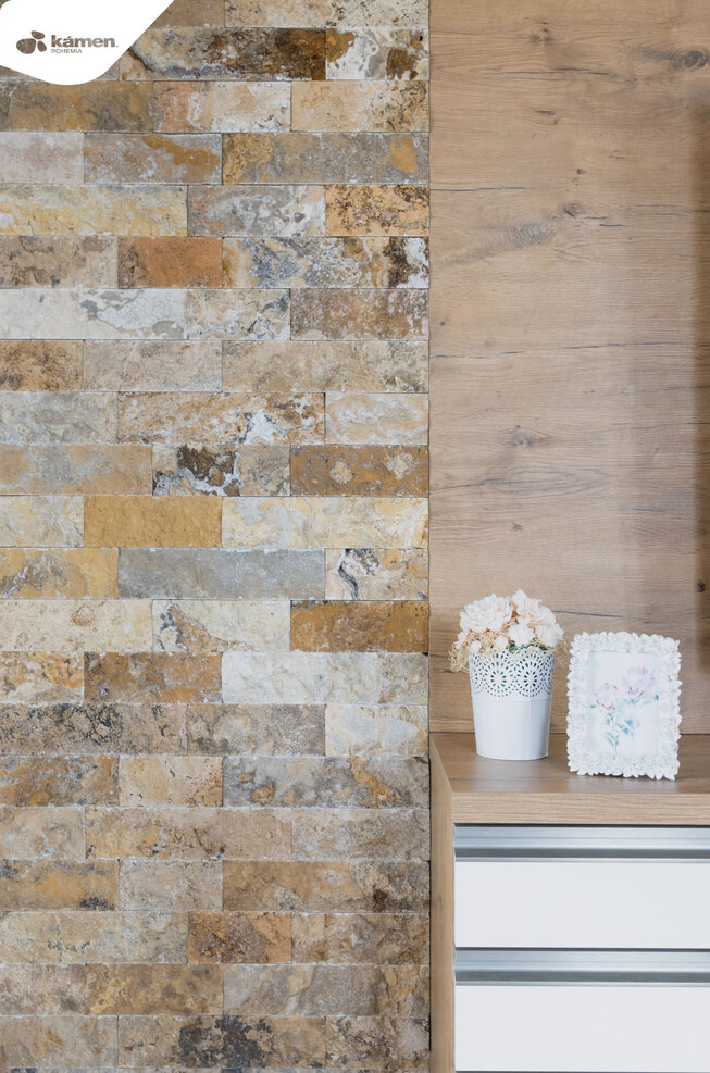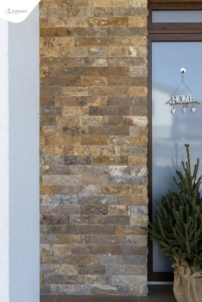 Kamenný cihličkový obklad v zajímavé barevné kombinaci colormix je vhodný do interiéru pro obklad stěn či krbů, ale i do exteriéru jako obklad fasády, soklu či zdí. Jeho hranatá struktura se podobá stěnám dávných hradů či zámků a ve spojení se zelenými trvalkami či stromky připomíná časy zapomenuté historie.