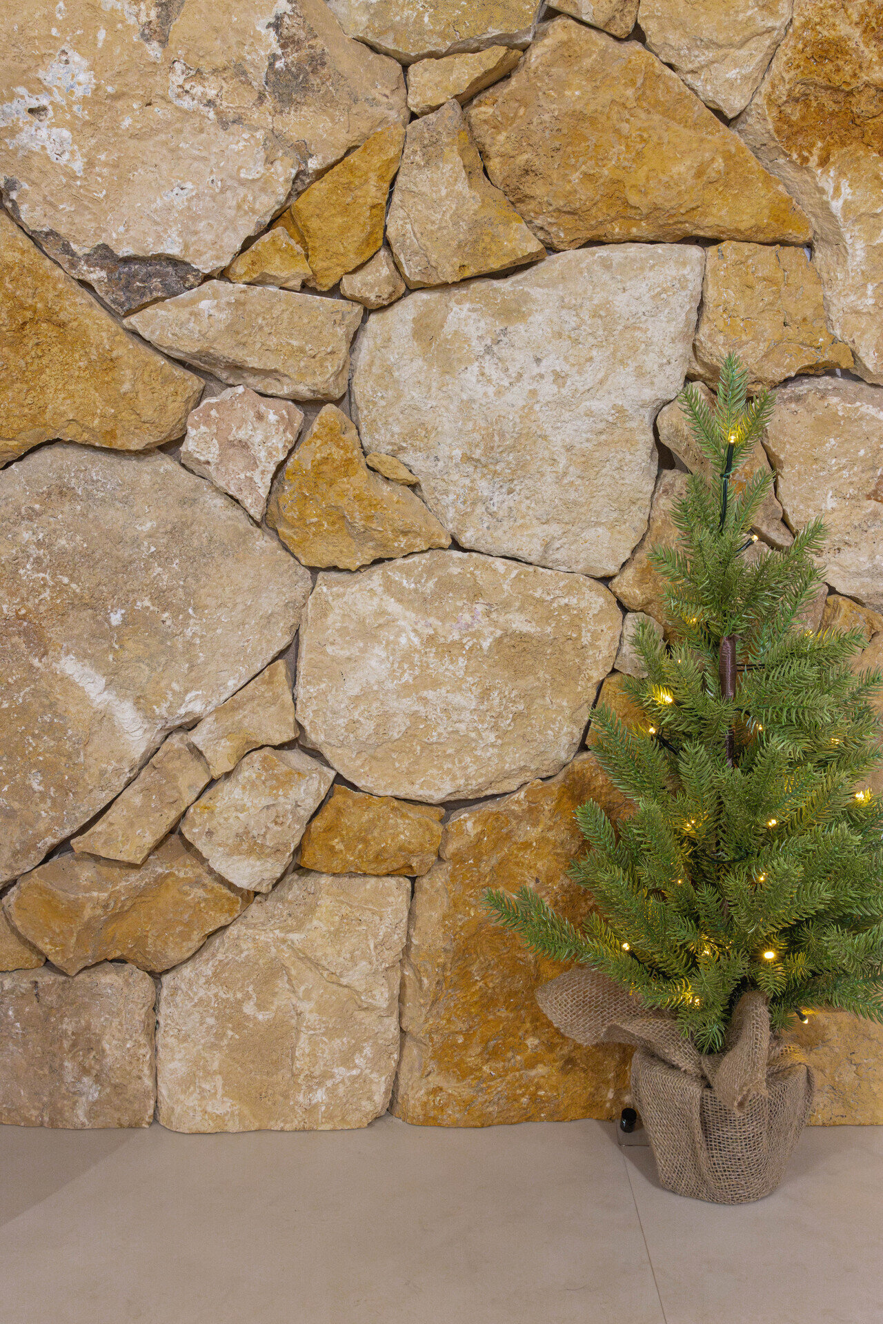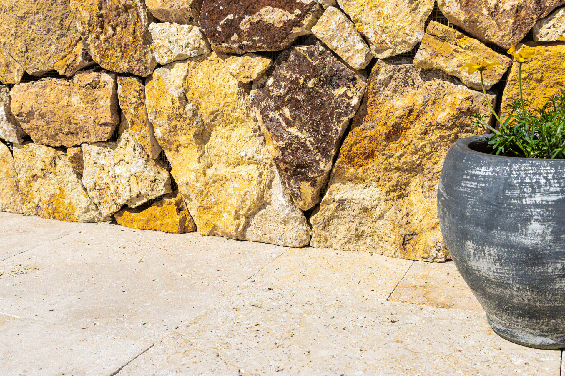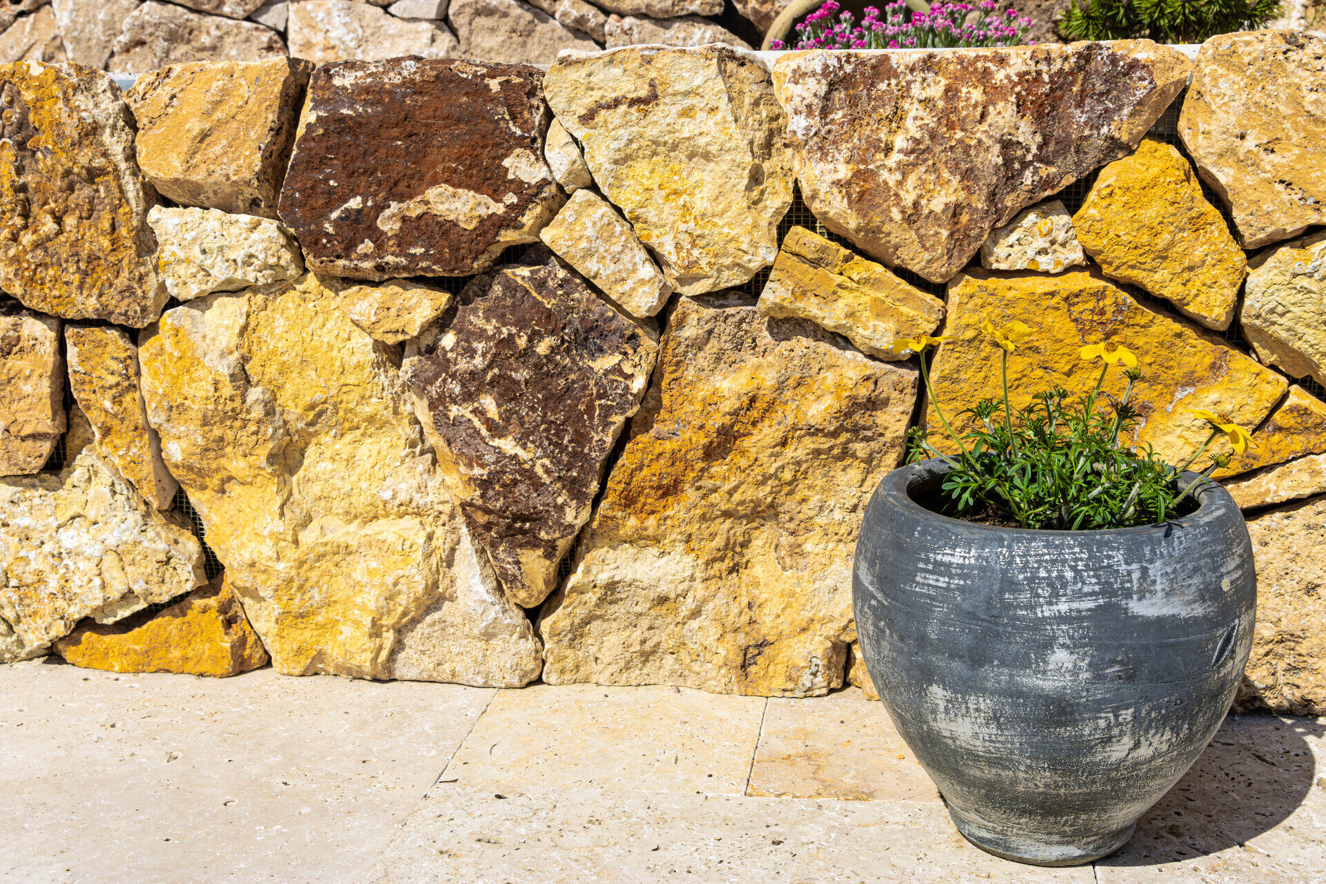 Obklad a rohové kusy nepravidelného kamene v odstínech žlutohnědé působí příjemným, jemně drsným dojmem. Je často používán na obklad fasád, soklů nebo zahradních zídek, lze jej použít i na obklad krbů či vnitřních stěn. Jeho nahrubo opracovaný povrch vyvolává dojem stěn a zdí starověkých hradů či zámků. Ve spojení se zelenými sukulenty nebo mohutnějšími zahradními stromky vytvoří příjemné a klidné místo.