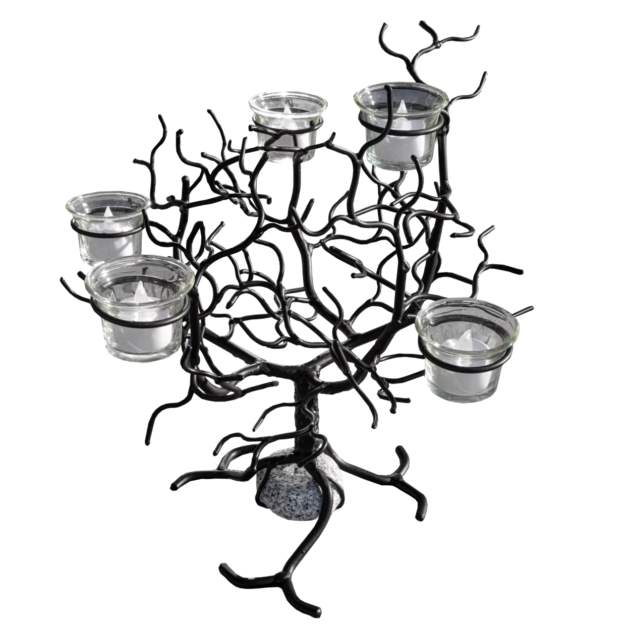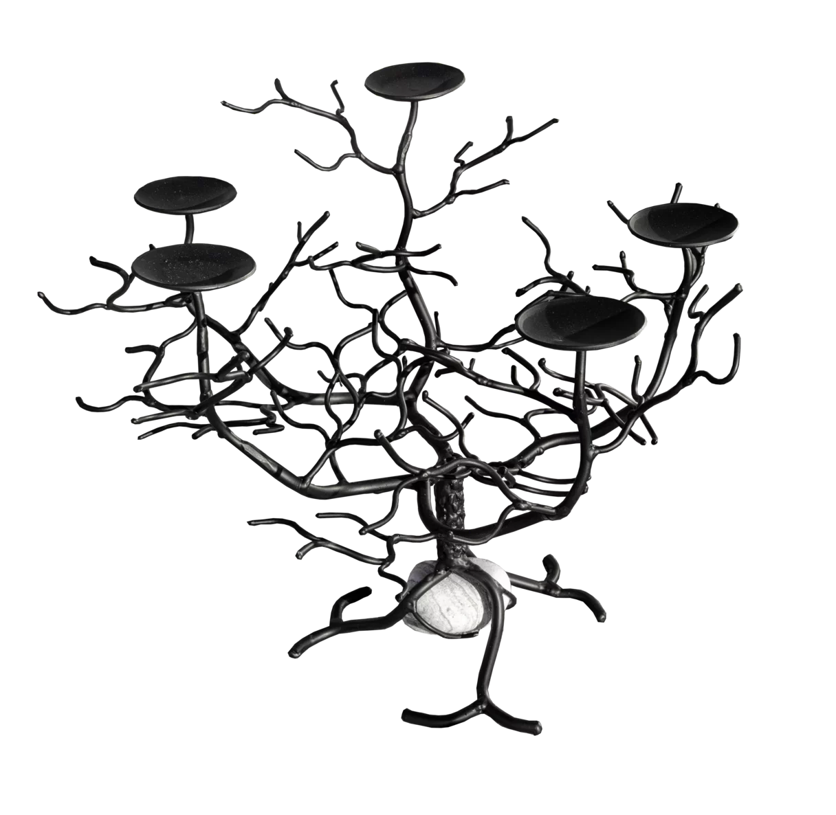 Moderní svícen ve tvaru stromu s elegantními kamennými prvky vytváří působivou dekoraci pro každý interiér. Jedinečná kombinace kovu a přírodního kamene dodá prostoru styl a harmonii.
