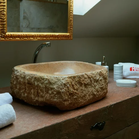 Výrazným a zároveň velmi zajímavým prvkem v koupelně je leštěné umyvadlo ze zkamenělého dřeva. Světle-hnědá barva tohoto umyvadla ho předurčuje na centrální prvek rustikální koupelny. Takové kamenné umyvadlo v sobě spojuje hlavní prvky rustikálního nebo venkovského stylu bydlení - dřevo, přírodu a příjemný pocit tepla a domova.