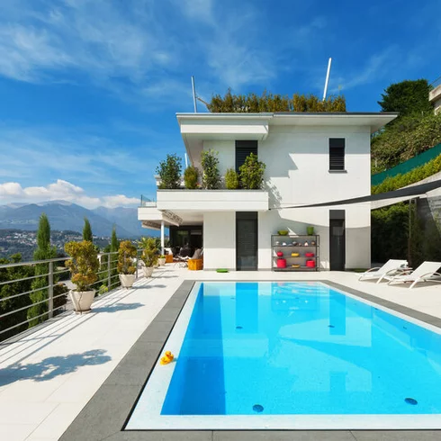 Venkovní dlažba z kamene je ideálním materiálem kolem bazénu. Její povrch je přirozeně protiskluzový a máte na výběr několik tvarů a druhů kamene. Prostor kolem bazénu můžete sjednotit s dalšími zpevněnými plochami - terasou, stezkami nebo příjezdovou cestou.