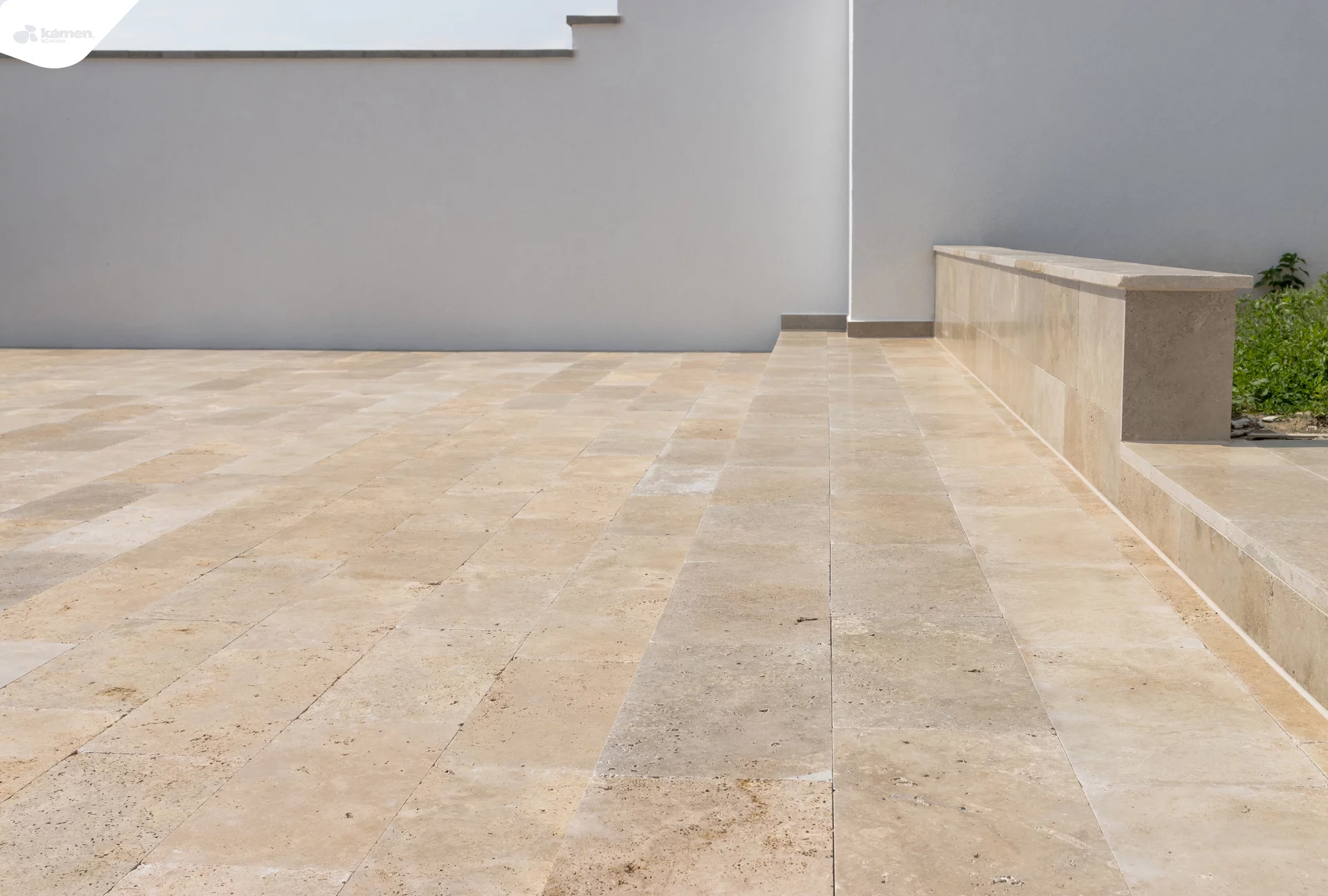 Travertin je kamenná dlažba, která je známá pro svůj jedinečný vzhled. Má texturu s malými dírami a může být použita jako vnitřní i vnější dlažba. Travertinová dlažba je také protiskluzová a mrazuvzdorná, což ji činí vhodnou dlažbou pro použití na vnějších schodech.