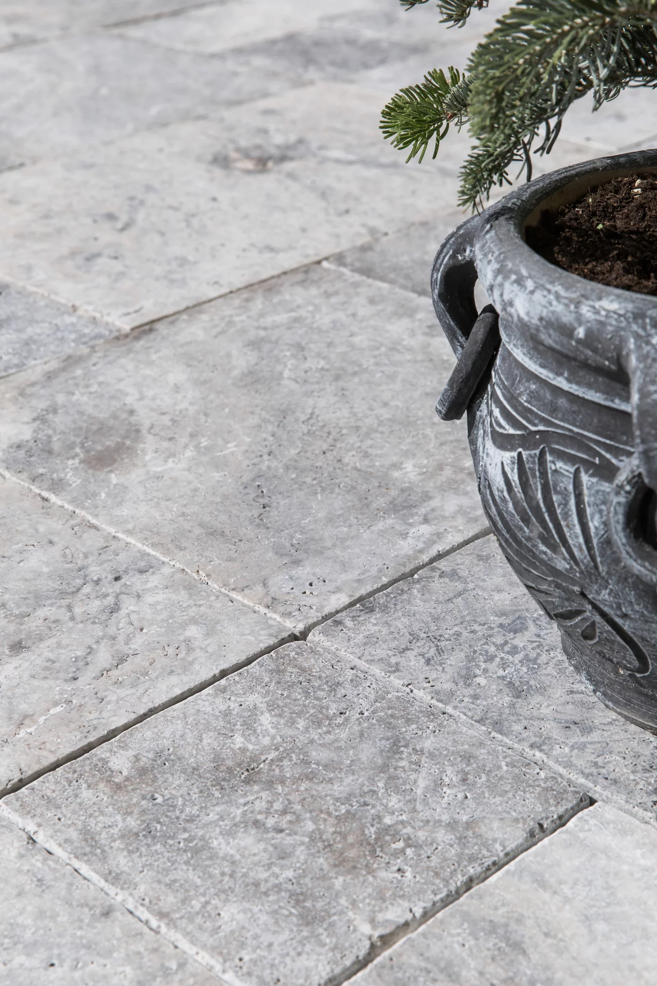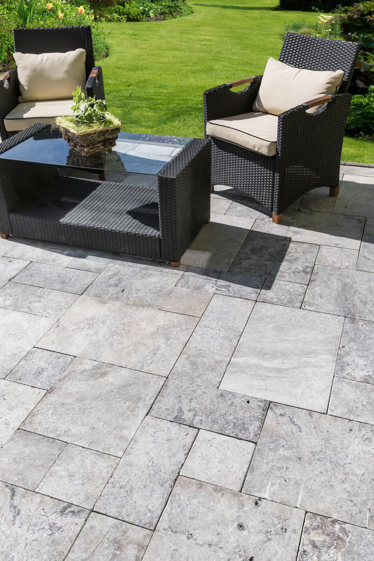 Stále častěji je travertin zakomponován do zahrad, kolem bazénů, teras a chodníků. Travertin tak vytvoří luxusní povrch, který se velmi dobře spojuje s každým druhem materiálu díky své neutralitě, minimalismu a nadčasovosti. Dovolí tak vyniknout blízkému materiálu, při kterém se nachází a zároveň podtrhne svou krásu a jednoduchost. Travertin působí teplo a jeho čisté kontury dodávají pocit antického luxusu. Jedinečná kresba travertinu a příjemná barva vnášejí do prostoru dávku přímořské exotiky a letních paprsků.