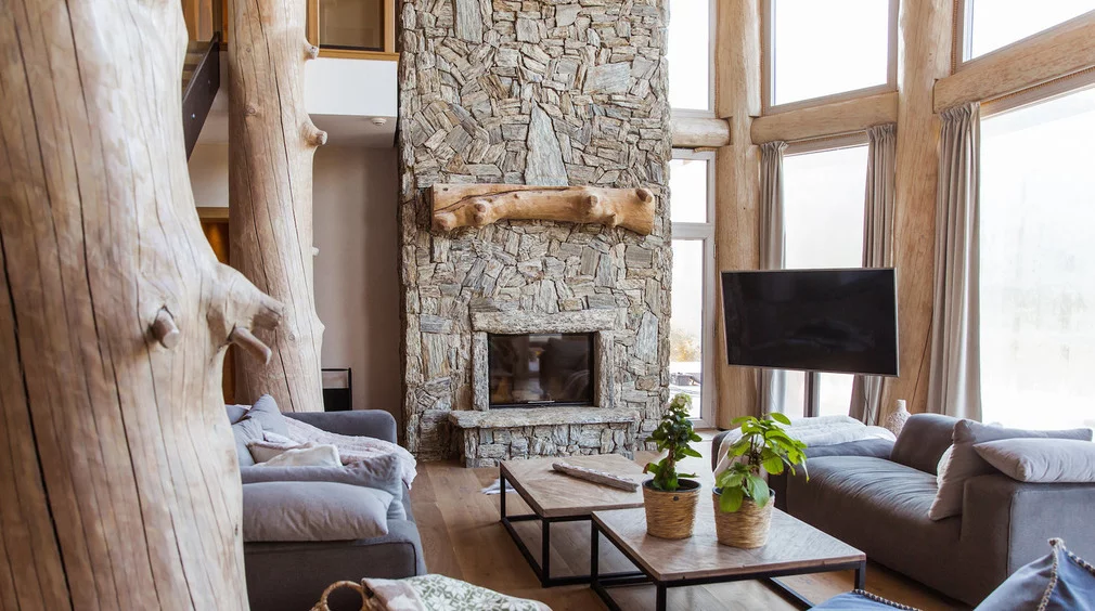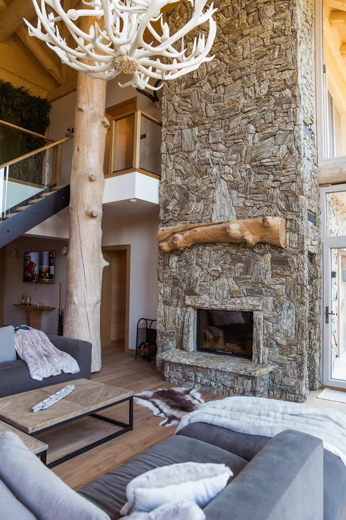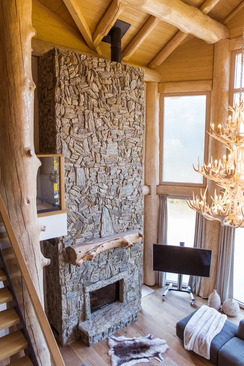 Obložení krbu v interiéru moderní chaty - realizace naší společností