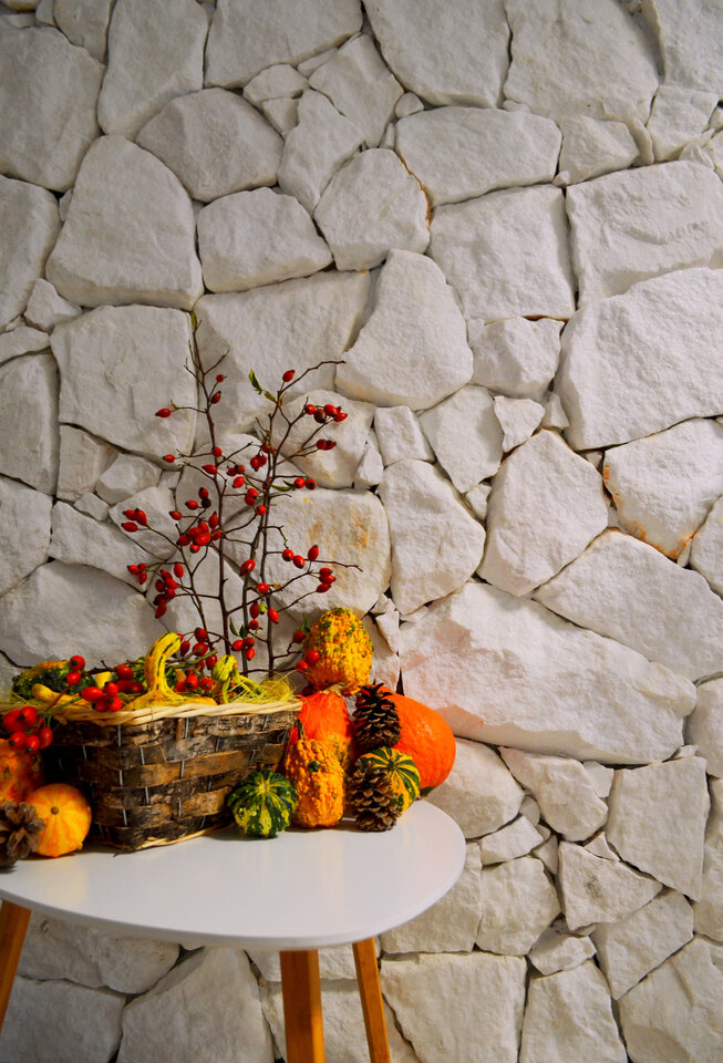 Rohové kusy nepravidelného kamene v jasné bílé barvě působí čistým a moderním dojmem. Jejich jemná struktura krásně vynikne v koupelně či obýváku, často se však používají k obkladu stěn v zahradních altánech či letních kuchyňkách. Ve spojení s barevnými trvalkami okouzlí obklad s rohovými kusy každého návštěvníka.