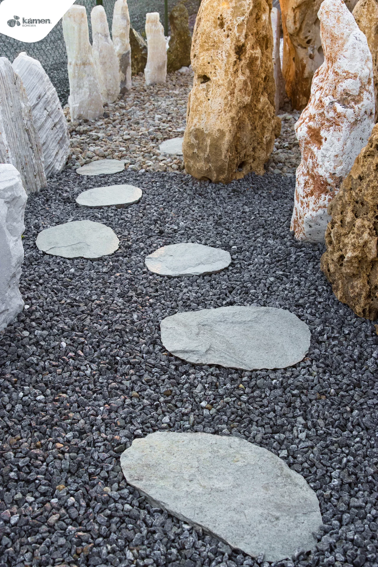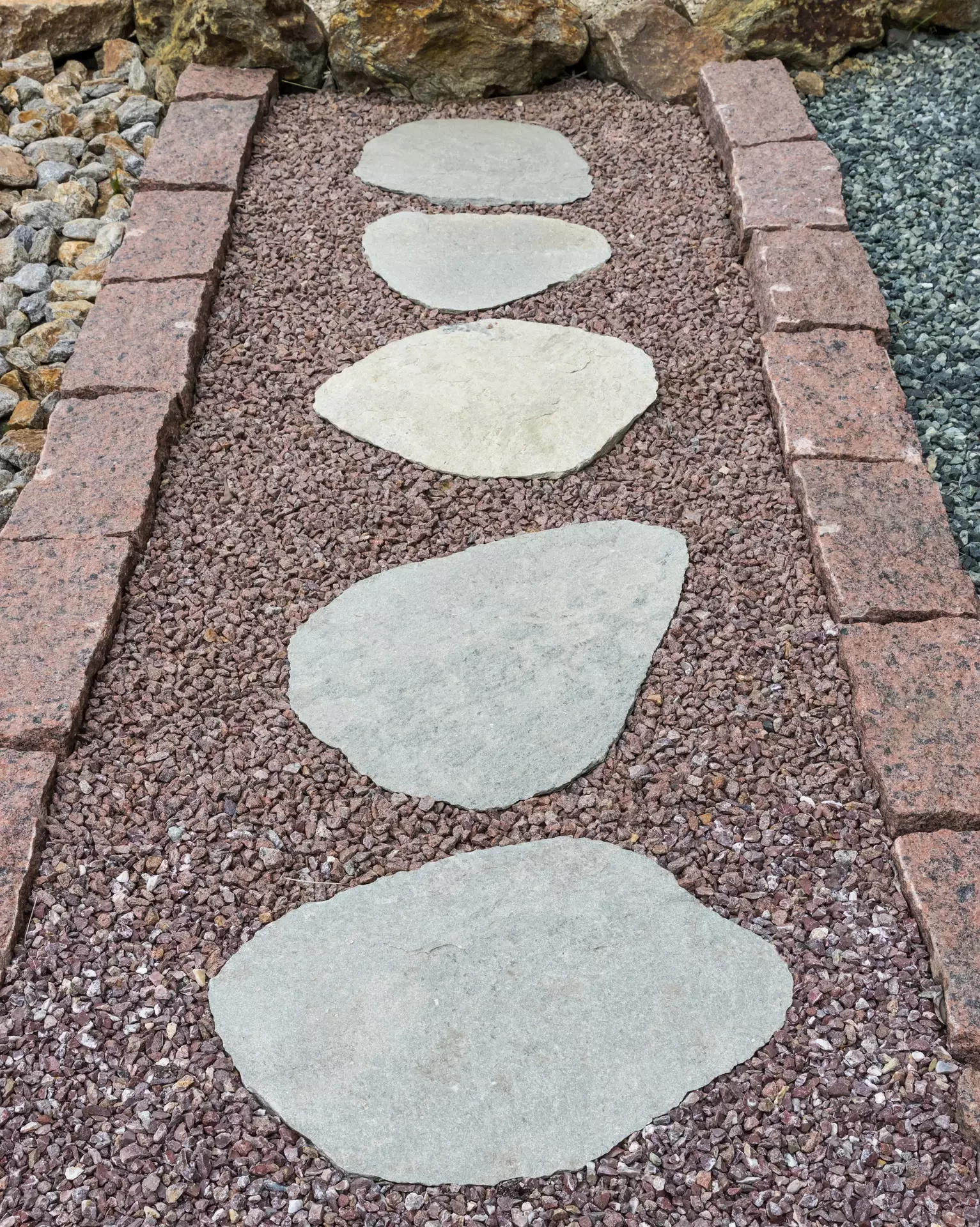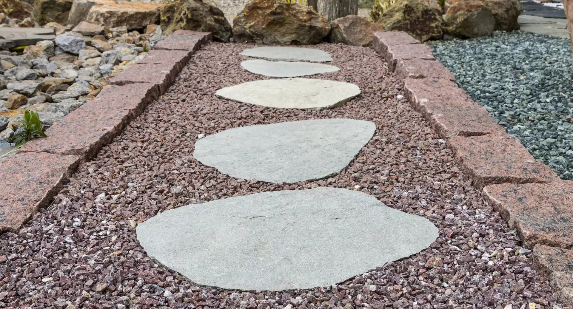 Nášlapné kameny z gneisu se náramně vyjímají v kontrastní zeleni trávníku. Zahradní chodníčky a přírodní cestičky na zahrádce v šedých odstínech propůjčí každému exteriéru jedinečnost a svéráznou originálnost. Barevným kontrastem šedého kamene a zářivého zeleného trávníku rozbijí větší, neforemné plochy na útulná zákoutí. Vyniknou v okrasných zahradách, ale "šmrnc" dodají i uhlazeným japonským zahradám. Manipulace a realizace chodníků v zahradě s gneisem je nesmírně jednoduchá. Stačí položit nášlapné kameny z gneisu na předem vybrané místo a je to. Kámen je také možné položit na předem vysypaný štěrk.