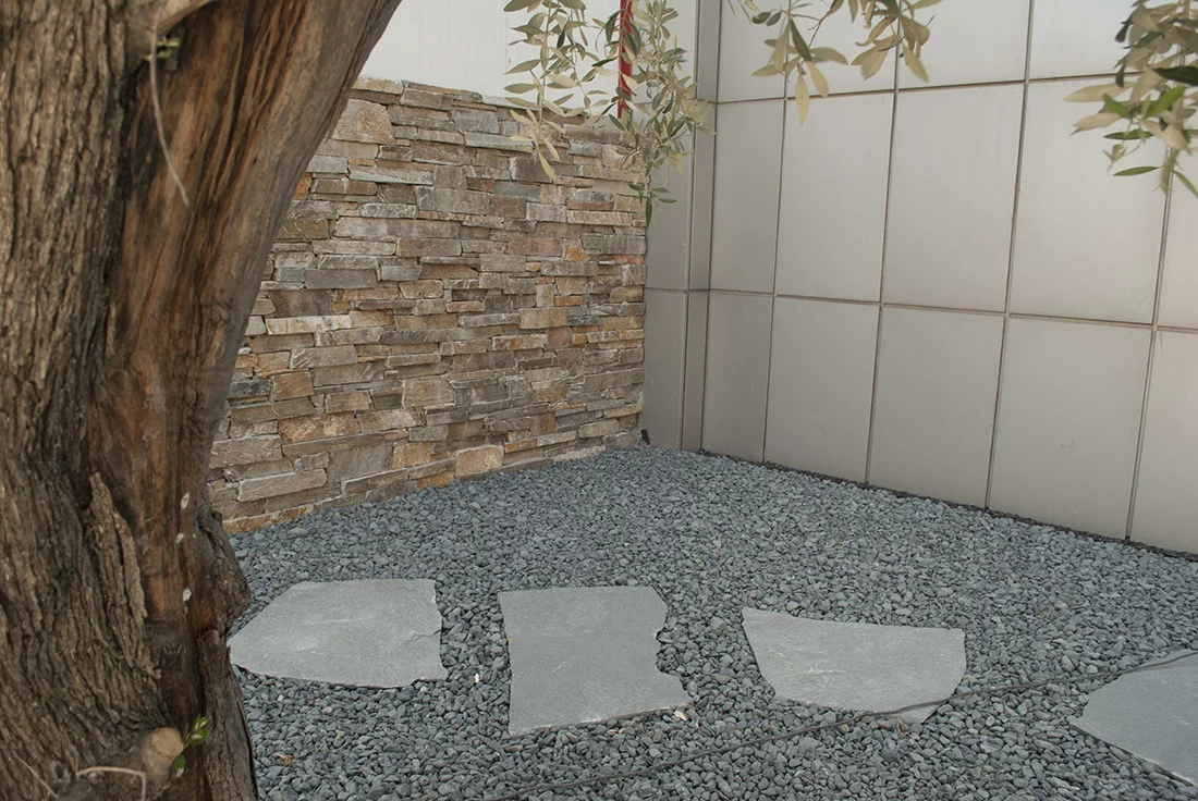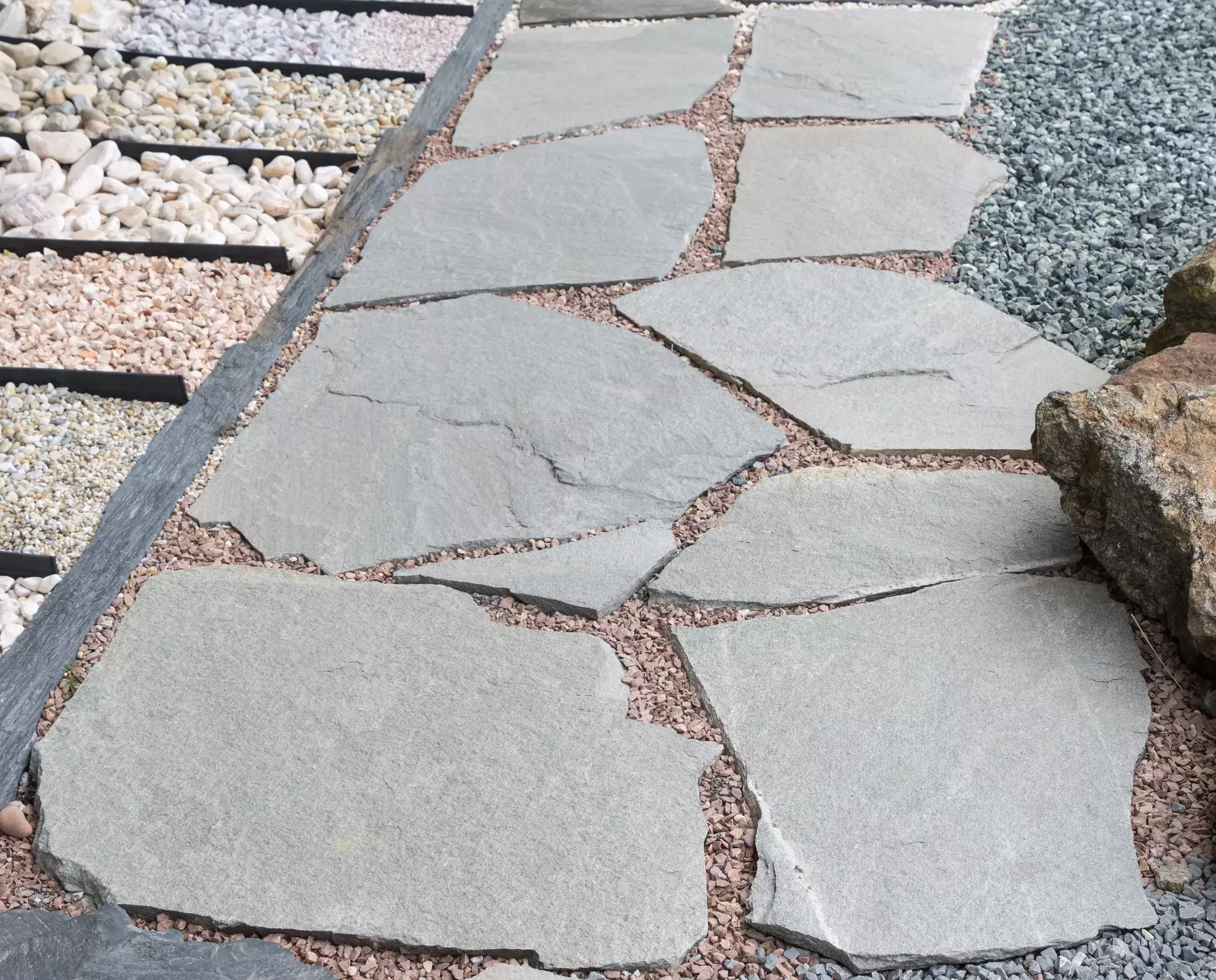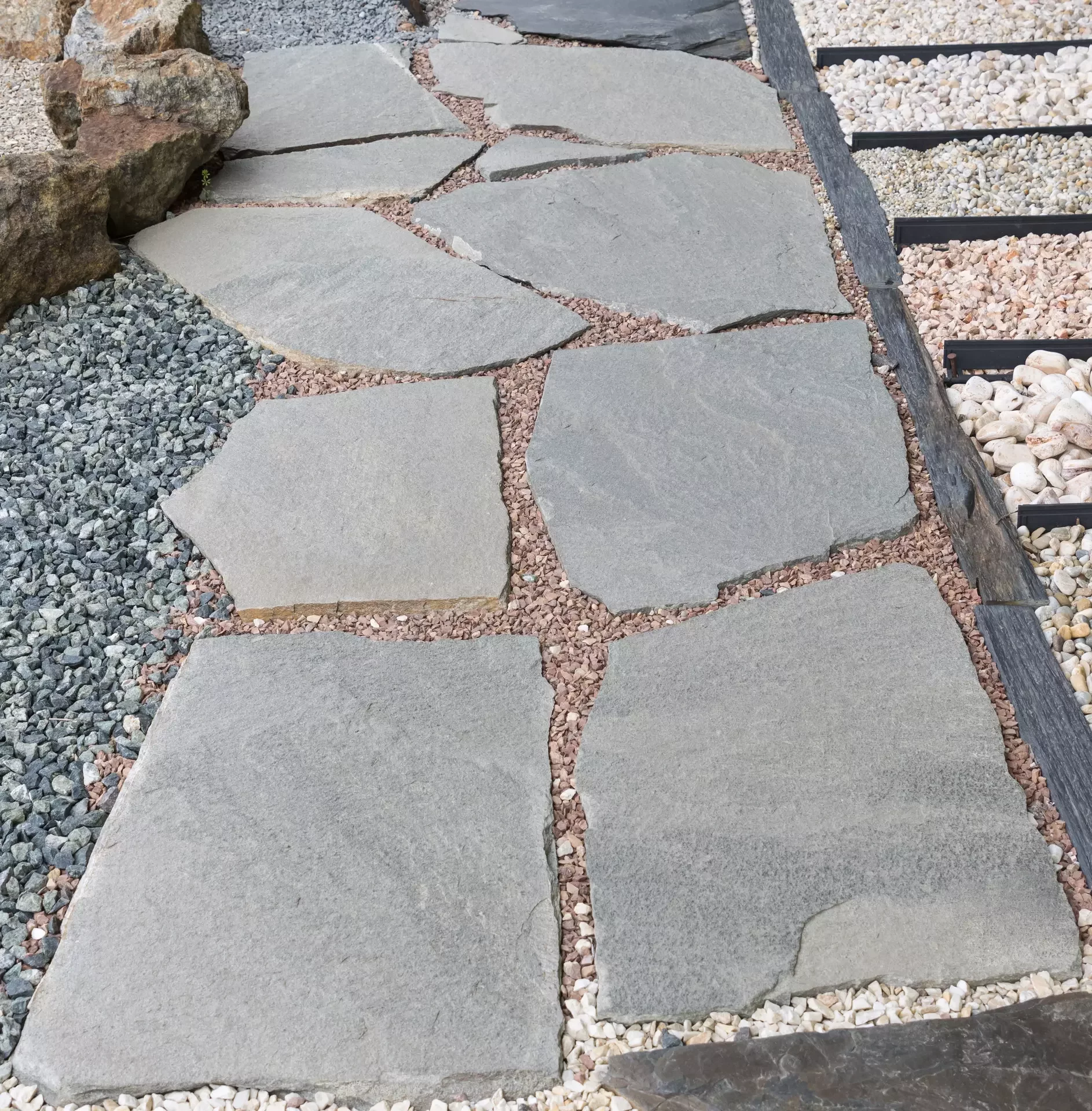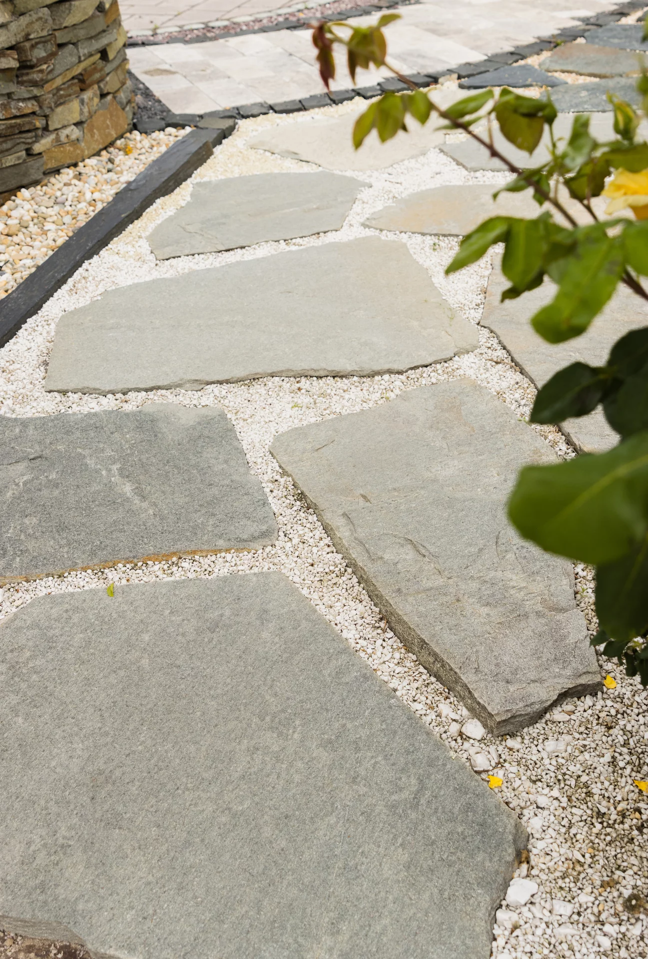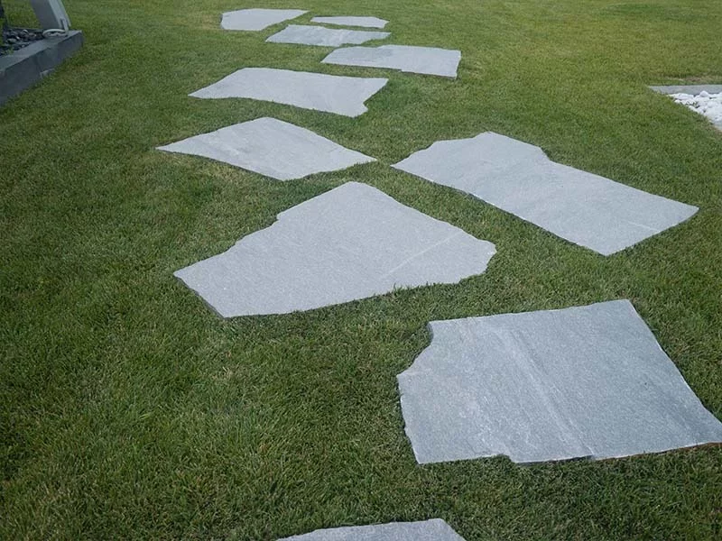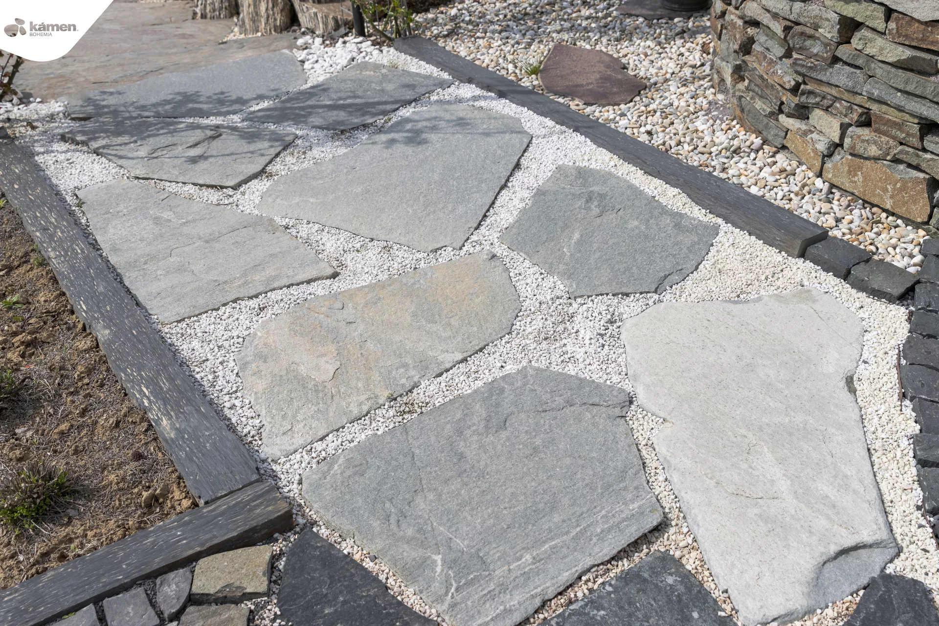 Nášlapné kameny z gneisu se náramně vyjímají v kontrastní zeleni trávníku. Zahradní chodníčky a přírodní cestičky na zahrádce v šedých odstínech propůjčí každému prostoru jedinečnost a svéráznou originálnost. Barevným kontrastem šedého kamene a zářivého zeleného trávníku rozbijí větší, neforemné plochy na útulná zákoutí. Vyniknou v okrasných zahradách, ale "šmrnc" dodají i uhlazeným japonským zahradám. Manipulace a realizace chodníků v zahradě s gneisem jumbo je nesmírně jednoduchá. Stačí položit nášlapné kameny z gneisu na předem vybrané místo a je to. Kámen je také možné položit napřed vysypaný štěrk.