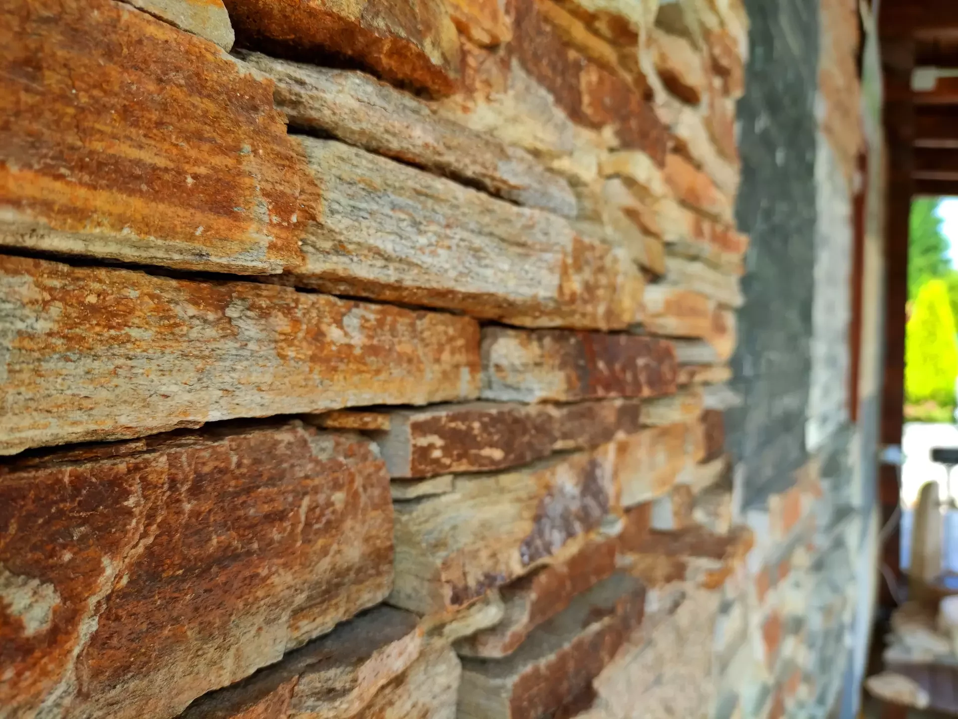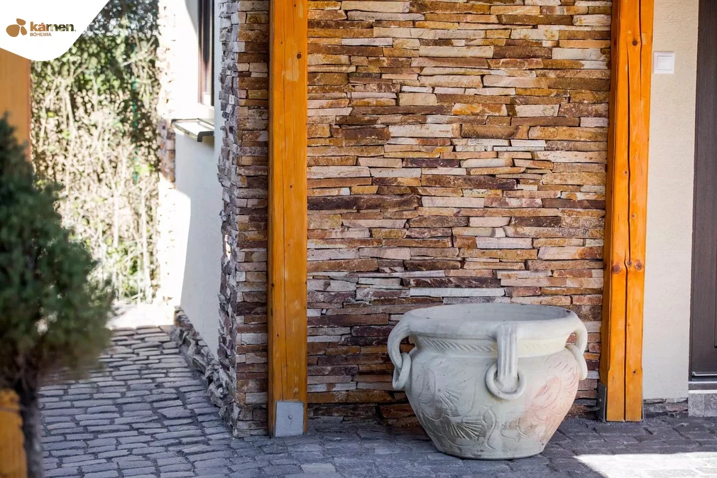 Zlato-hnědý kamenný obklad gneis mond se výborně hodí do exteriéru i interiéru horské či venkovské chaty. Ale využití najde i v rustikálně laděném bytě či rodinném domě. Práce s kamenným obkladem gneis mond je velmi jednoduchá, protože zadní strana kamene je zapílená. Nechává tak vyniknout zajímavou, drsnou strukturu na pohledové straně kamene.