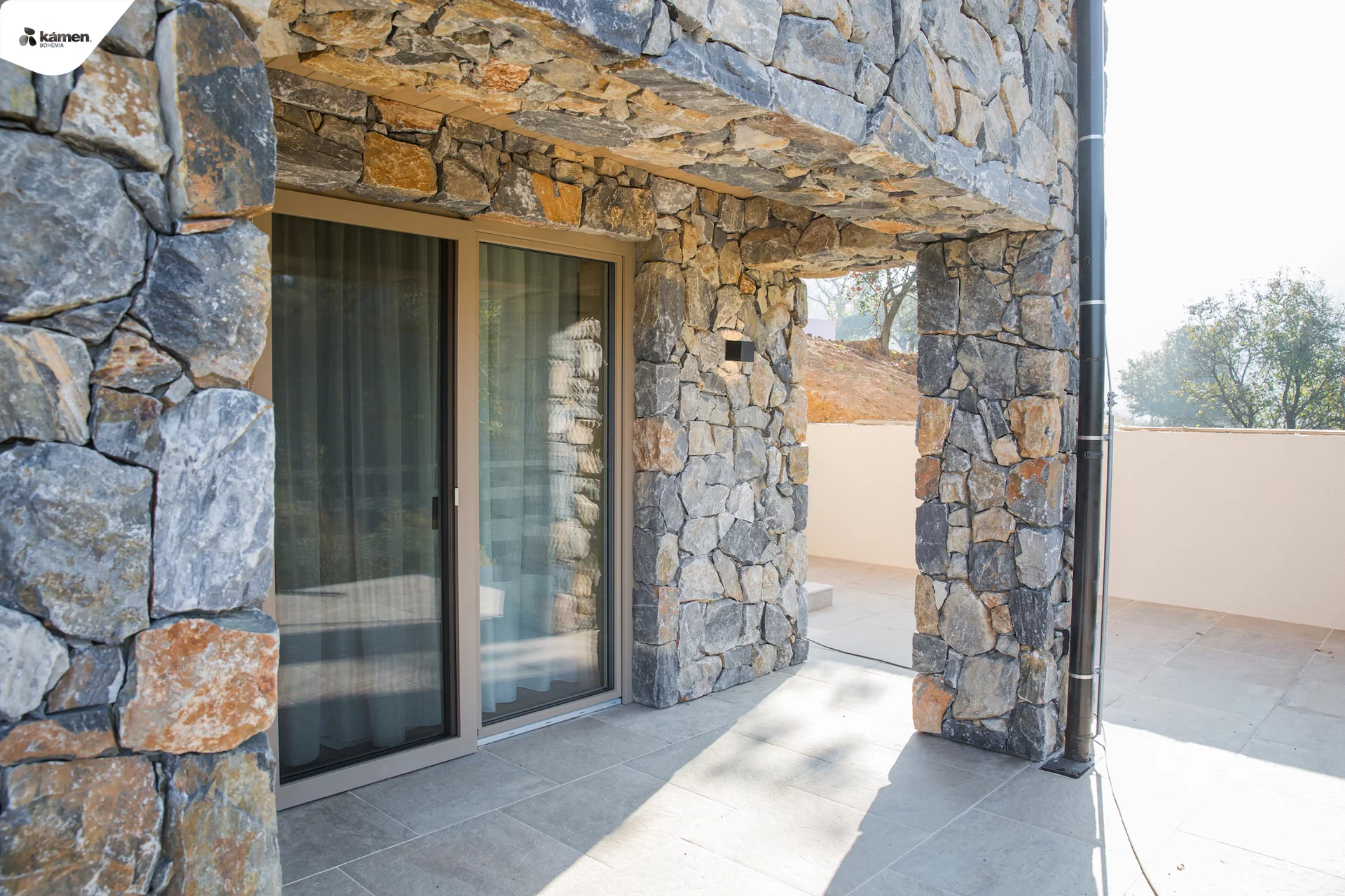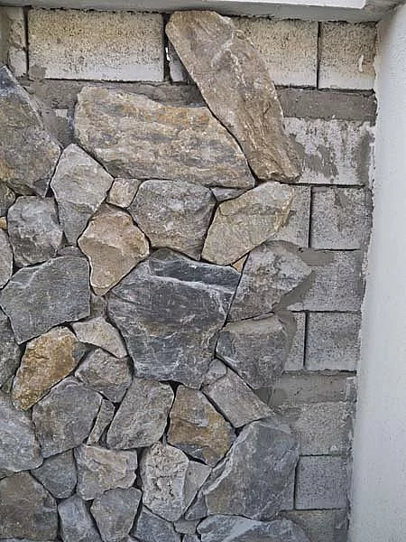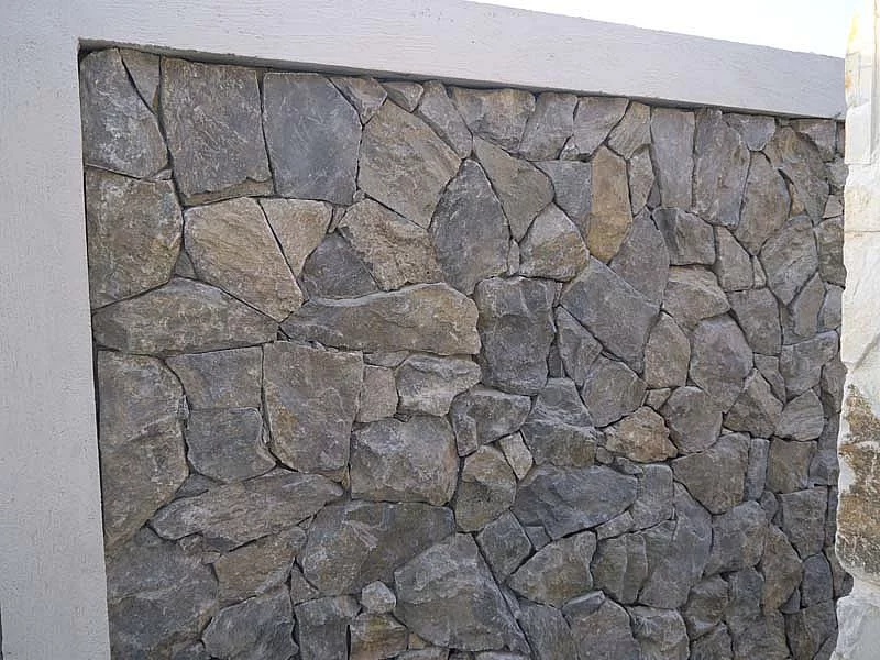 Obklad řezaného kamene v nenáročné tmavě šedé barvě působí dojmem zdí starých hradů. Používá se hlavně v exteriéru k obkladu fasád, soklů nebo již existujících zahradních zídek. Avšak stále častěji se používá iv interiéru jako obklad stěn či krbů. Jeho jedinečná struktura krásně vynikne u zelených sukulentů či okrasných stromků.