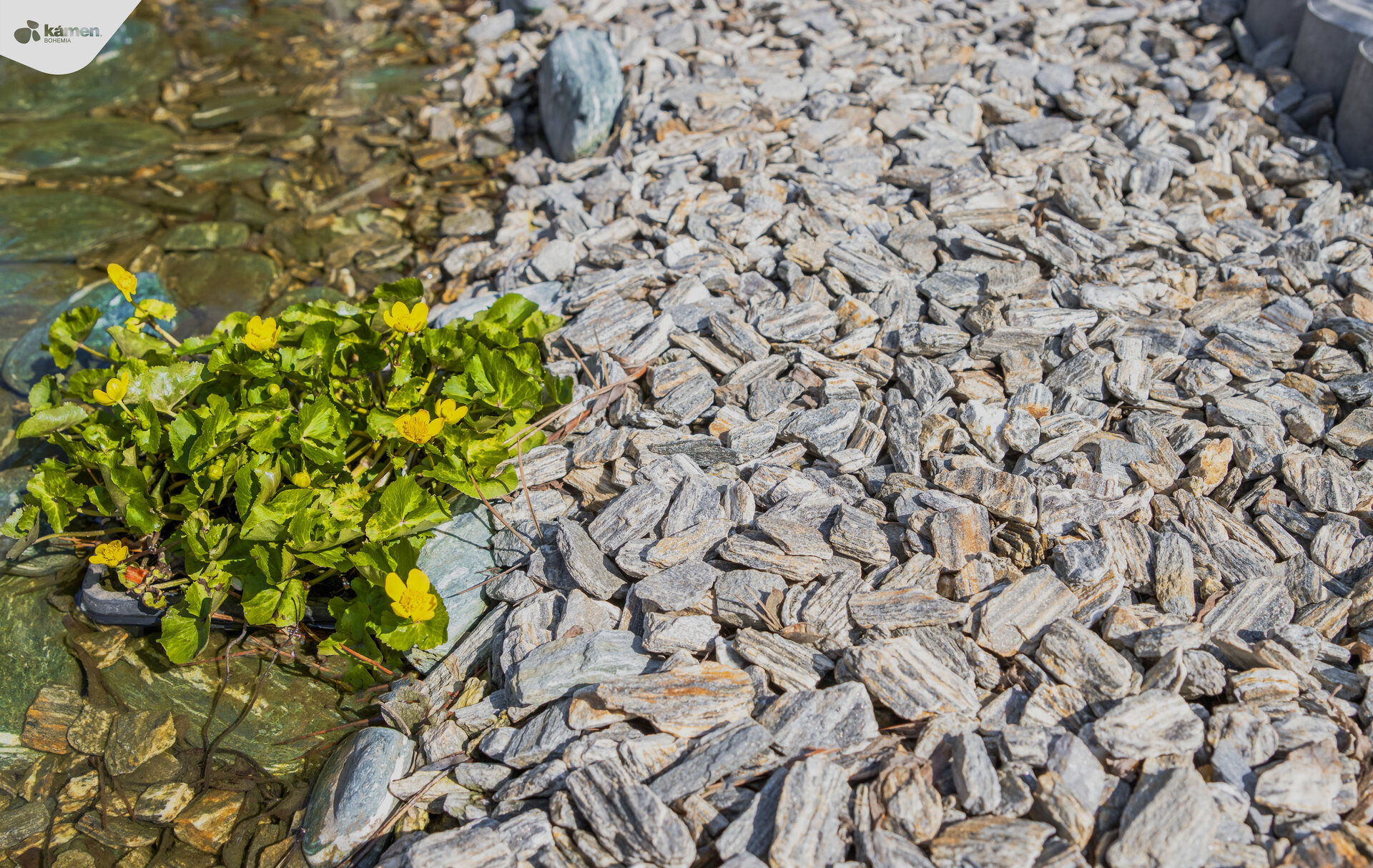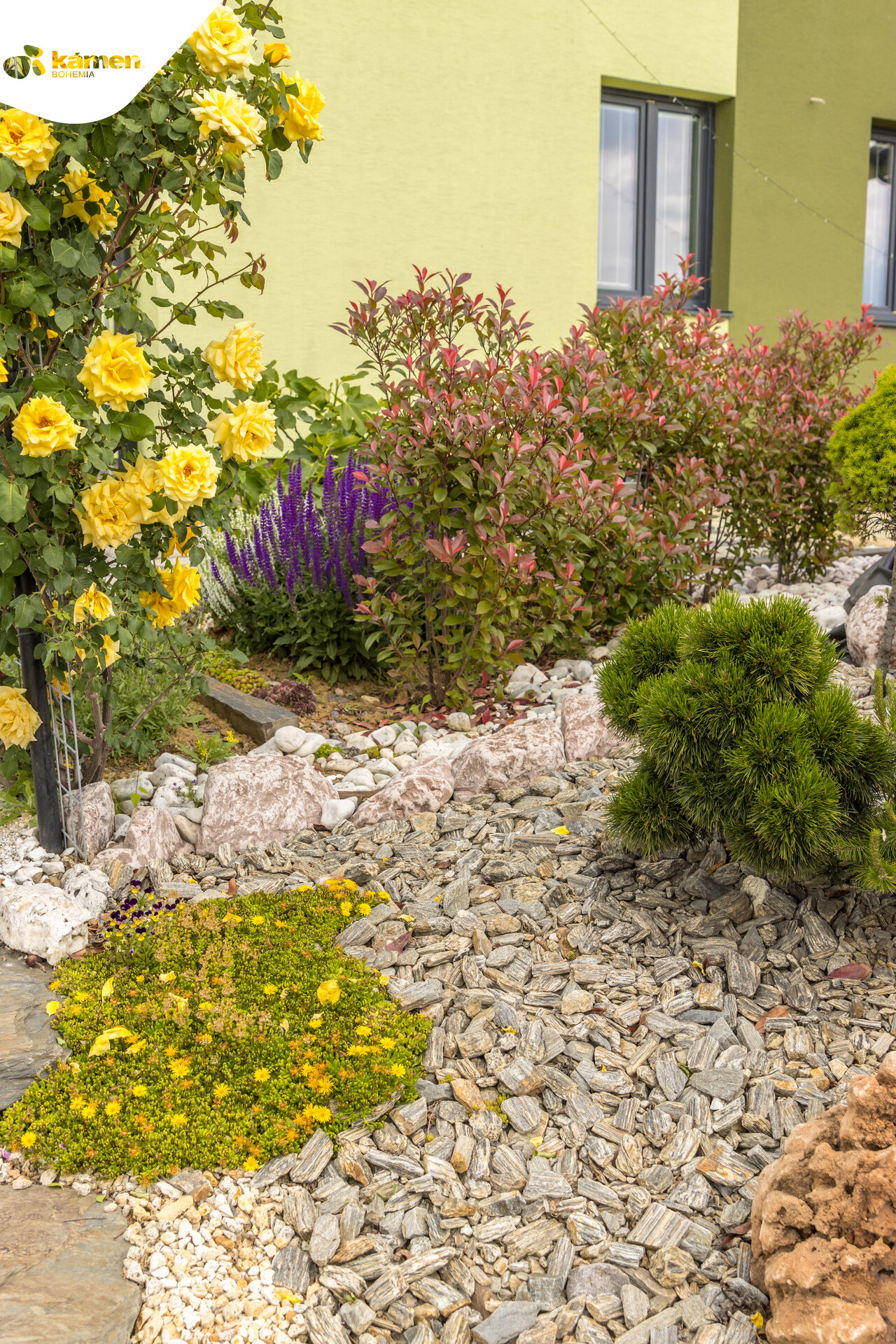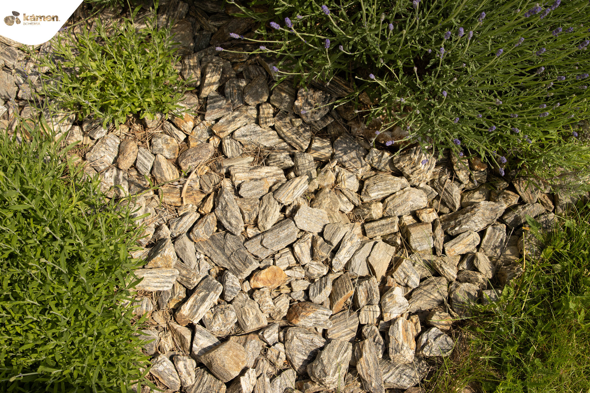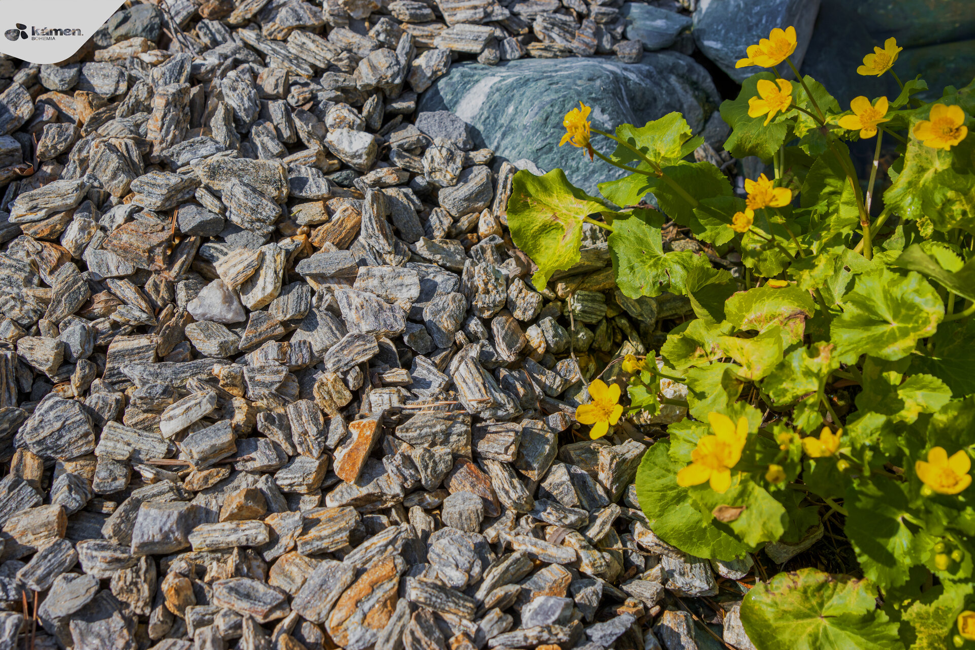 Přírodní kámen kamenná kůra svou nezaměnitelnou strukturou a zlato-hnědou barvou připomíná naturální přírodu v podobě kůry lesních stromů. Okrasný štěrk kamenná kůra využijete v okrasné zahradní skalce, vedle domu jako svod dešťové vody nebo jím můžete vysypat štěrkovou cestičku do zahrady. Ale své uplatnění najde i v interiéru, například jako originální doplněk v prosklené, vysoké váze ve vašem obývacím pokoji. Kamenný štěrk kamenná kůra se výborně kombinuje s okrasnými stromky, kvetoucími trvalkami, oblíbenými sukulenty, okrasnými trávami či voňavými bylinkami.