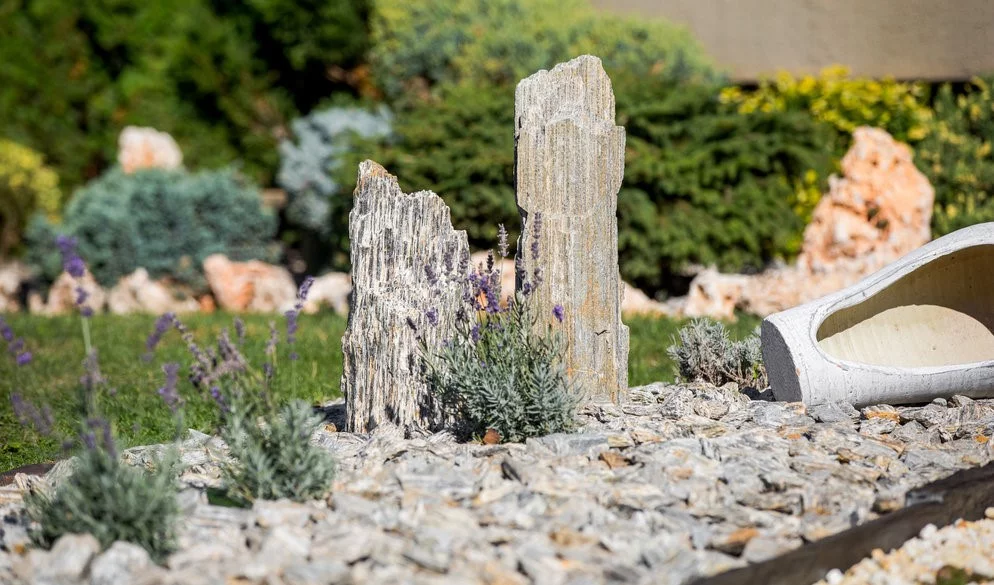 Soliterní kámen strukturou i barevností připomíná kmen stromů, právě proto je velmi zajímavý. Kamenná kůra více vynikne mezi barevnými trvalkami a zelenými jehličnany. Solitery s výškovou rozmanitostí od 50 cm jsou určeny hlavně do přírody, kde navodí příjemnou a pohodovou atmosféru, vhodnou k relaxaci a inspiraci. Údržba je finančně i fyzicky nenáročná.