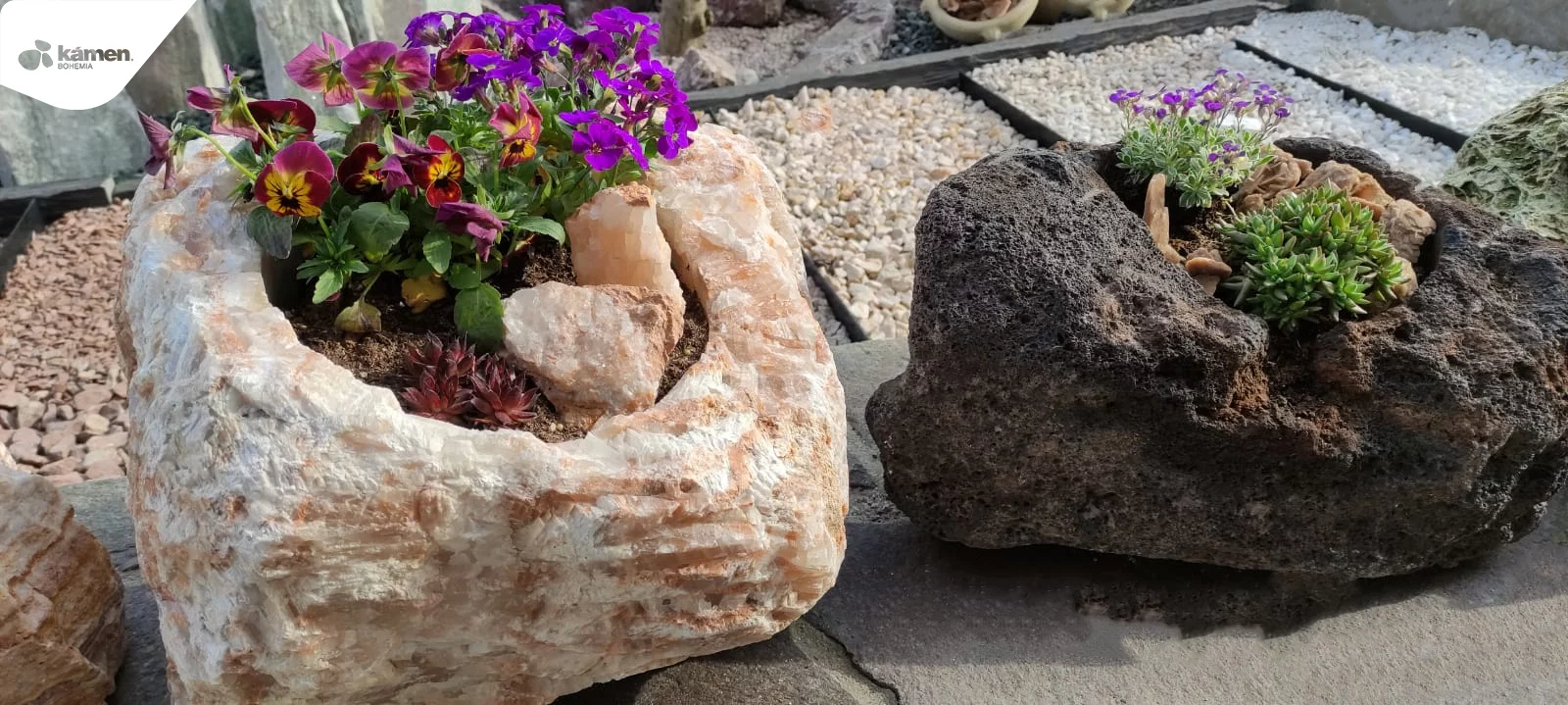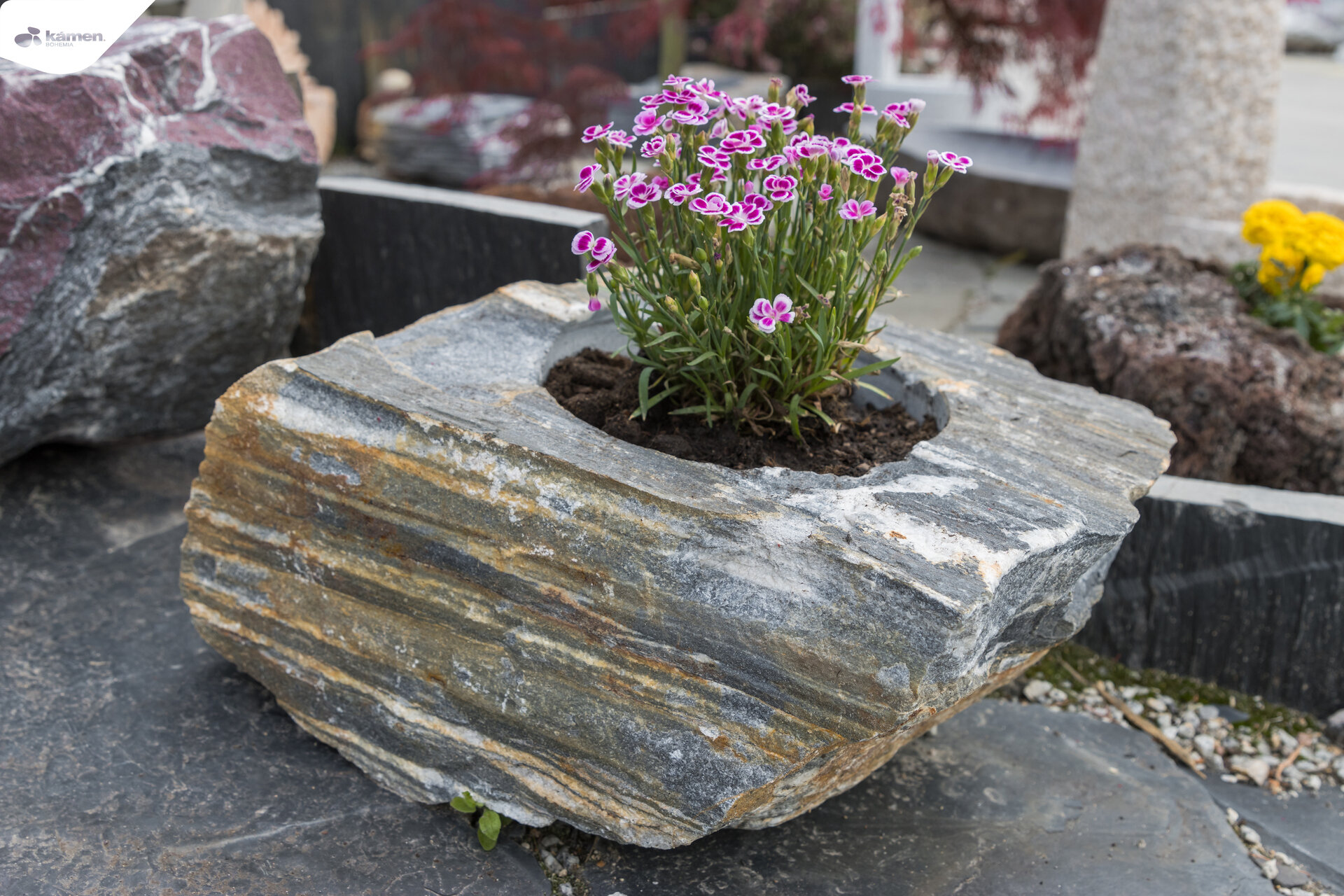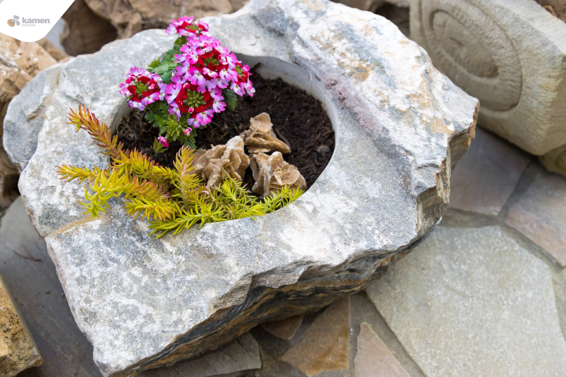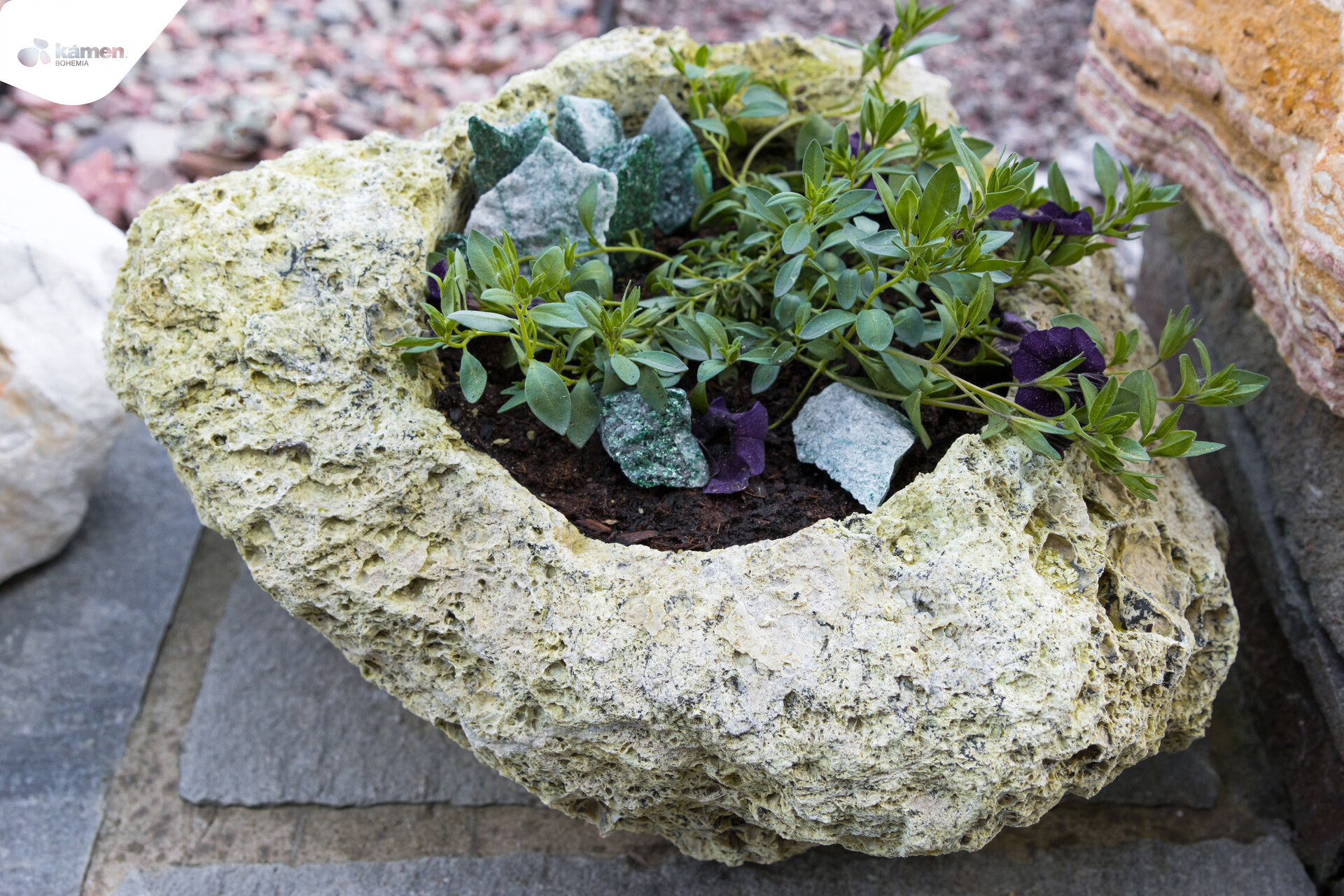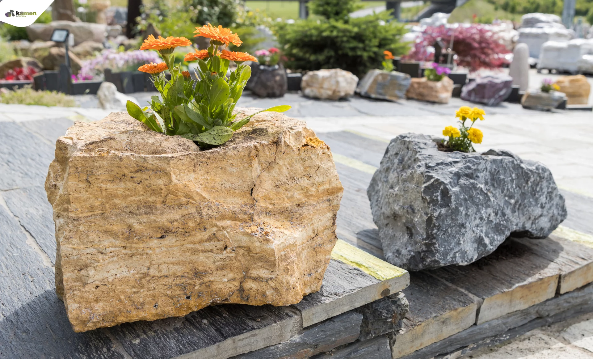 Kamenný doplněk v různých velikostech a barvách je vhodný do zahrad, parků či náměstí. Kamenný květináč je unikát právě kvůli spojení přírodního kamene a nádoby na zasazení různých druhů květin, keřů či malých okrasných stromků. Upraveny jsou z velkých solitérů přírodního kamene.