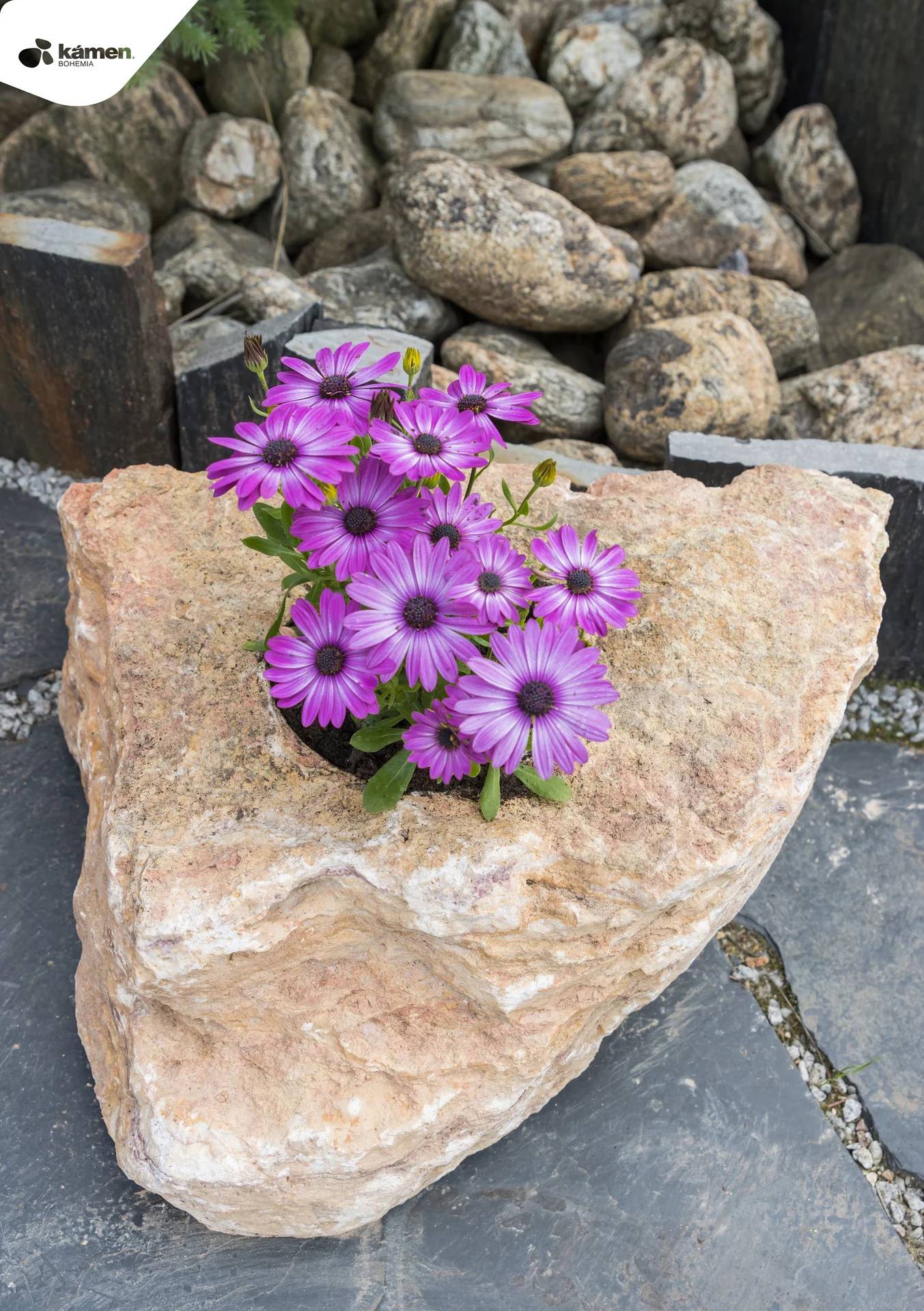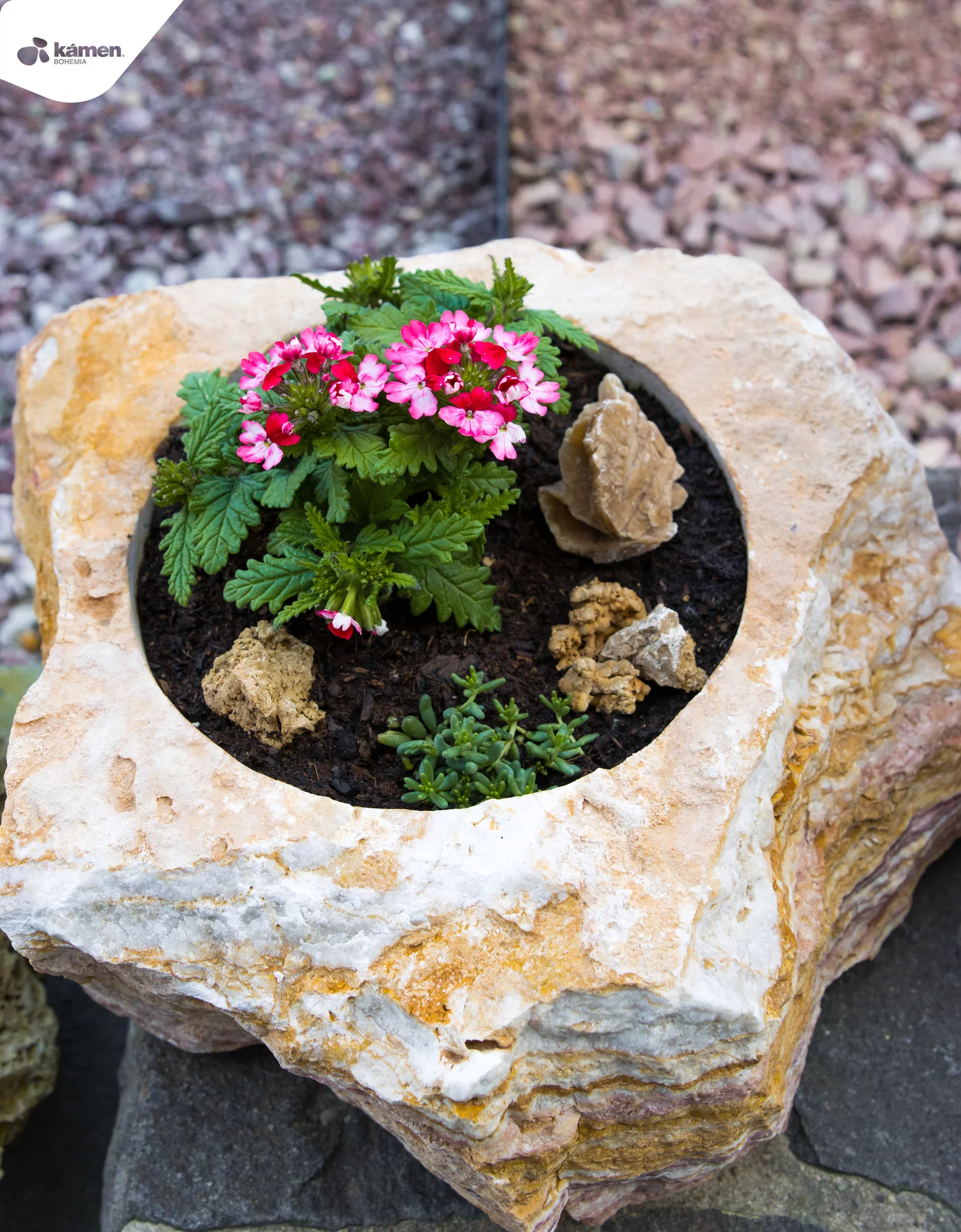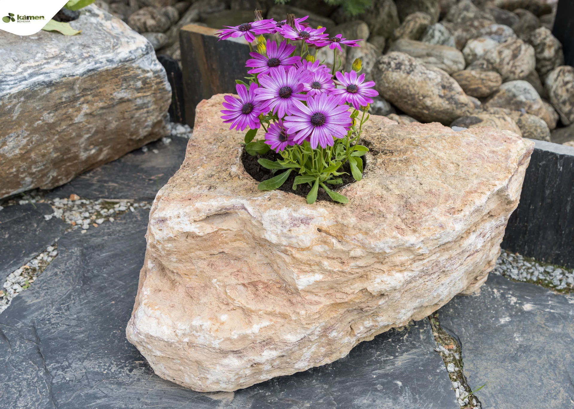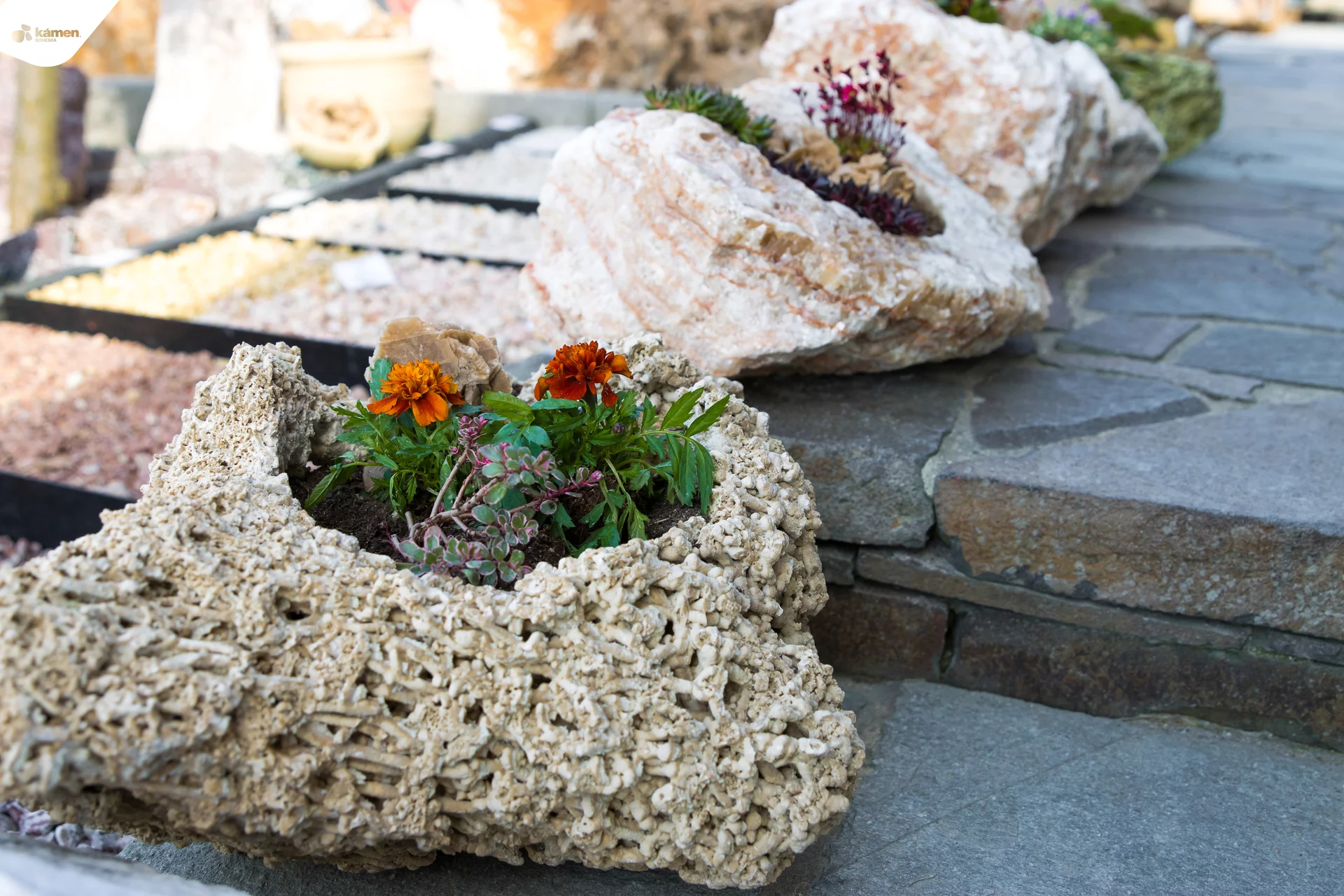 Kamenný doplněk v různých velikostech a barvách je vhodný do zahrad, parků či náměstí. Kamenný květináč je unikát právě kvůli spojení přírodního kamene a nádoby na zasazení různých druhů květin, keřů či malých okrasných stromků. Upraveny jsou z velkých solitérů přírodního kamene.