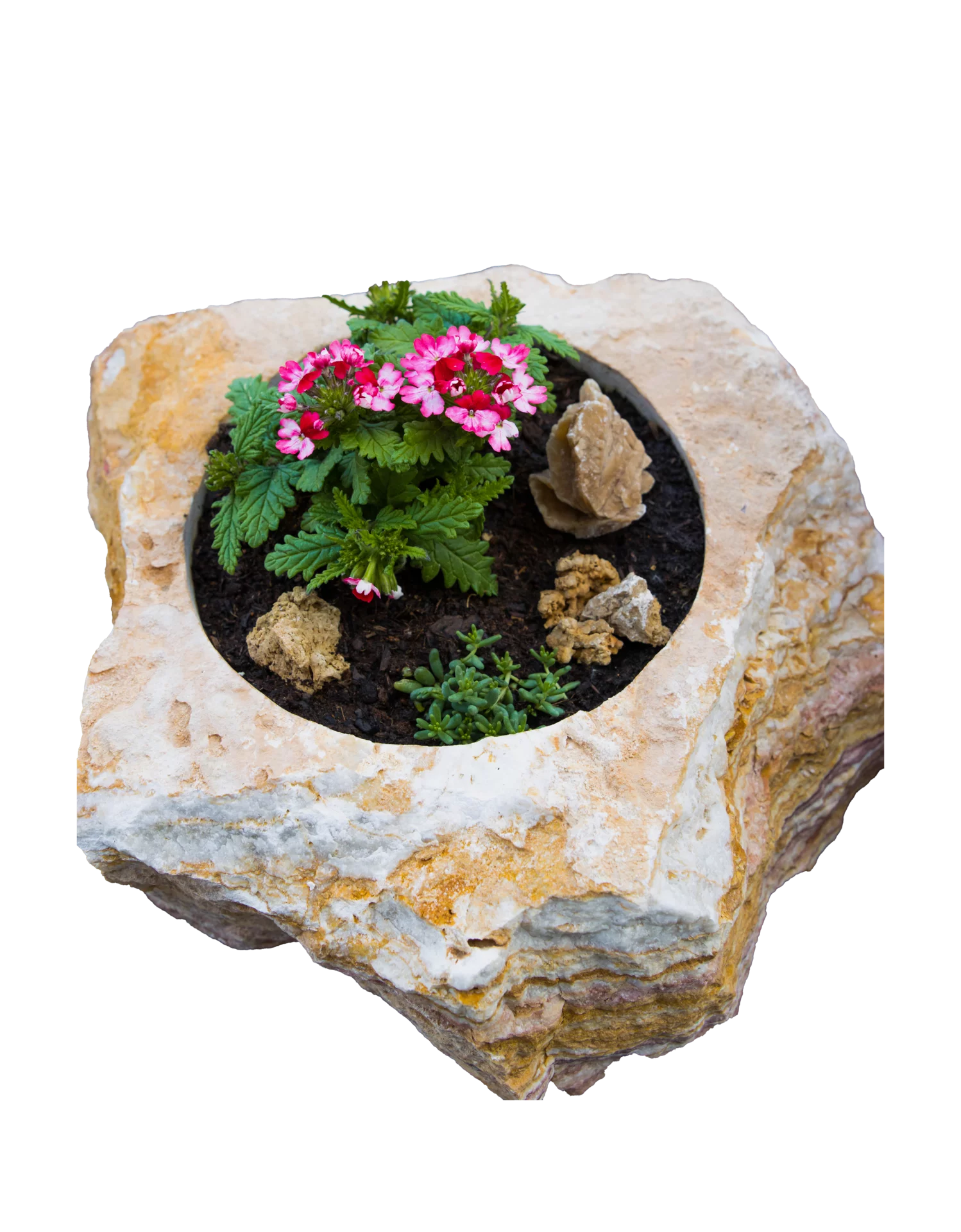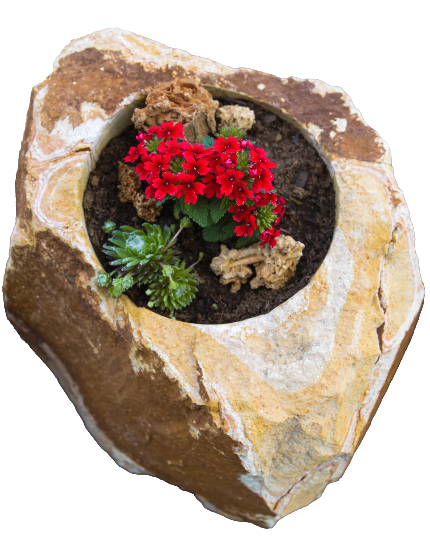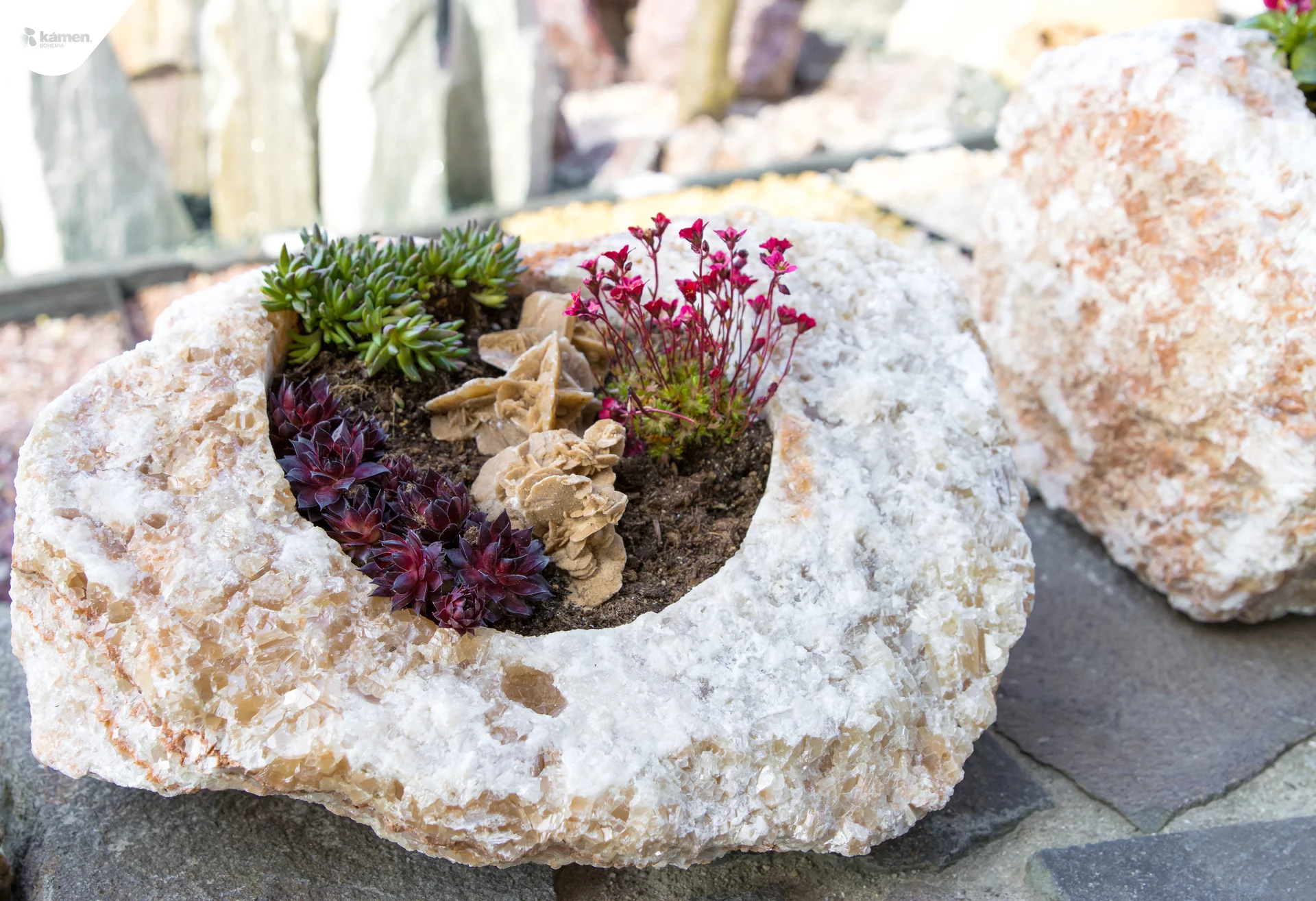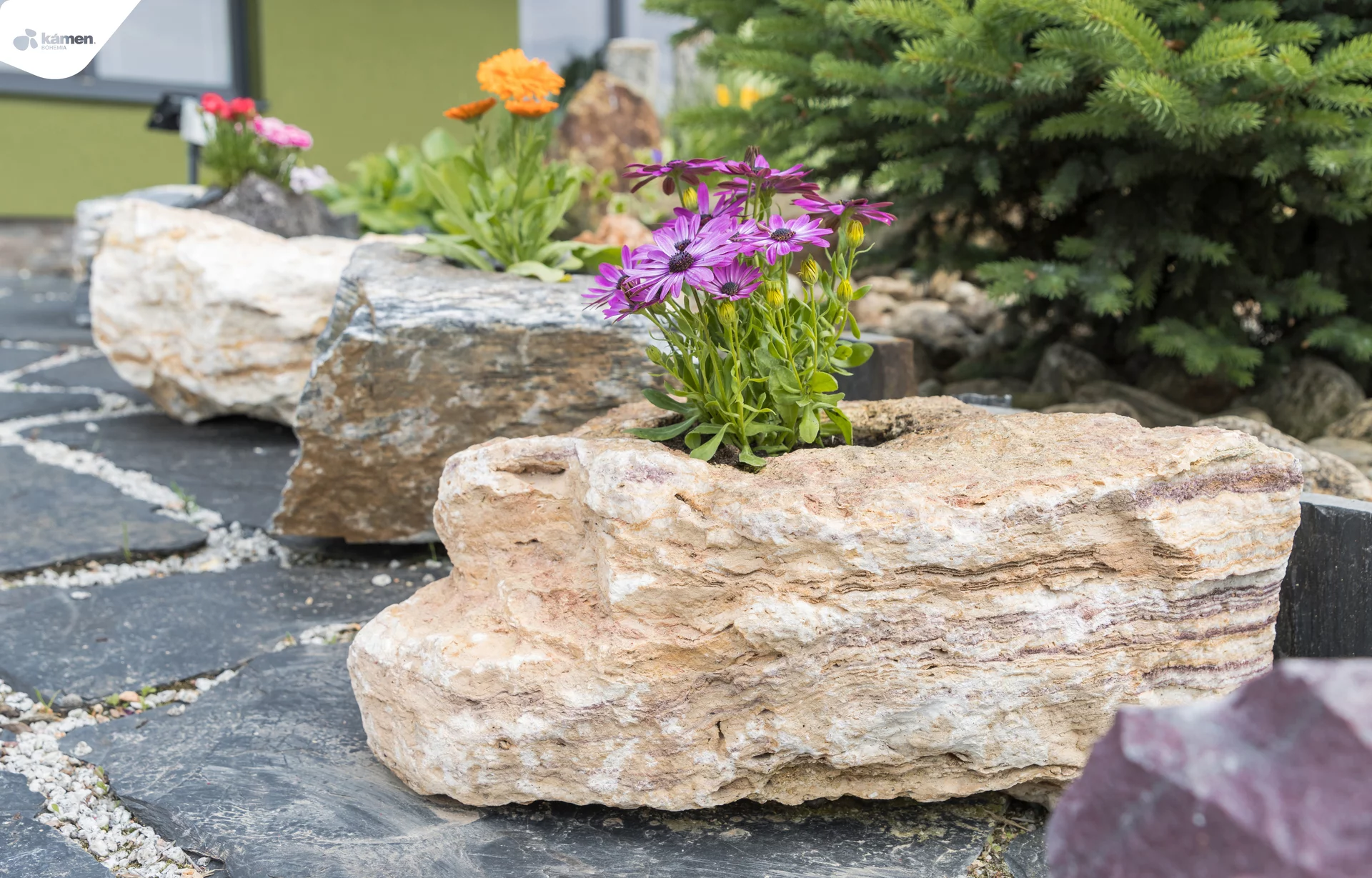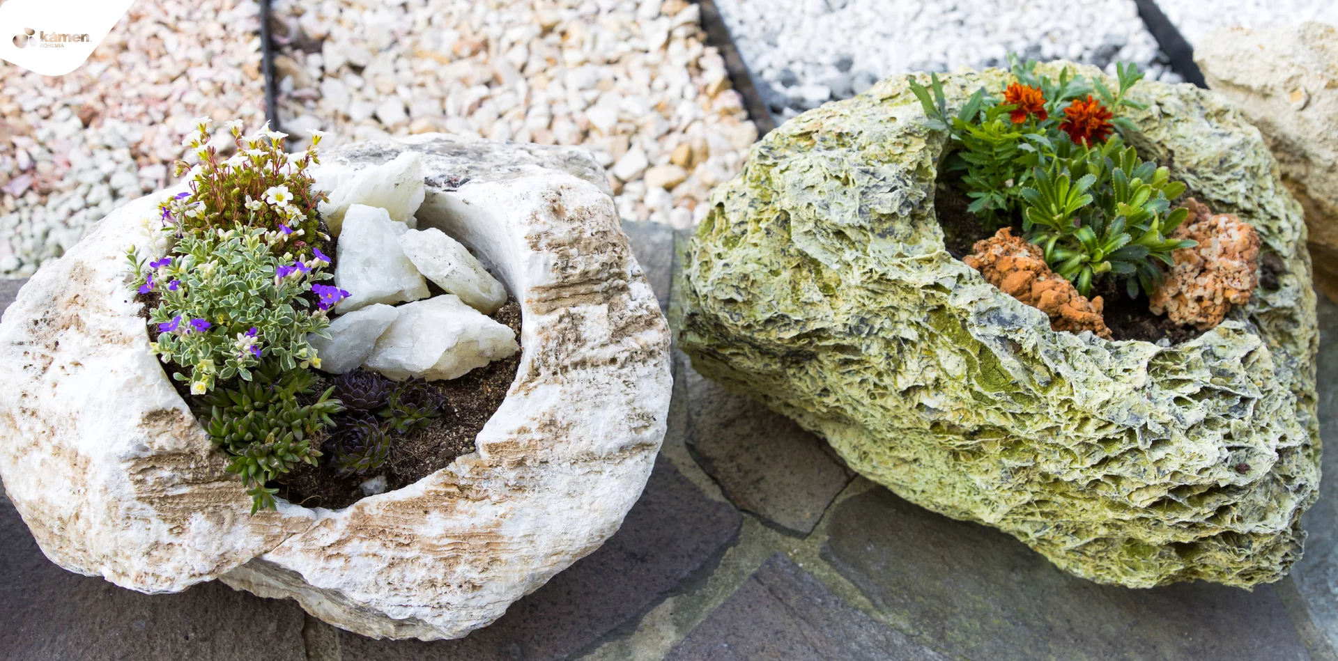 Kamenný doplněk v různých velikostech a barvách je vhodný do zahrad, parků či náměstí. Kamenný květináč je unikát právě kvůli spojení přírodního kamene a nádoby na zasazení různých druhů květin, keřů či malých okrasných stromků. Upraveny jsou z velkých solitérů přírodního kamene.