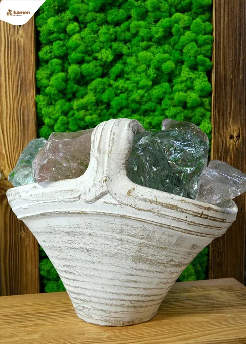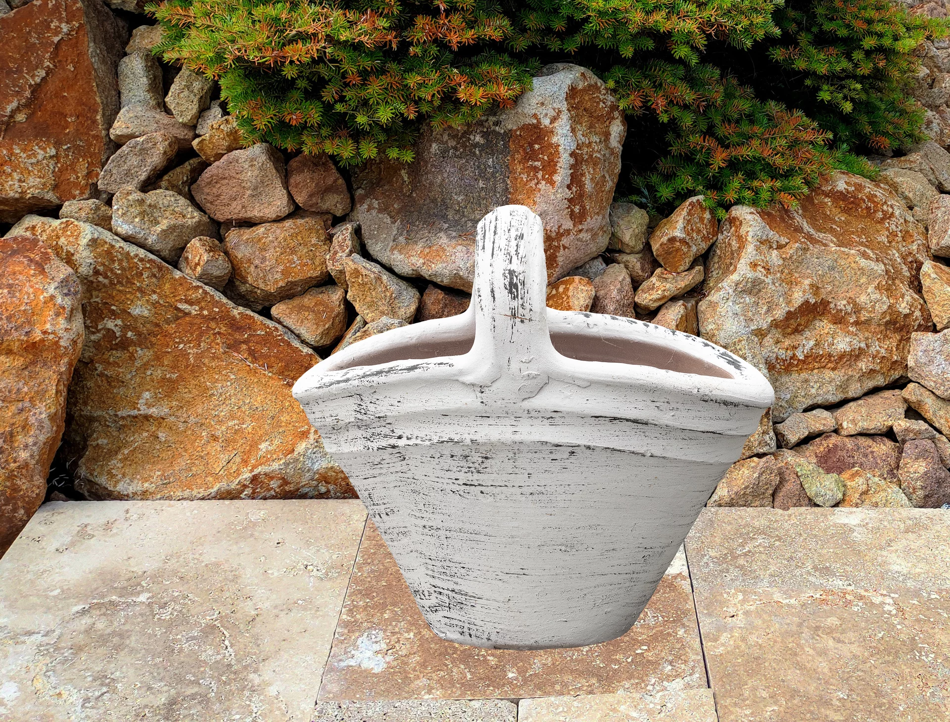 Zahradní amfora se vyrábí z pálené červené nebo červenohnědé hlíny. Výhodou každé amfory je její dostatečně těžká váha, což znamená, že i při horších povětrnostních podmínkách se nádoba nepřevrhne. Každá amfora má svůj jedinečný vzor a tvar. Často se využívá jako květináč v exteriéru na terase, altánku apod. Amforu využijete však iv interiéru či zimních zahradách. V kombinaci s rostlinami, jako jsou například speciální vyšlechtěné palmy, exotické cykasy či voňavé citroníky, promění amfora každý prostor v malý ráj dovolené. V zimním období je třeba amforu vhodně uskladnit a ochránit tak před mrazem. Oloupání barvy není předmětem reklamace, protože v procesu výroby se používá mořská sůl, která má tendenci opadat při odpaření přebytečné vody. Každý kus je originál, takže drobné nedokonalosti souvisí s ruční výrobou a dodávají nádech antiky vaší domácnosti.