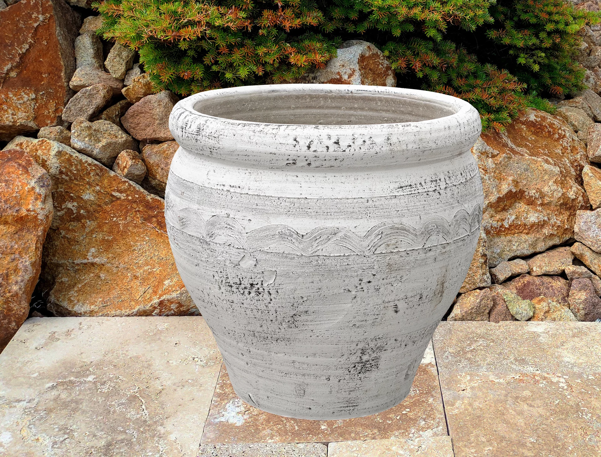 Zahradní amfora se vyrábí z pálené červené nebo červenohnědé hlíny. Výhodou každé amfory je její dostatečně těžká váha, což znamená, že i při horších povětrnostních podmínkách se nádoba nepřevrhne. Každá amfora má svůj jedinečný vzor a tvar. Často se využívá jako květináč v exteriéru na terase, altánku apod. Amforu využijete však iv interiéru či zimních zahradách. V kombinaci s rostlinami, jako jsou například speciální vyšlechtěné palmy, exotické cykasy či voňavé citroníky, promění amfora každý prostor v malý ráj dovolené. V zimním období je třeba amforu vhodně uskladnit a ochránit tak před mrazem. Oloupání barvy není předmětem reklamace, protože v procesu výroby se používá mořská sůl, která má tendenci opadat při odpaření přebytečné vody. Každý kus je originál, takže drobné nedokonalosti souvisí s ruční výrobou a dodávají nádech antiky vaší domácnosti.