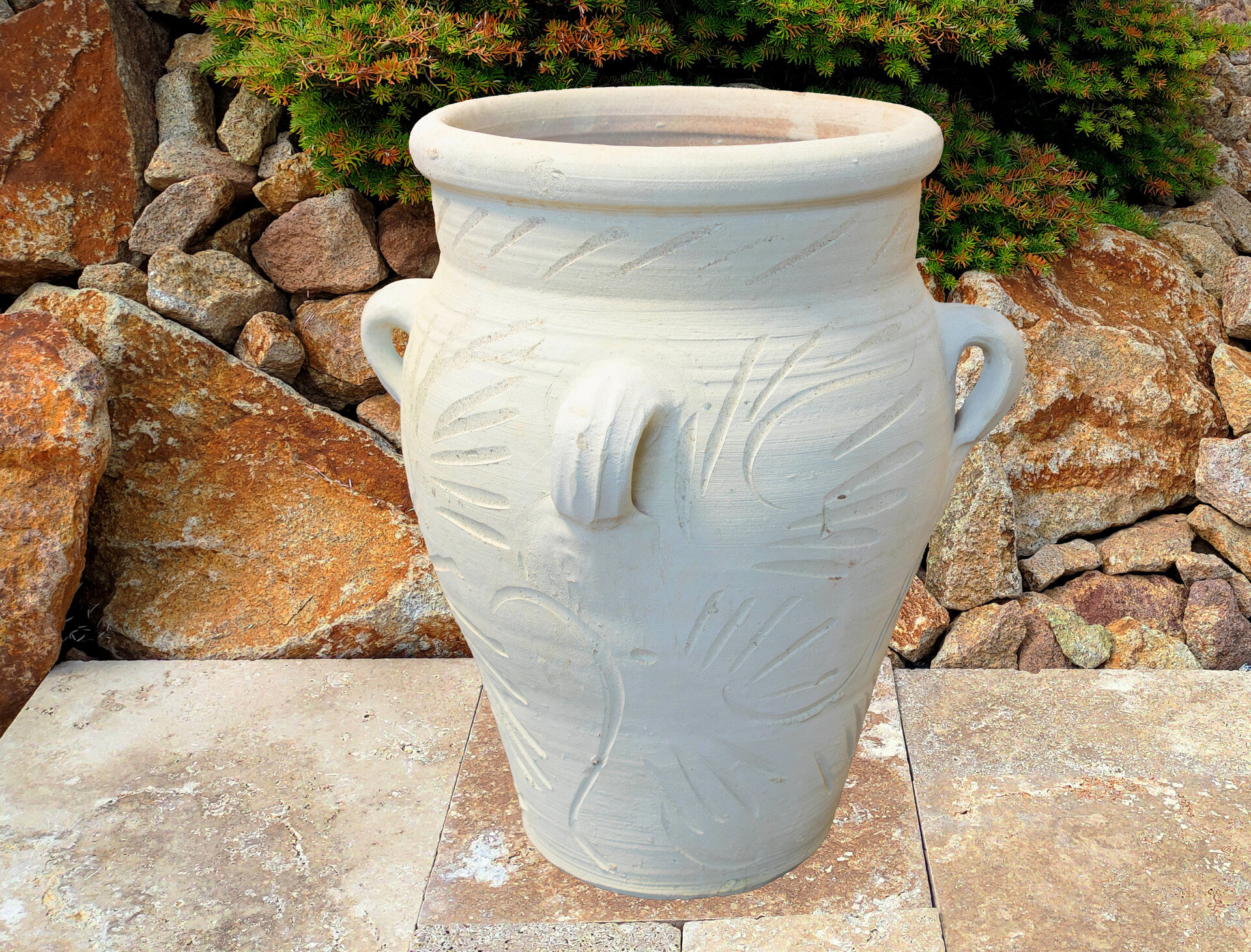 Zahradní amfora se vyrábí z pálené červené nebo červenohnědé hlíny. Výhodou každé amfory je její dostatečně těžká váha, což znamená, že i při horších povětrnostních podmínkách se nádoba nepřevrhne. Každá amfora má svůj jedinečný vzor a tvar. Často se využívá jako květináč v exteriéru na terase, altánku apod. Amforu využijete však i v interiéru či zimních zahradách. V kombinaci s rostlinami, jako jsou například speciální vyšlechtěné palmy, exotické cykasy či voňavé citroníky, promění amfora každý prostor v malý ráj dovolené. V zimním období je třeba amforu vhodně uskladnit a ochránit tak před mrazem. Oloupání barvy není předmětem reklamace, protože v procesu výroby se používá mořská sůl, která má tendenci opadat při odpaření přebytečné vody. Každý kus je originál, takže drobné nedokonalosti souvisí s ruční výrobou a dodávají nádech antiky vaší domácnosti.