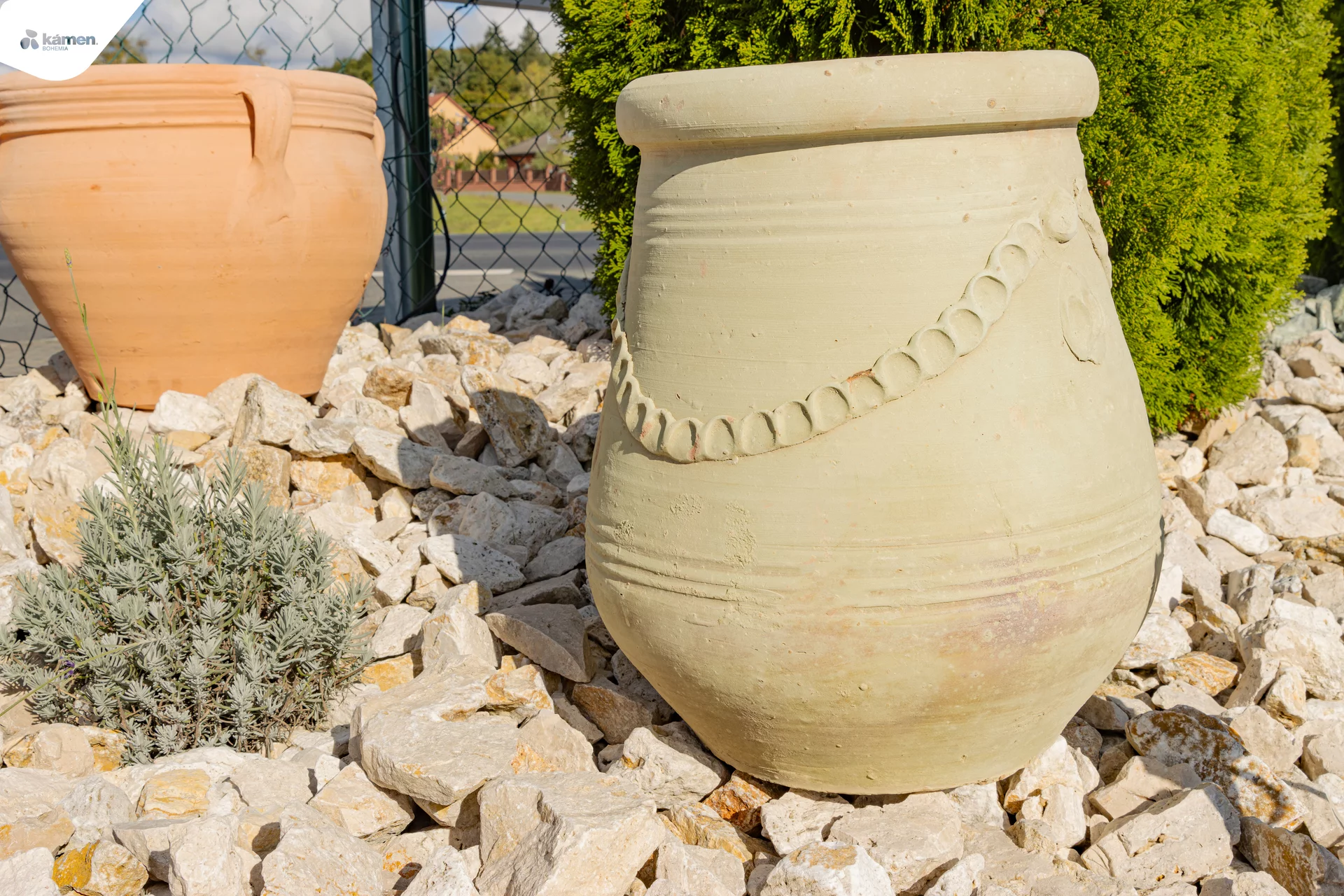 Amfora jako zahradní doplněk je velmi oblíbenou architektonickou dekorací. Jako netradiční doplněk se amfora využívá zejména v zahradě, okrasné skalce, predzáhrade, na terase nebo v altánku jako dekorační váza. Také ji využijete jako dekoraci před vchodové dveře. No zahradní amforu můžete umístit i do interiéru. Jedinečně doplní vstupní halu, chodbu, obývací pokoj, kuchyň či koupelnu. Každá amfora se sebou nese nádech dávné antické historie. Na prodejně máme i jiné druhy amfor, různých barev a tvarů dle aktuální nabídky.