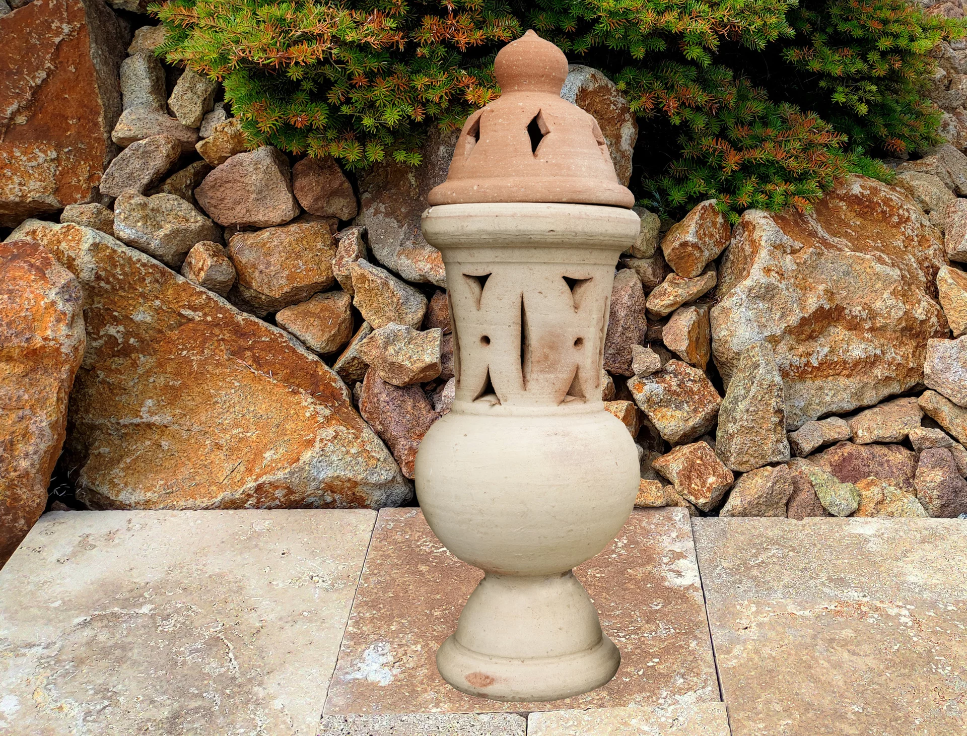 Zahradní amfora se vyrábí z pálené červené nebo červenohnědé hlíny. Výhodou každé amfory je její dostatečně těžká váha, což znamená, že i při horších povětrnostních podmínkách se nádoba nepřevrhne. Každá amfora má svůj jedinečný vzor a tvar. Často se využívá jako květináč v exteriéru na terase, altánku apod. Amforu využijete však iv interiéru či zimních zahradách. V kombinaci s rostlinami, jako jsou například speciální vyšlechtěné palmy, exotické cykasy či voňavé citroníky, promění amfora každý prostor v malý ráj dovolené. V zimním období je třeba amforu vhodně uskladnit a ochránit tak před mrazem. Oloupání barvy není předmětem reklamace, protože v procesu výroby se používá mořská sůl, která má tendenci opadat při odpaření přebytečné vody. Každý kus je originál, takže drobné nedokonalosti souvisí s ruční výrobou a dodávají nádech antiky vaší domácnosti.