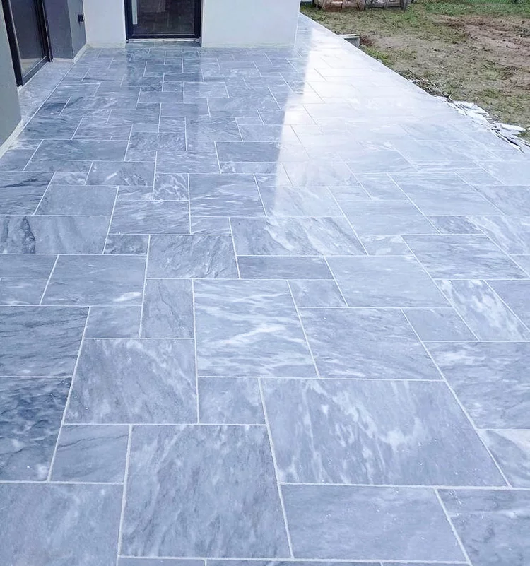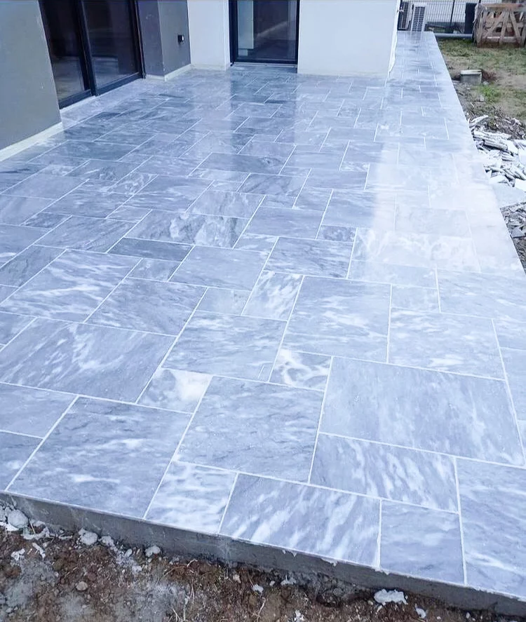 Formátovaný mramor s antikovým povrchem krásně vynikne na terase, u bazénu nebo v letní kuchyňce. S modro-šedou barvou má mnoho využití například jako obrubník a dlažba chodníku popřípadě obklad krbu, soklu, fasádní obklad a jiné. Jeho antikova struktura propůjčí každé místnosti rustikální styl, kde vyniknou barevné trvalky nebo zelené sukulenty či robustní kaktusy. Údržba přírodního kamene je finančně i fyzicky nenáročná. Vybrat si můžete ze dvou tloušťek: 1,2 cm – vhodnější pro obklad a 3 cm – vhodnější pro dlažbu.