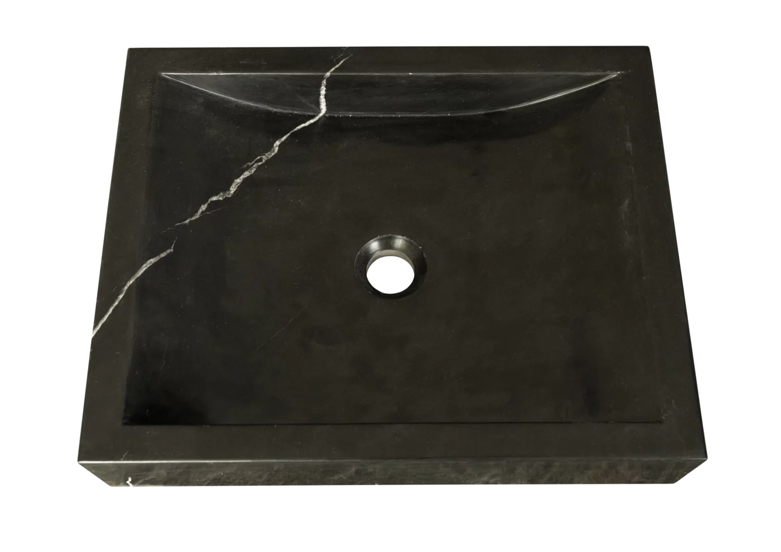 Kamenné umyvadlo čistě černé barvy je jednoznačně velmi elegantní a účelný doplněk hlavně do interiéru – koupelny. Leštěný povrch po celé ploše zaručuje pohodlné používání a čištění umyvadla. Ve spojení se zelenými sukulenty vynikne jeho jedinečnost a černá oslnivost.