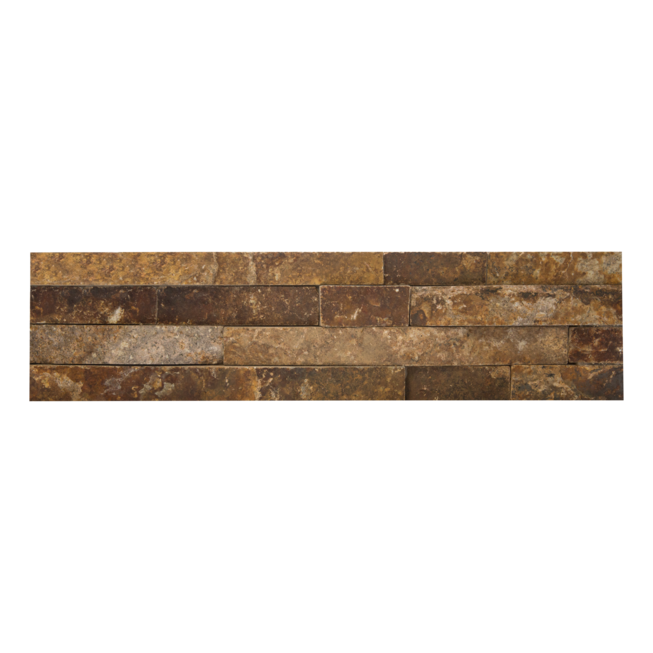Obkladový panel v luxusní zlato-hnědé barvě skvěle doplní každý interiér i exteriér. Ostré hrany pásků s hrubým opracovaným povrchem působí robustně a nejvíce se hodí do dřevěnic nebo prostorných chatek. Tento obklad je vhodné kombinovat s barevnými trvalkami jako například muškáty, petunie či aksamitníky. S tloušťkou 1-3 cm a rozměry 60 x 15 je kompaktní a nenáročný na údržbu.