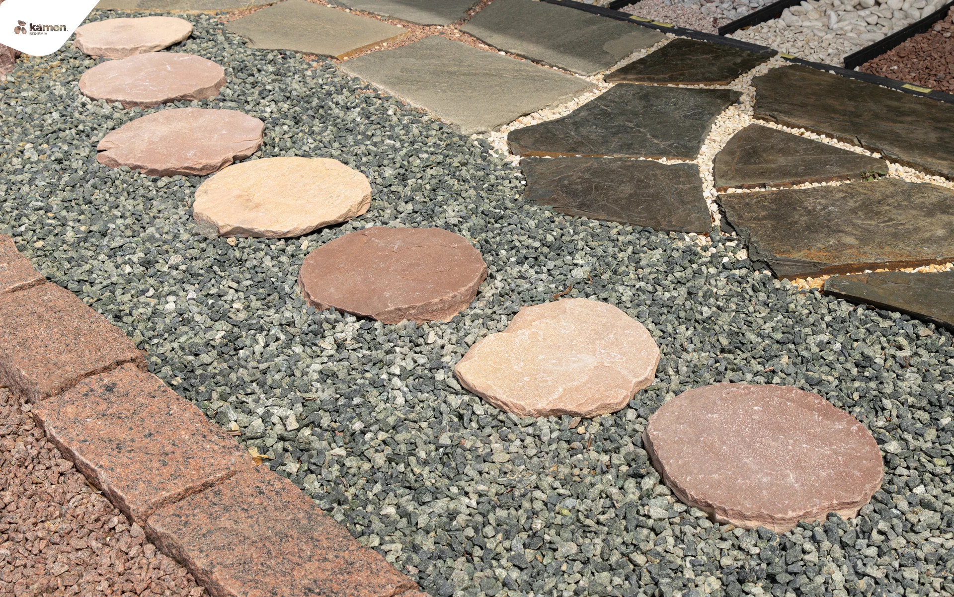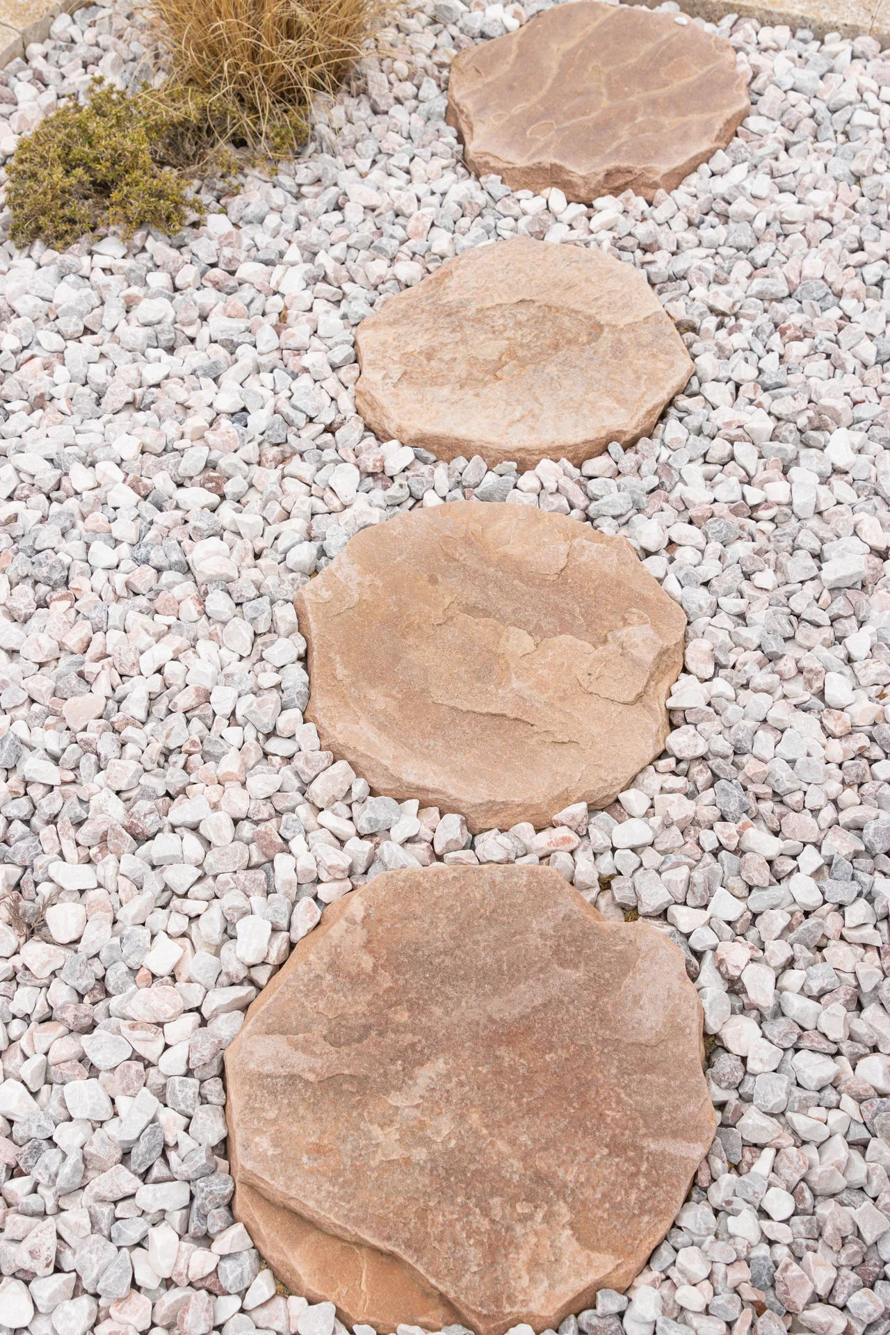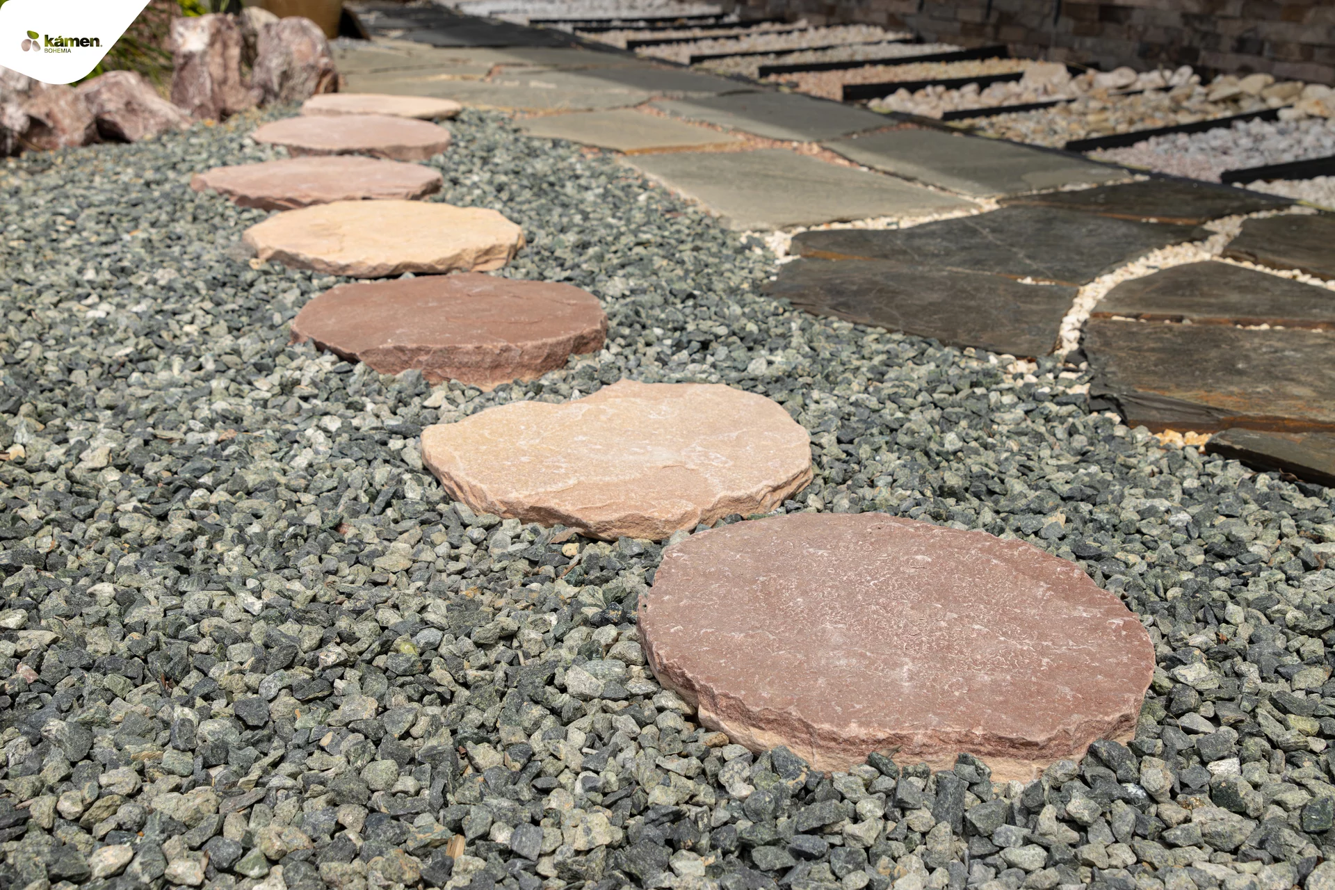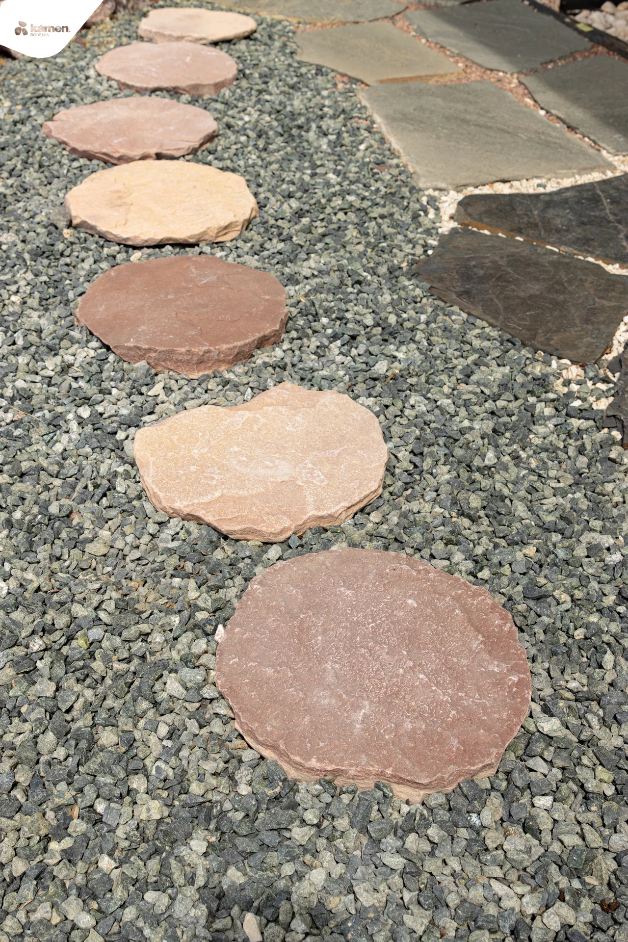 Nášlapné kameny z pískovce se náramně vyjímají v kontrastní zeleni trávníku či vysypaného štěrku. Zahradní chodníčky a přírodní cestičky na zahrádce v tmavě růžových odstínech propůjčí každému prostoru jedinečnost a svéráznou originálnost. Svou barevnou unikátností a kontrastem zářivé zeleně trávníku rozbijí větší, neforemné plochy na sofistikované zákoutí plné relaxu. Vyniknou v japonských zahradách s čistým designem, ale ten správný „look" dodají i moderním zahradám či romantickým předzahrádkám. Manipulace a realizace chodníků v zahradě s pískovcem mona je nesmírně jednoduchá. Stačí položit nášlapné kameny na předem vybrané místo a je to. Pískovec je také lze položit na předem vysypaný štěrk.