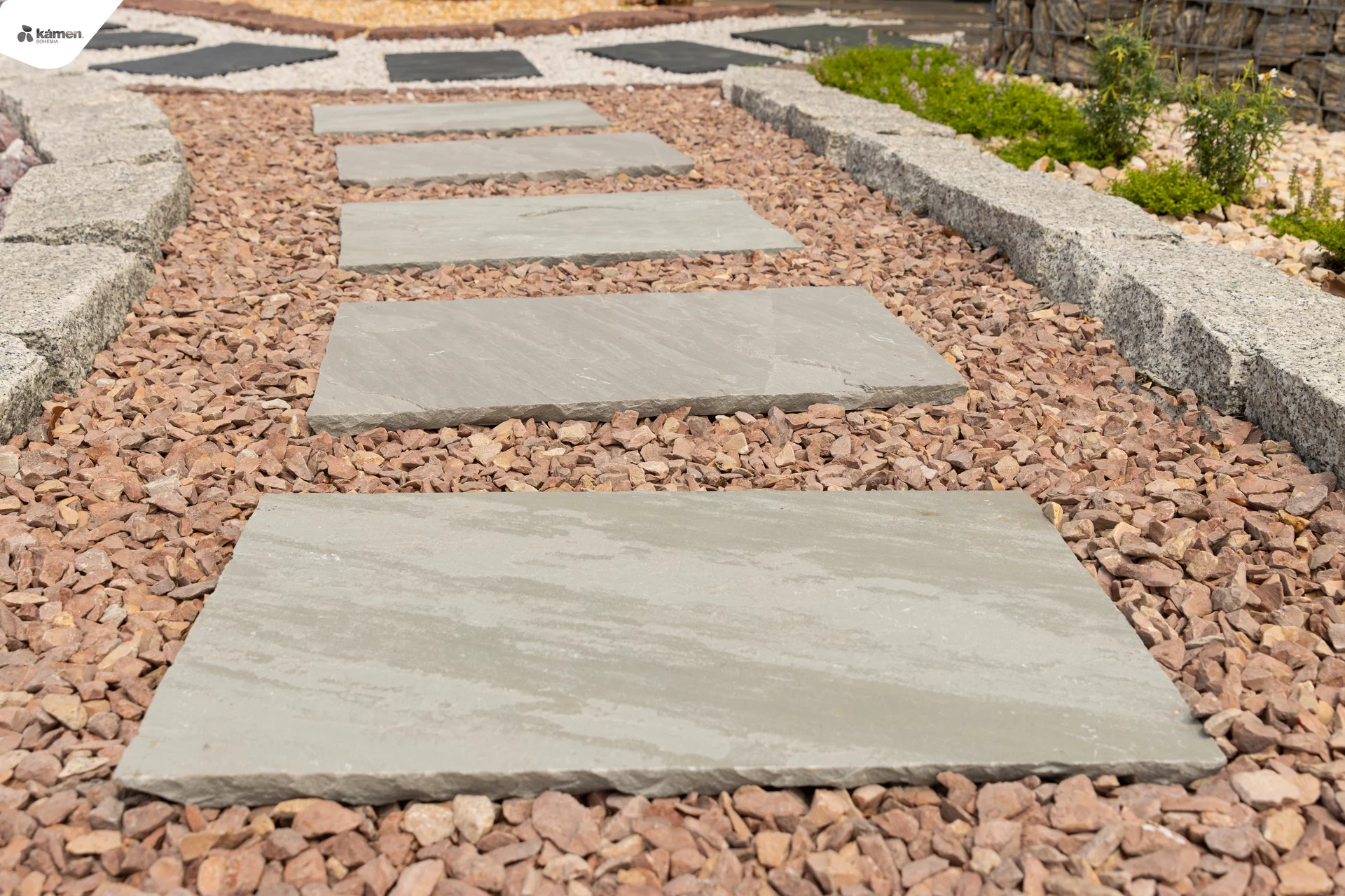 Nášlapné kameny z pískovce se náramně vyjímají v kontrastní zeleni trávníku či vysypaného štěrku. Zahradní chodníčky a přírodní cestičky na zahrádce v šedých odstínech propůjčí každému prostoru jedinečnost a svéráznou originálnost. Svou barevnou unikátností a kontrastem zářivé zeleně trávníku rozbijí větší, neforemné plochy na sofistikované zákoutí plné relaxu. Vyniknou v japonských zahradách s čistým designem, ale ten správný „look" dodají i moderním zahradám či romantickým předzahrádkám. Manipulace a realizace chodníků v zahradě s pískovcem mona je nesmírně jednoduchá. Stačí položit nášlapné kameny na předem vybrané místo a je to. Pískovec je také lze položit na předem vysypaný štěrk.