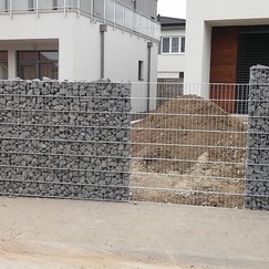 Realizace gabionového plotu naší společností. Výplň plotu z valounu NE95 Nero Ebano