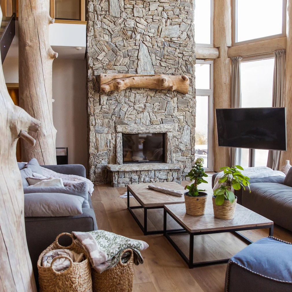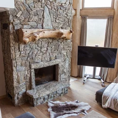 Obložení krbu v interiéru moderní chaty - realizace naší společností