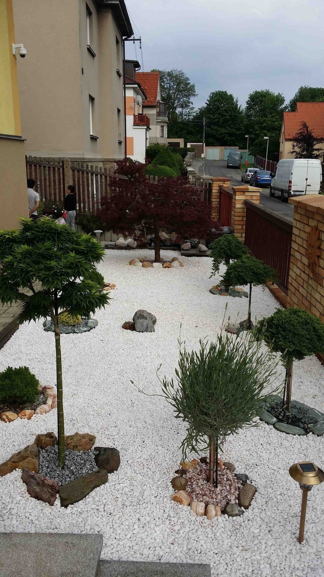 Zahradní realizace z několika druhů přírodního kamene - nášlapní a dekorační kameny. 06/2016