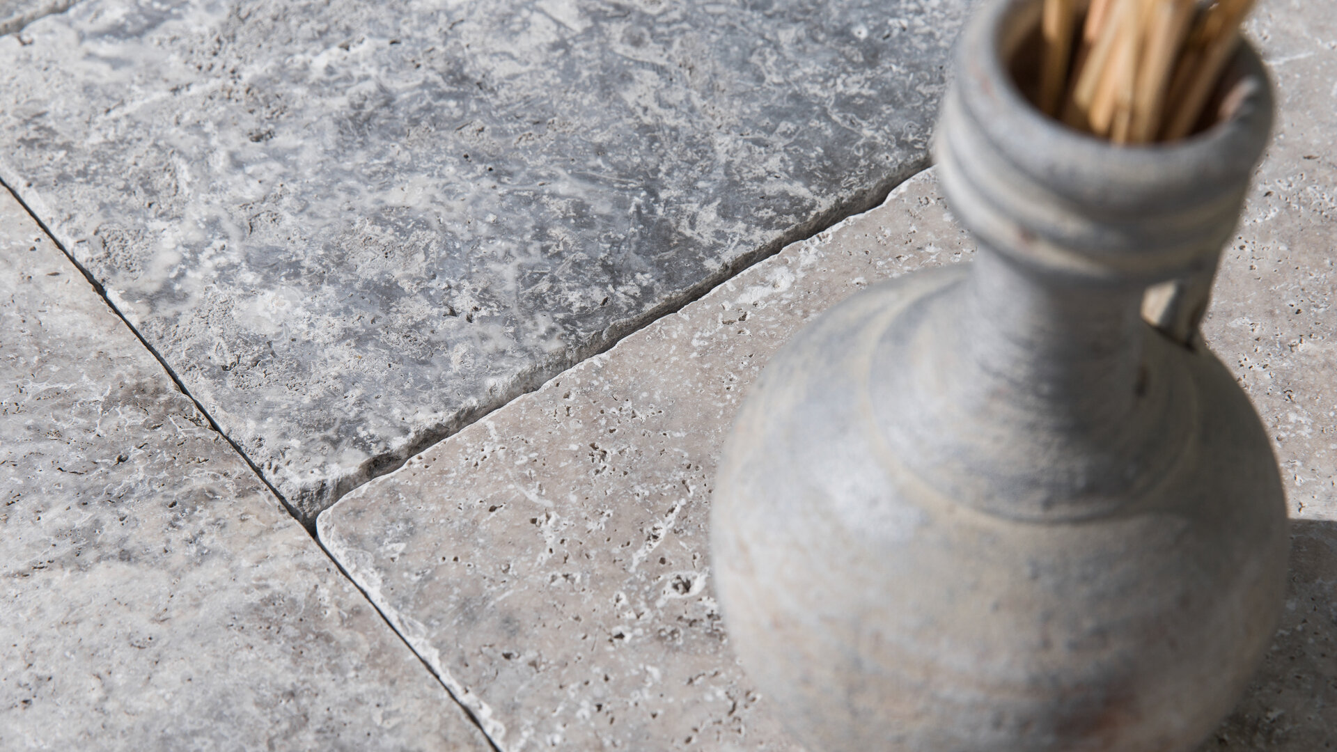 Formátovaný travertin s antikovaným povrchem ve tvaru mozaiky krásně vynikne na terase, u bazénu nebo v letní kuchyňce. S modro-šedou barvou má mnoho využití například jako obrubník a dlažba chodníku popřípadě obklad krbu, soklu, fasádní obklad a jiné. Jeho antikovaná struktura propůjčí každé místnosti rustikální styl, kde vyniknou barevné trvalky nebo zelené sukulenty či robustní kaktusy. Údržba přírodního kamene je finančně i fyzicky nenáročná. Vybrat si můžete ze dvou tlouštěk: 1,2 cm - vhodnější na obklad a 3 cm - vhodnější na dlažbu.