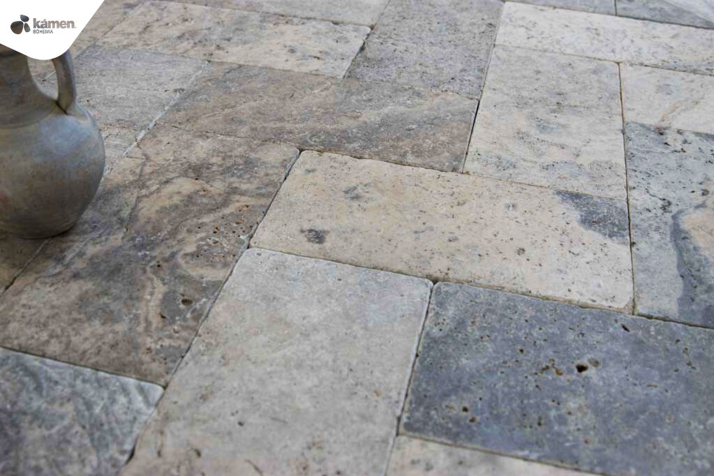Formátovaný travertin s antikovaným povrchem krásně vynikne jako dlažba na terase, u bazénu či v letní kuchyňce. Díky modro-šedé barvě je často používán i jako obklad krbu, soklu nebo fasády. Jeho antikovaná struktura propůjčí každé místnosti rustikální styl kde vyniknou barevné trvalky nebo zelené sukulenty. Údržba takového přírodního obkladu či dlažby je finančně i fyzicky nenáročná. Vybrat si můžete ze dvou tlouštěk: 1,2 cm - vhodnější na obklad a 3 cm - vhodnější na dlažbu.