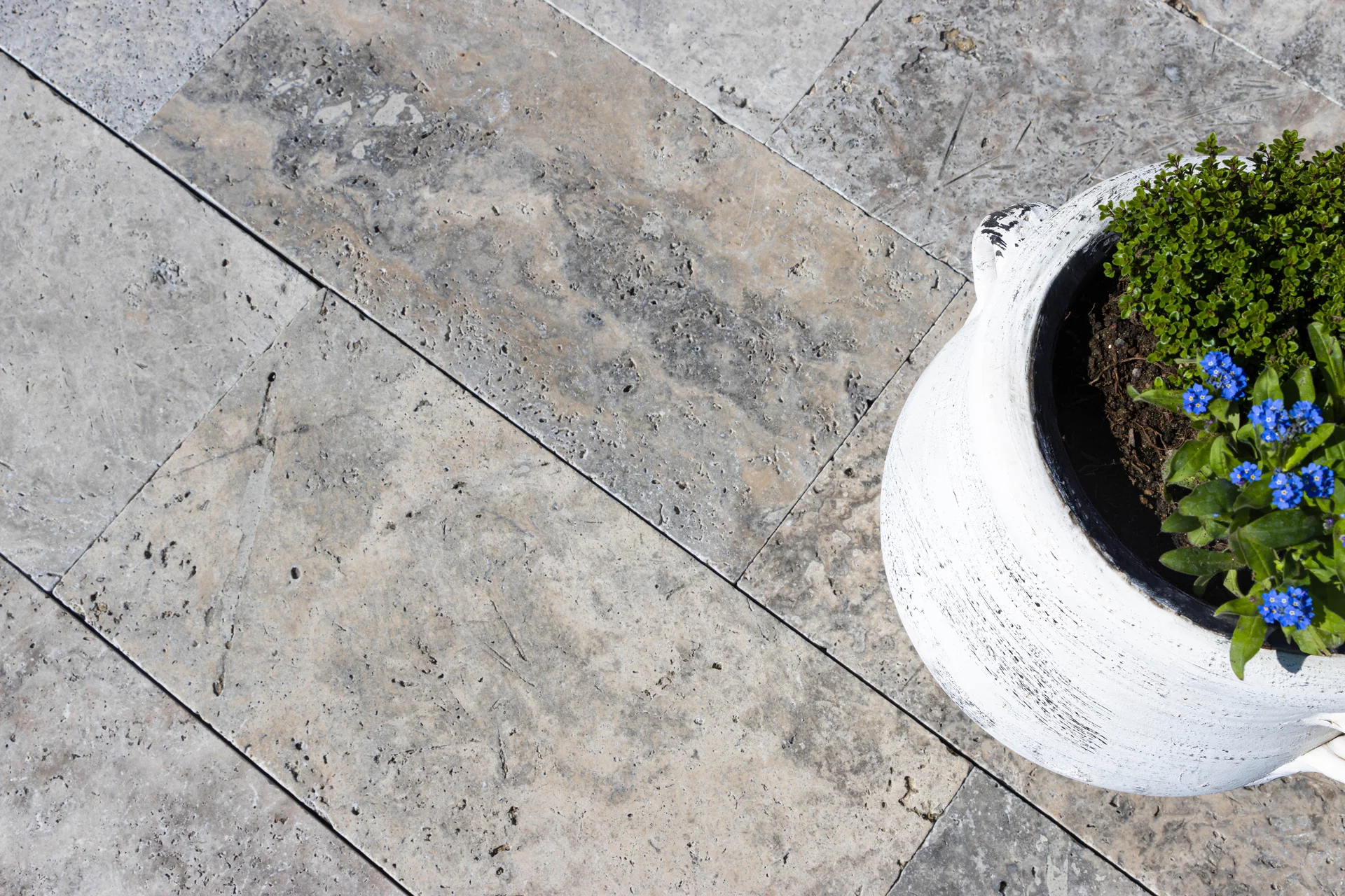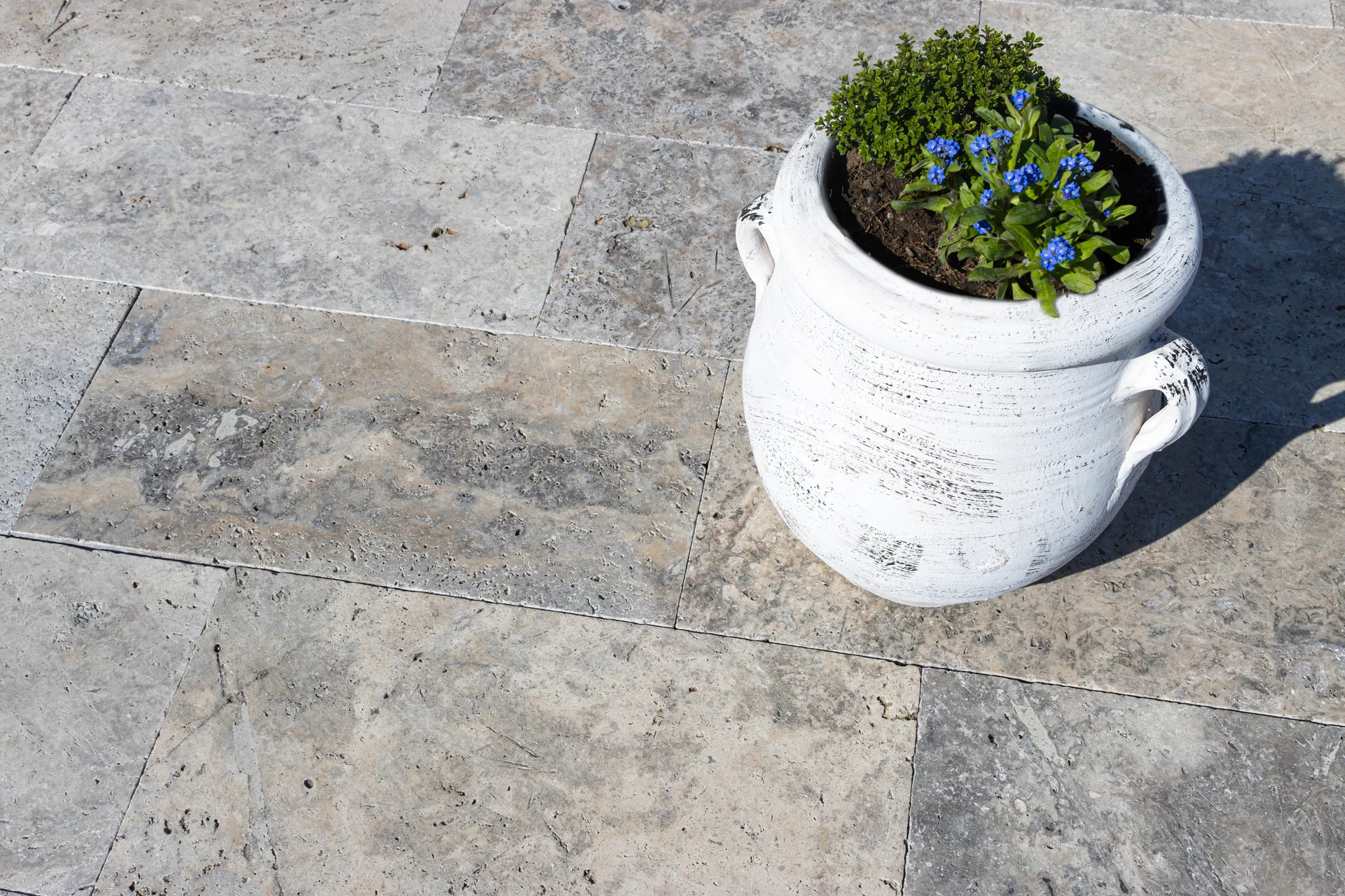 Formátovaný travertin s antikovaným povrchem krásně vynikne jako dlažba na terase, u bazénu či v letní kuchyňce. Díky modro-šedé barvě je často používán i jako obklad krbu, soklu nebo fasády. Jeho antikovaná struktura propůjčí každé místnosti rustikální styl kde vyniknou barevné trvalky nebo zelené sukulenty. Údržba takového přírodního obkladu či dlažby je finančně i fyzicky nenáročná. Vybrat si můžete ze dvou tlouštěk: 1,2 cm - vhodnější na obklad a 3 cm - vhodnější na dlažbu.
