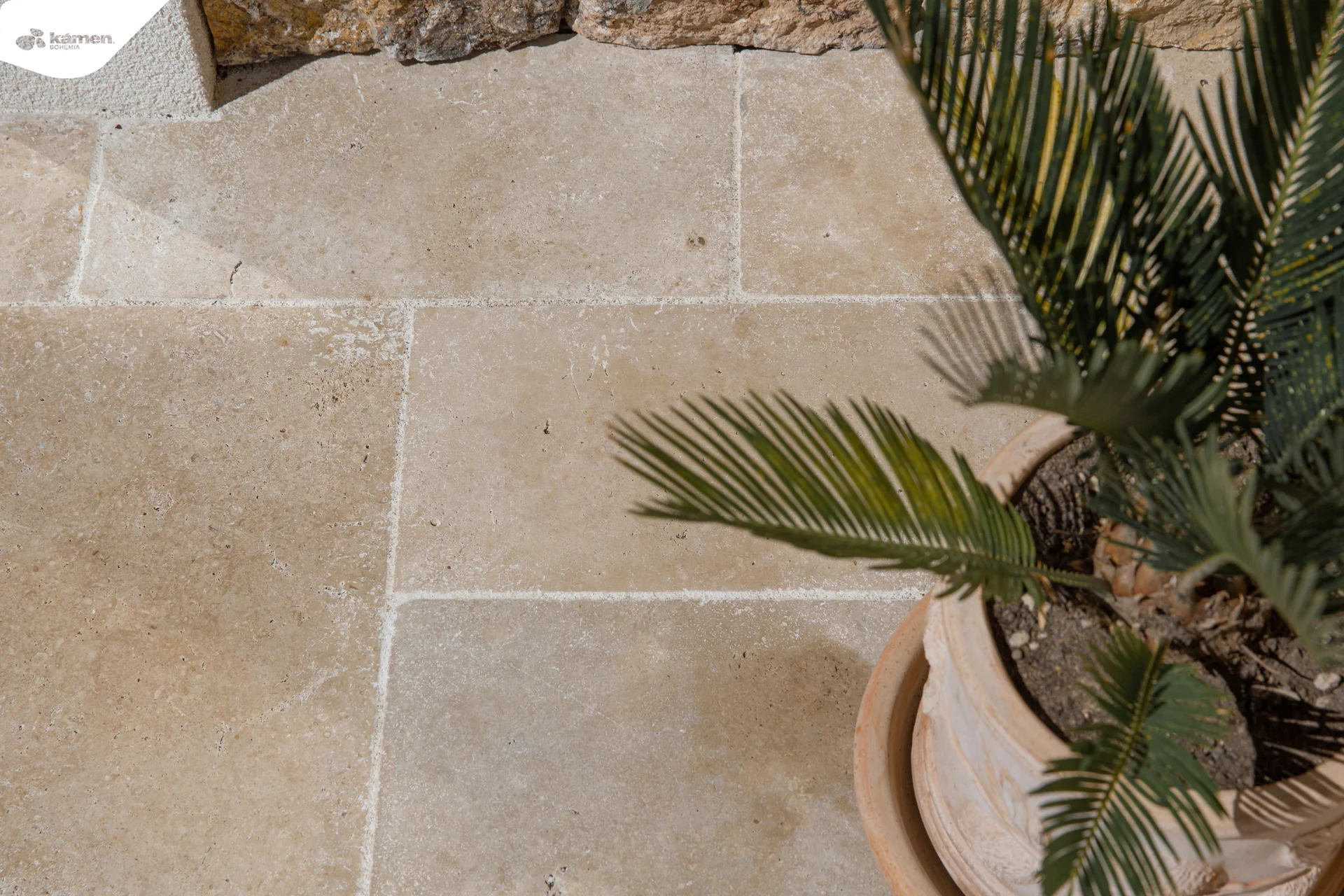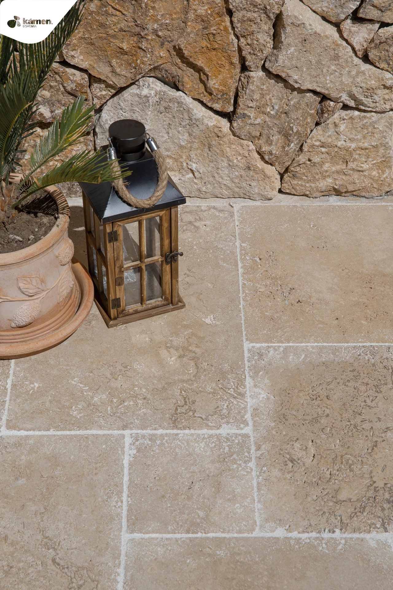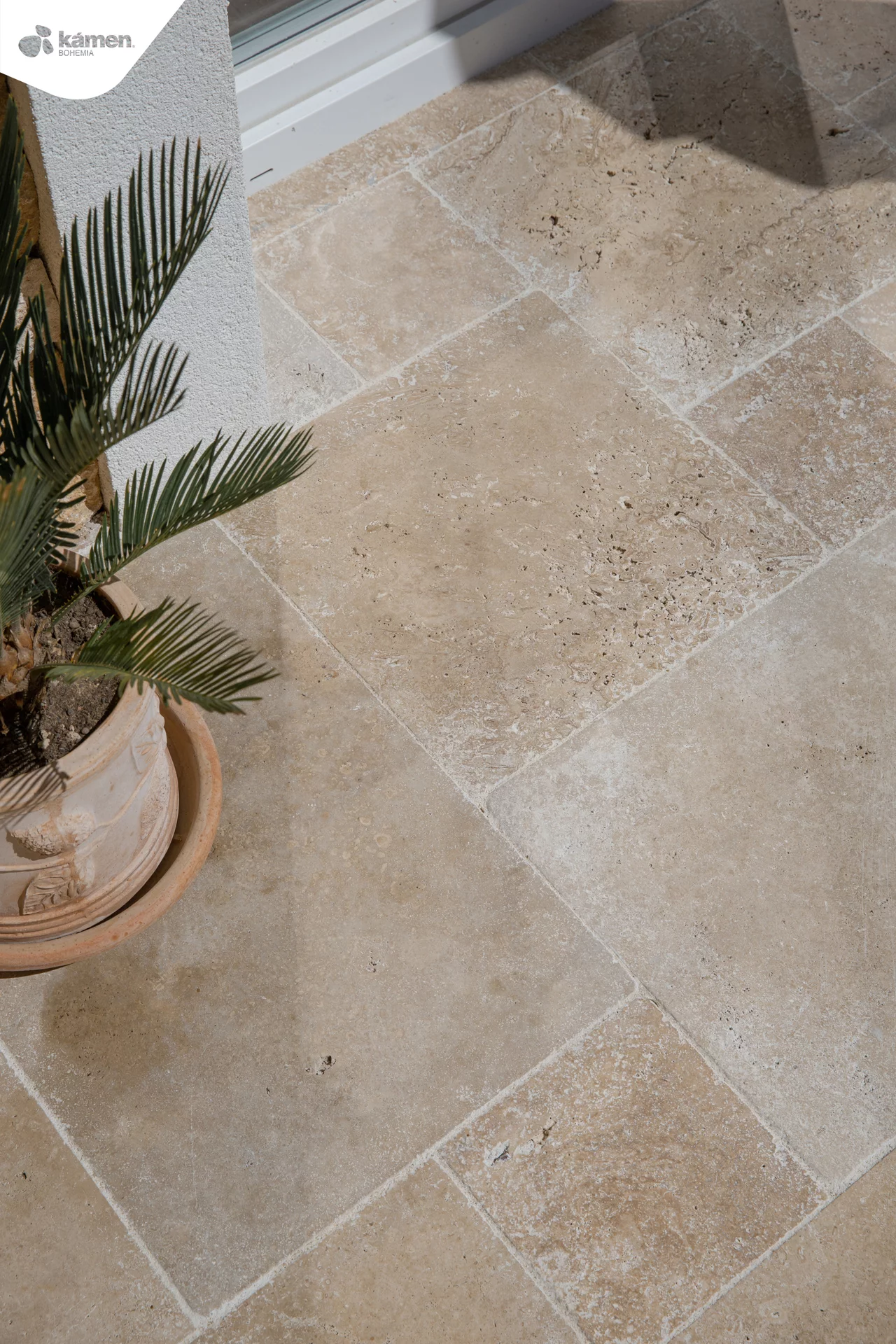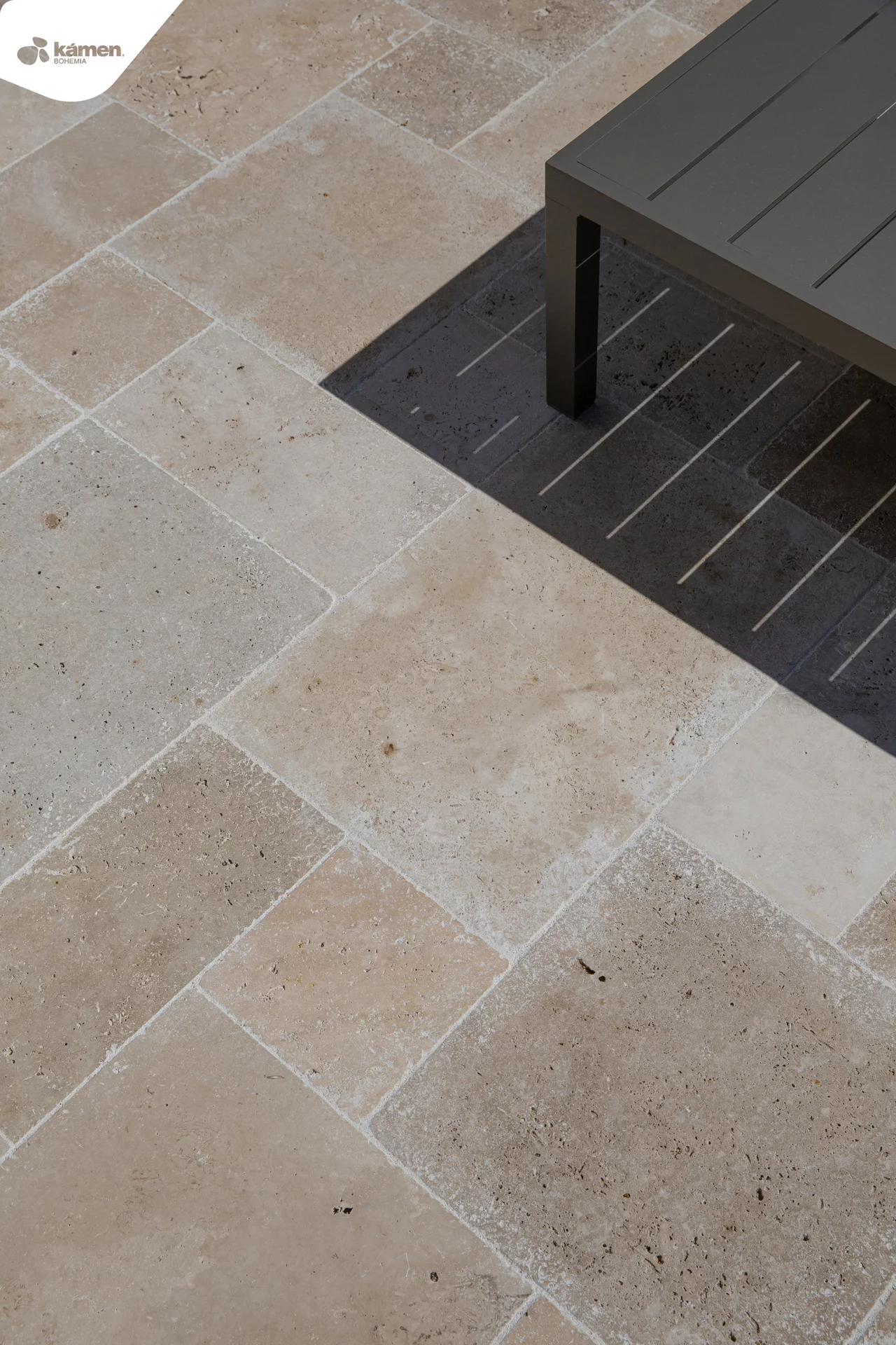 Formátovaný travertin s antikovaným povrchem ve tvaru mozaiky krásně vynikne na terase, u bazénu nebo v letní kuchyňce. S hnědou barvou má mnoho využití například jako obrubník a dlažba chodníku popřípadě obklad krbu, soklu, fasádní obklad a jiné. Jeho antikovaná struktura propůjčí každé místnosti rustikální styl, kde vyniknou barevné trvalky nebo zelené sukulenty či robustní kaktusy. Údržba přírodního kamene je finančně i fyzicky nenáročná. Vybrat si můžete ze dvou tlouštěk: 1,2 cm - vhodnější na obklad a 3 cm - vhodnější na dlažbu.