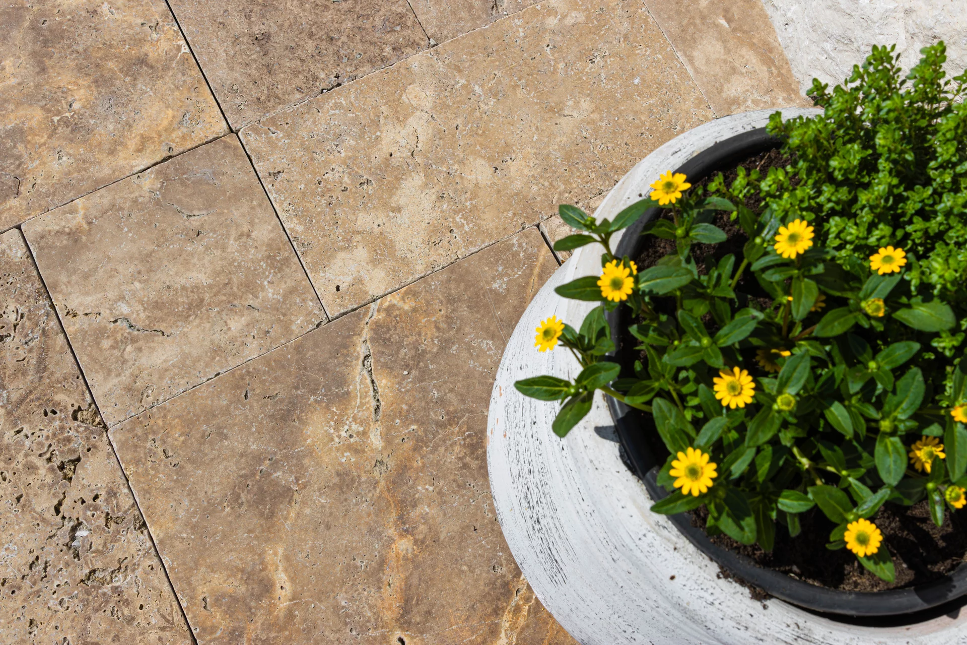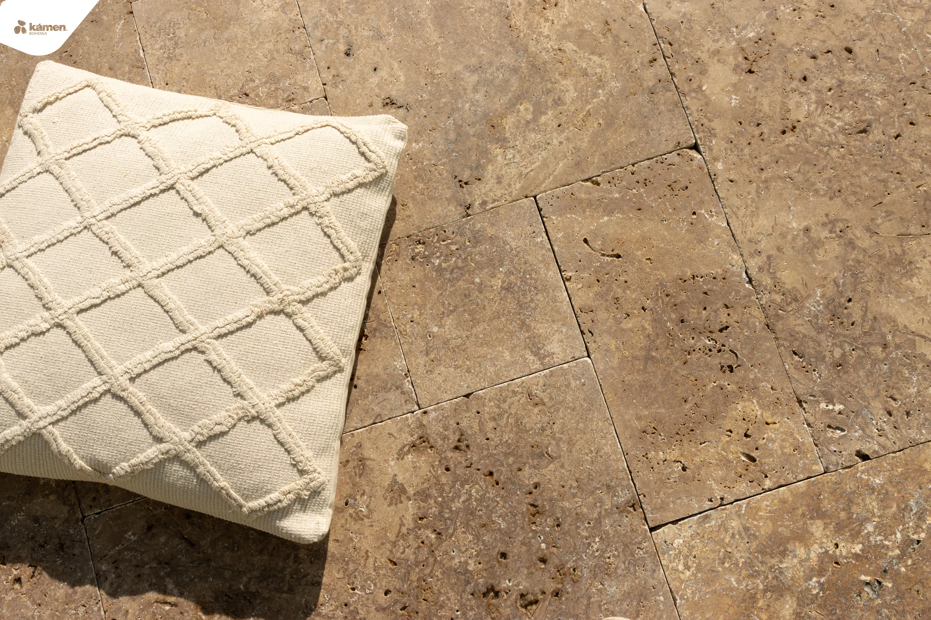 Formátovaný travertin s antikovaným povrchem ve tvaru mozaiky krásně vynikne na terase, u bazénu nebo v letní kuchyňce. S hnědou barvou má mnoho využití například jako obrubník a dlažba chodníku popřípadě obklad krbu, soklu, fasádní obklad a jiné. Jeho antikovaná struktura propůjčí každé místnosti rustikální styl, kde vyniknou barevné trvalky nebo zelené sukulenty či robustní kaktusy. Údržba přírodního kamene je finančně i fyzicky nenáročná. Vybrat si můžete ze dvou tlouštěk: 1,2 cm - vhodnější na obklad a 3 cm - vhodnější na dlažbu.