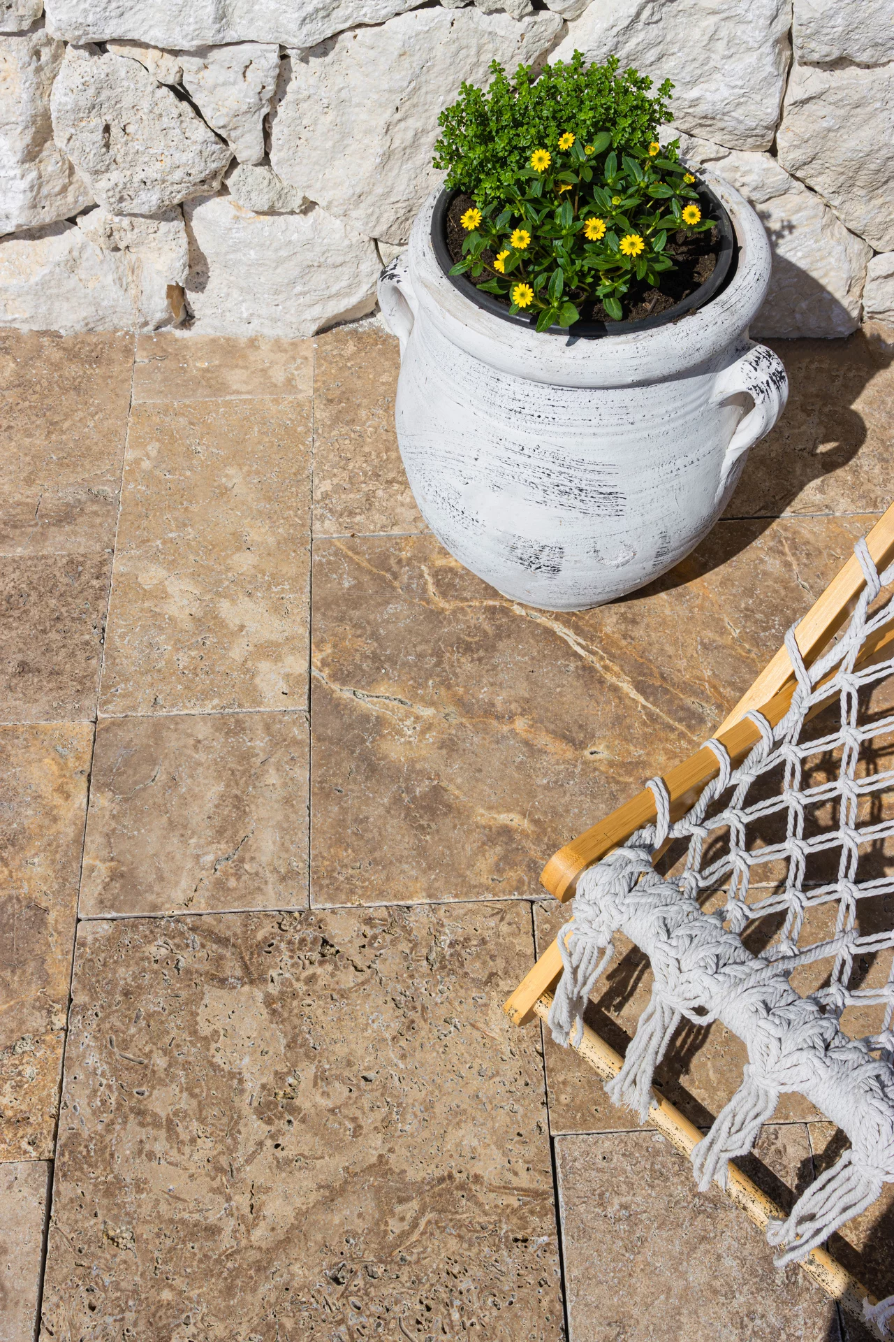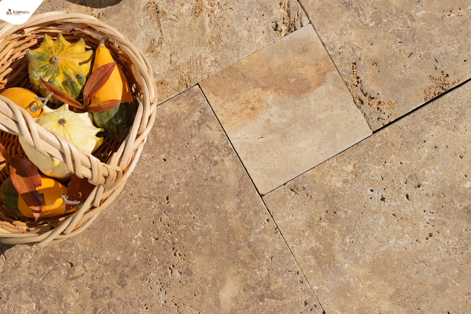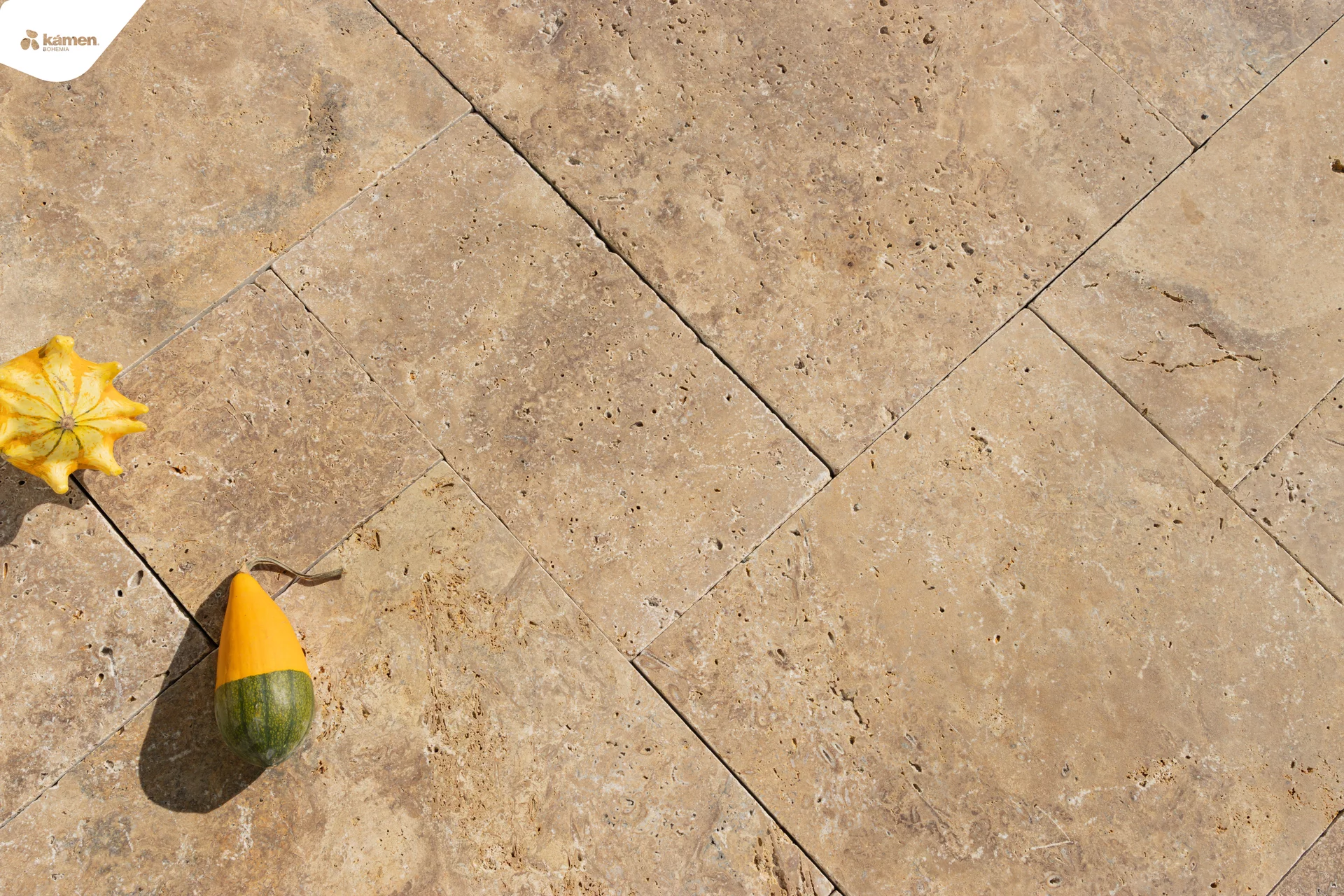 Formátovaný travertin s antikovaným povrchem ve tvaru mozaiky krásně vynikne na terase, u bazénu nebo v letní kuchyňce. S hnědou barvou má mnoho využití například jako obrubník a dlažba chodníku popřípadě obklad krbu, soklu, fasádní obklad a jiné. Jeho antikovaná struktura propůjčí každé místnosti rustikální styl, kde vyniknou barevné trvalky nebo zelené sukulenty či robustní kaktusy. Údržba přírodního kamene je finančně i fyzicky nenáročná. Vybrat si můžete ze dvou tlouštěk: 1,2 cm - vhodnější na obklad a 3 cm - vhodnější na dlažbu.