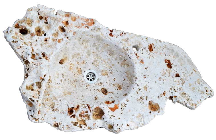 Originální umyvadlo z travertinu v přírodní světle hnědé barvě vynikne v každém prostoru. Díky svému přírodnímu, členitému povrchu krásně vynikne v každé koupelně či v letní kuchyňce. Údržba je jednoduchá, ale troška náročnější oproti jiným umyvadlům. Výborně ladí s dřevěnými a ocelovými prvky nábytku. Takové kamenné umyvadlo okouzlí každého návštěvníka a dodá jemný nádech drsné přírody.