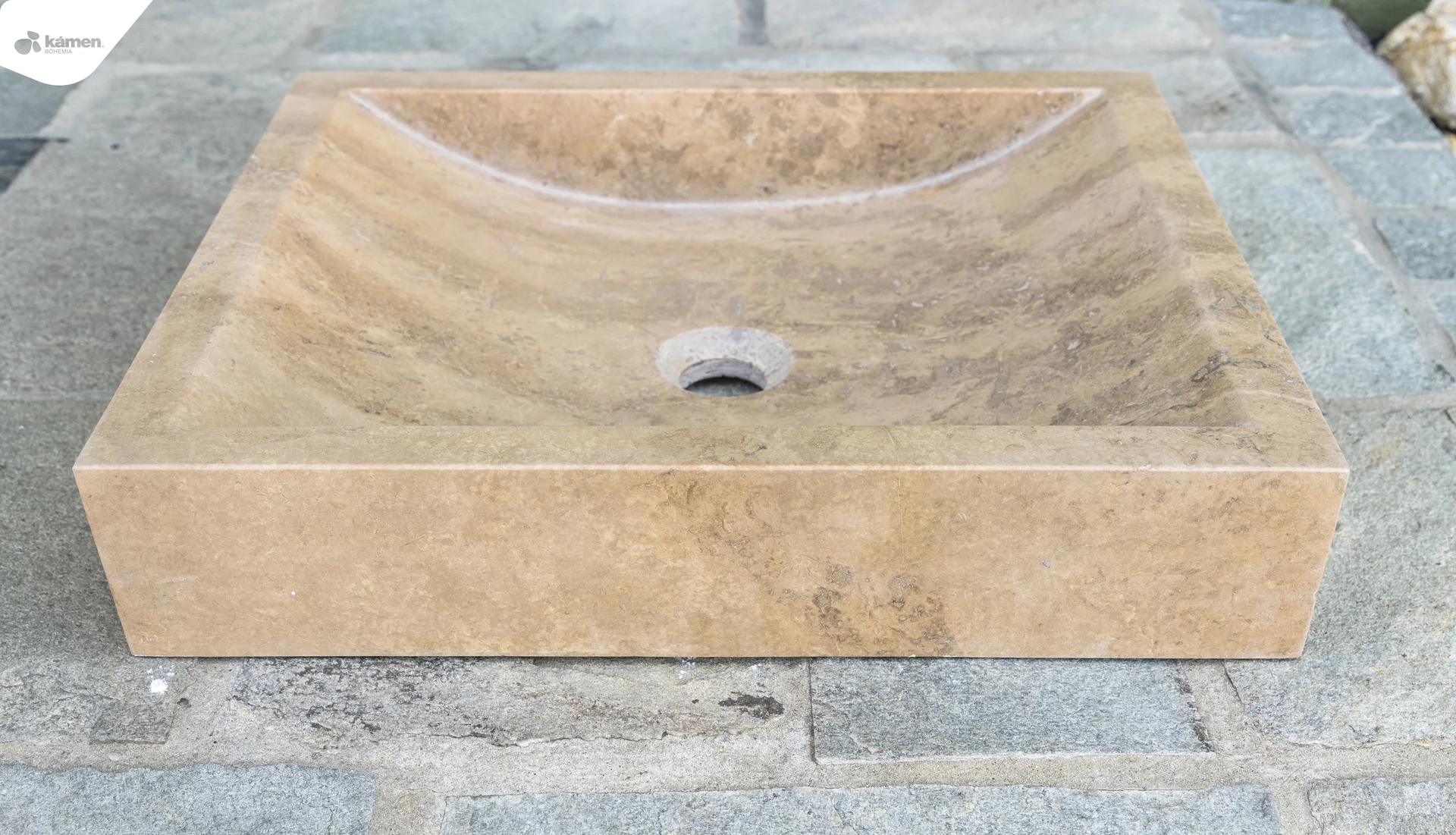 Kamenné umyvadlo hnědé barvy je jednoznačně velmi elegantní a účelný doplněk hlavně do interiéru – koupelny. Leštěný povrch na vnitřní ploše zaručuje pohodlné používání a čištění umyvadla. Ve spojení se zelenými sukulenty vynikne jeho jedinečnost a oslnivost.