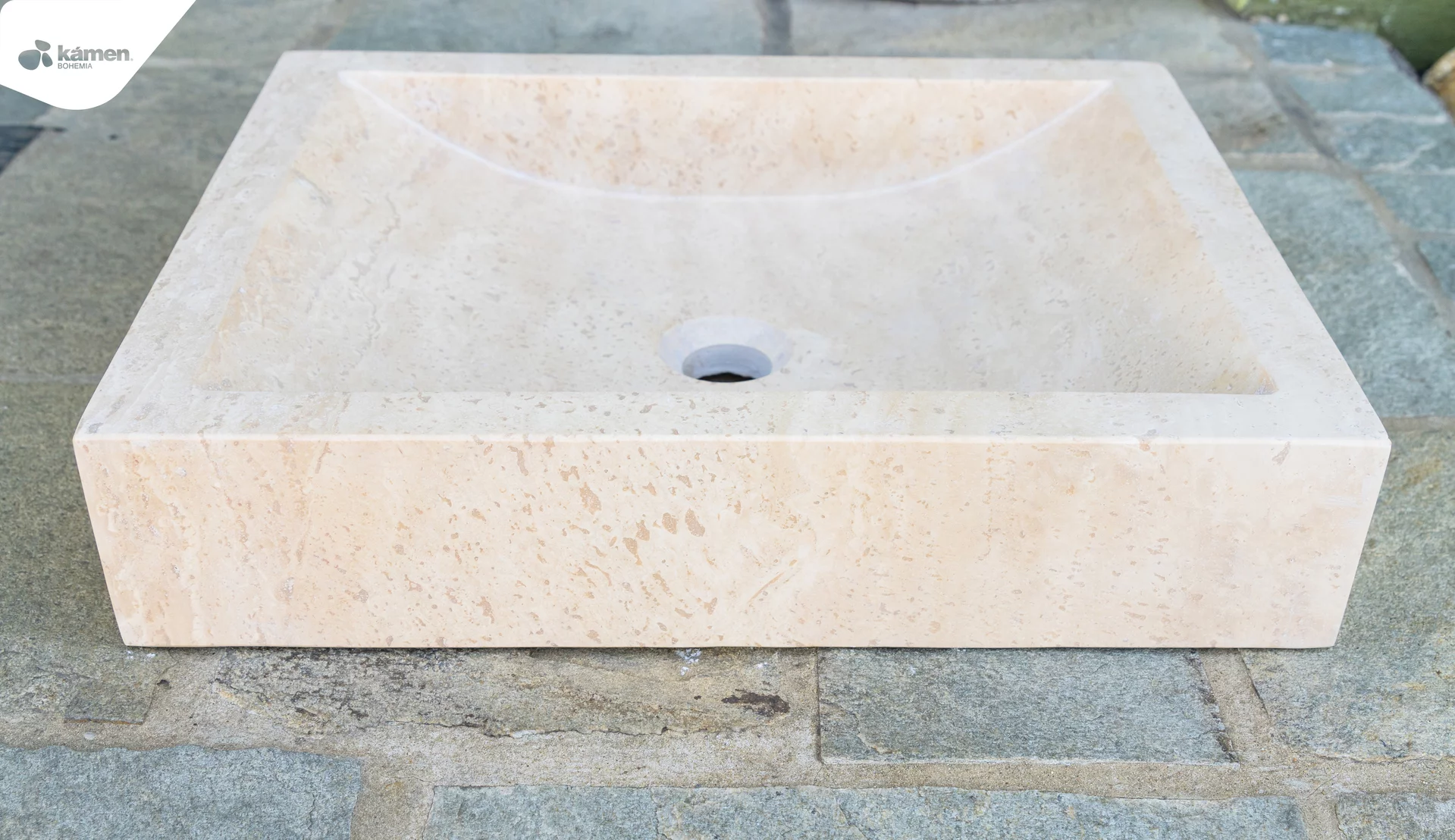 Kamenné umyvadlo pískové barvy je jednoznačně velmi elegantní a účelný doplněk hlavně do interiéru – koupelny. Leštěný povrch na vnitřní ploše zaručuje pohodlné používání a čištění umyvadla. Ve spojení se zelenými sukulenty vynikne jeho jedinečnost a oslnivost.