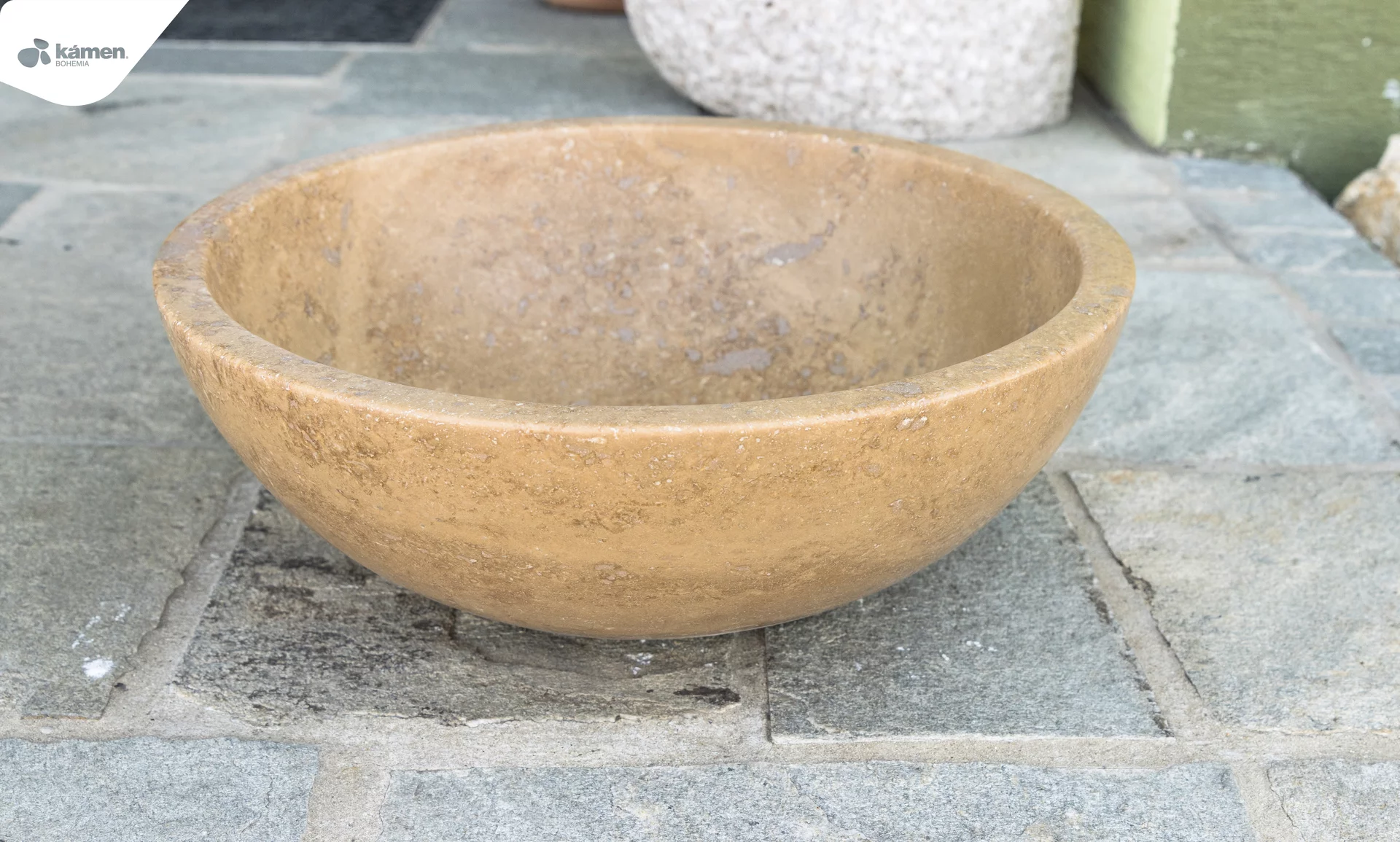 Kamenné umyvadlo hnědé barvy je jednoznačně velmi elegantní a účelný doplněk hlavně do interiéru – koupelny. Leštěný povrch na vnitřní ploše zaručuje pohodlné používání a čištění umyvadla. Ve spojení se zelenými sukulenty vynikne jeho jedinečnost a oslnivost.