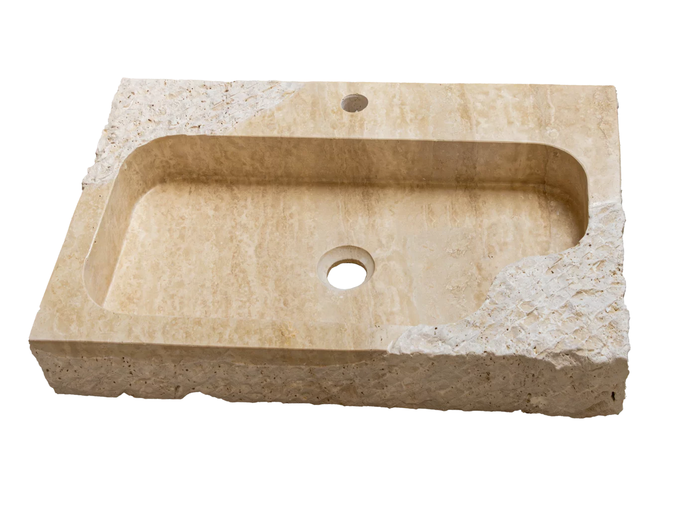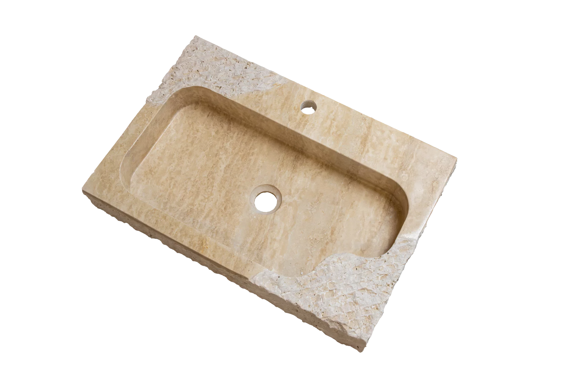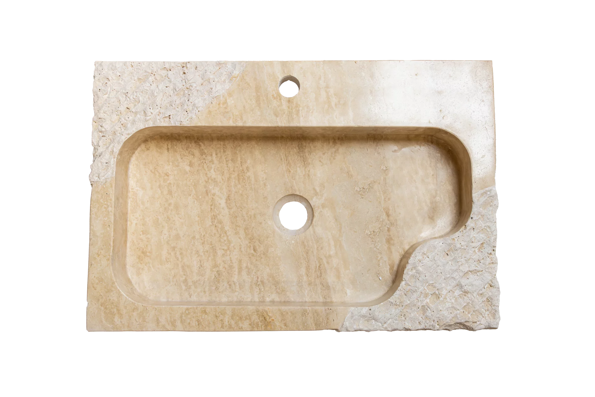 Kamenné umyvadlo pískové barvy je jednoznačně velmi elegantní a účelný doplněk hlavně do interiéru – koupelny. Ve spojení se zelenými sukulenty vynikne jeho jedinečnost a oslnivost.