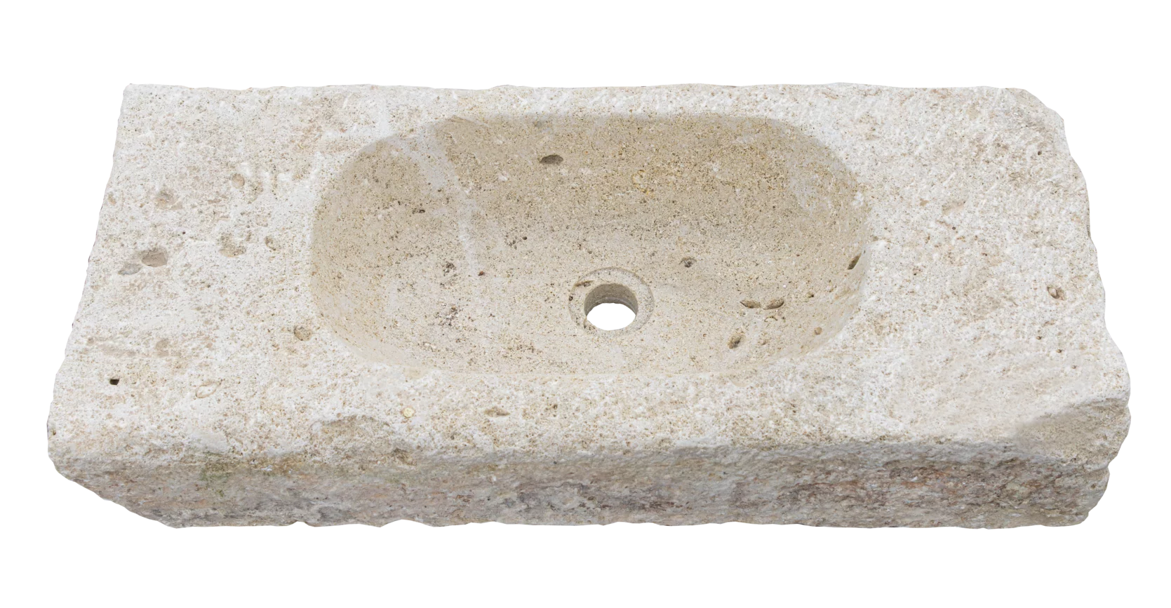 Kamenné umyvadlo světle hnědé barvy je jednoznačně velmi elegantní a účelný doplněk hlavně do interiéru – koupelny. Ve spojení se zelenými sukulenty vynikne jeho jedinečnost a oslnivost.
