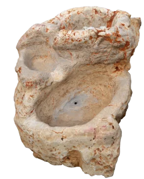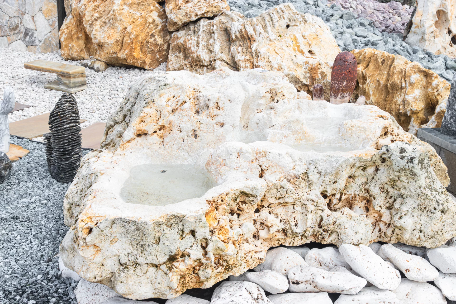 Světle hnědý travertin s přírodními tmavšími kresbami výborně zapadne do každé upravené zahrady. Ještě zajímavější je fontána z tohoto přírodního kamene. Montáž a údržba jsou nenáročné na čas a znalosti. Oblé linie této fontány, připomínající malý vodopád, se krásně vyjímají při upraveném trávníku zahrady či parku. Její jemná barva ozvláštní tmavý kout a ve spojení s barevnými květy a keři vám přinese oku lahodící příjemný zážitek.