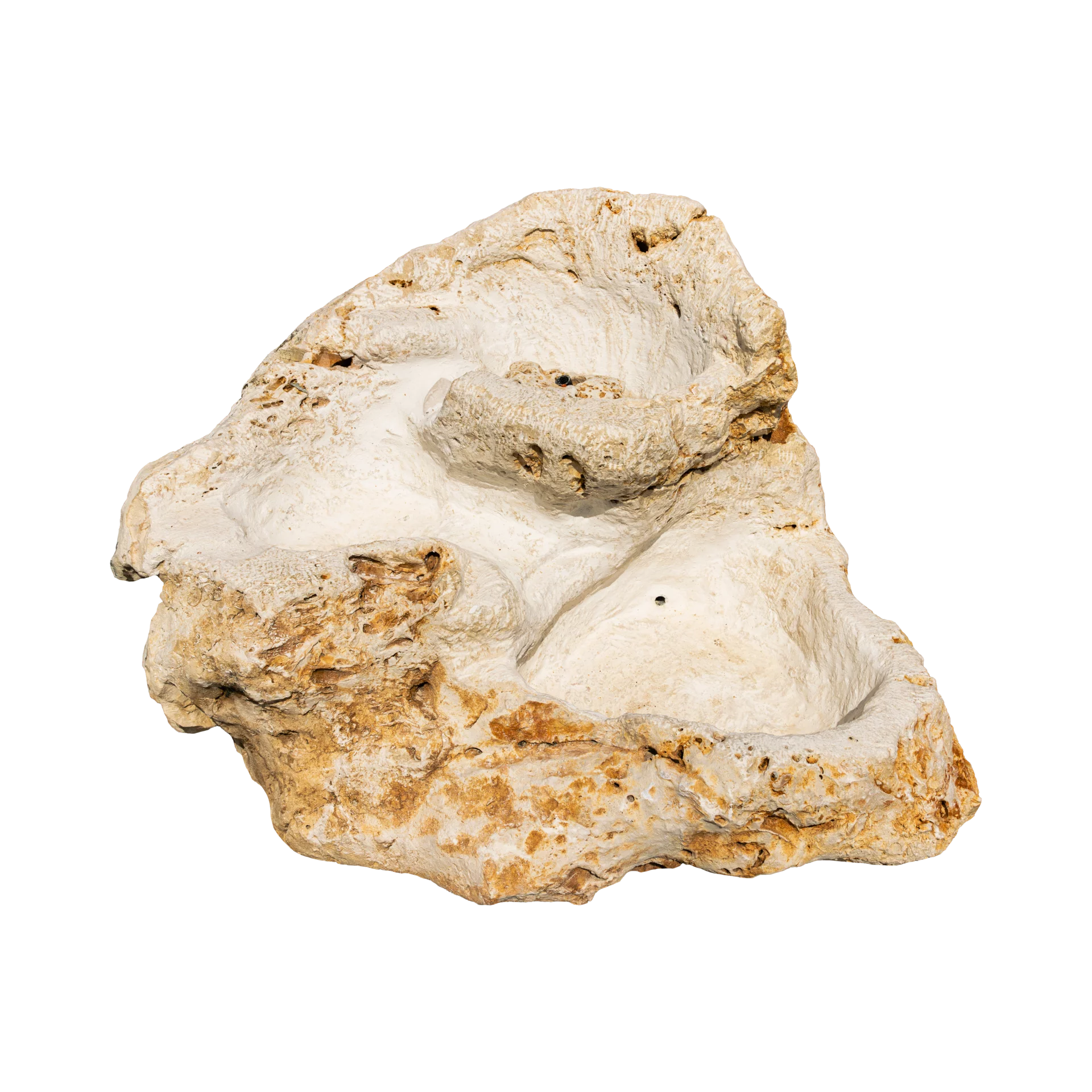 Světle hnědý travertin s přírodními tmavšími kresbami výborně zapadne do každé upravené zahrady. Ještě zajímavější je fontána z tohoto přírodního kamene. Montáž a údržba jsou nenáročné na čas a znalosti. Oblé linie této fontány, připomínající malý vodopád, se krásně vyjímají při upraveném trávníku zahrady či parku. Její jemná barva ozvláštní tmavý kout a ve spojení s barevnými květy a keři vám přinese oku lahodící příjemný zážitek.