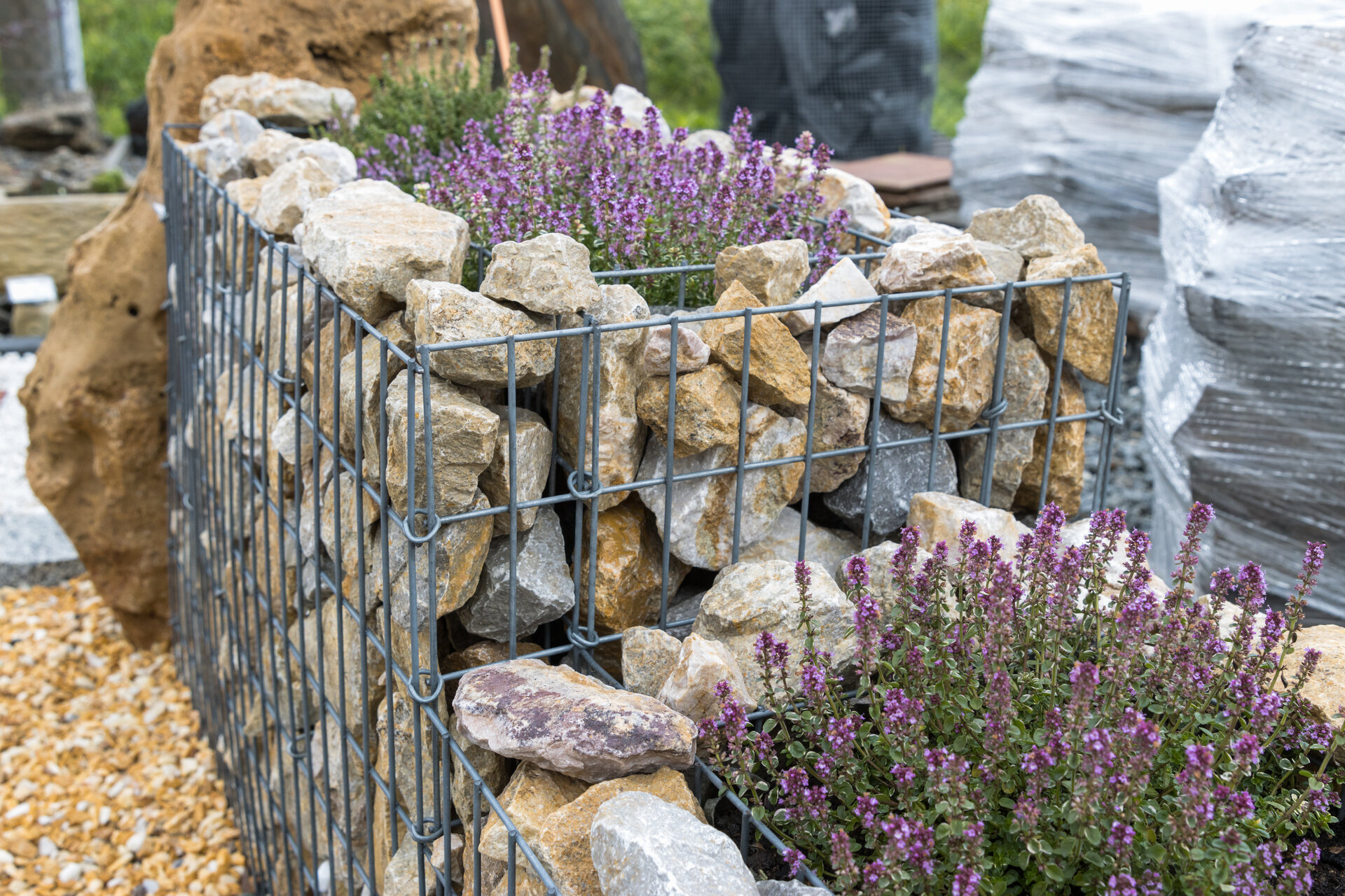 Gabionové ploty jsou pěkné na pohled a funkční zároveň. Při vhodném konstrukčním postavení tohoto plotu zabraňuje sesuvu půdy a zaručuje ochranu vašeho pozemku. Gabionové koše mohou zase posloužit jako základ skalky. Jako výplň do gabionových plotů a košů může jít téměř každý kámen o vhodné velikosti. Složitá struktura vápence propůjčí vaší zahradě jedinečný vzhled a jeho žlutošedá barva rozjasní celý areál. U vápence nádherně vyniknou barevné květy trvalek, které zaručí neobyčejný design pro vaši zahradu.